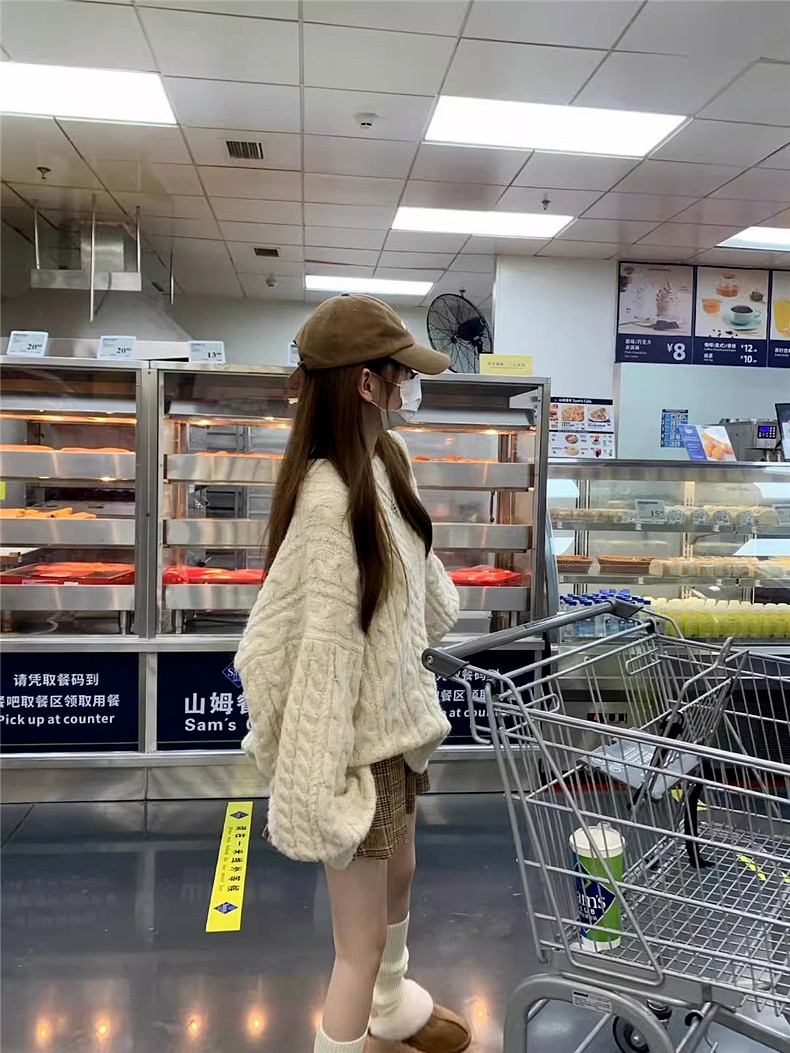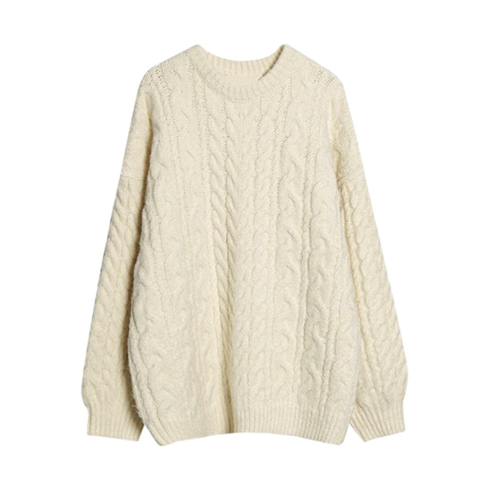 米色套頭麻花毛衣女2025初秋季新款慵懶軟糯寬松外穿圓領針織上衣