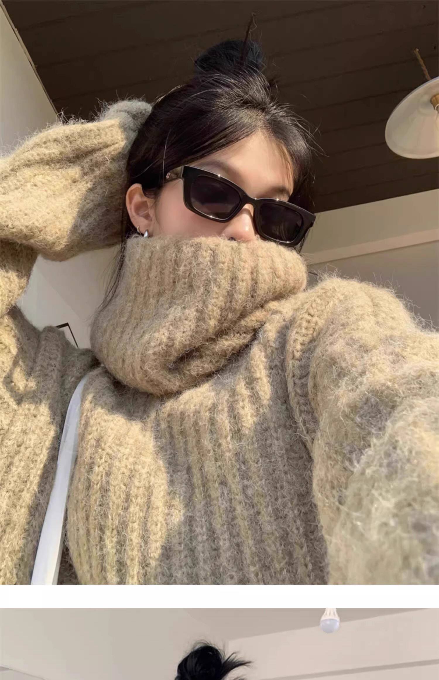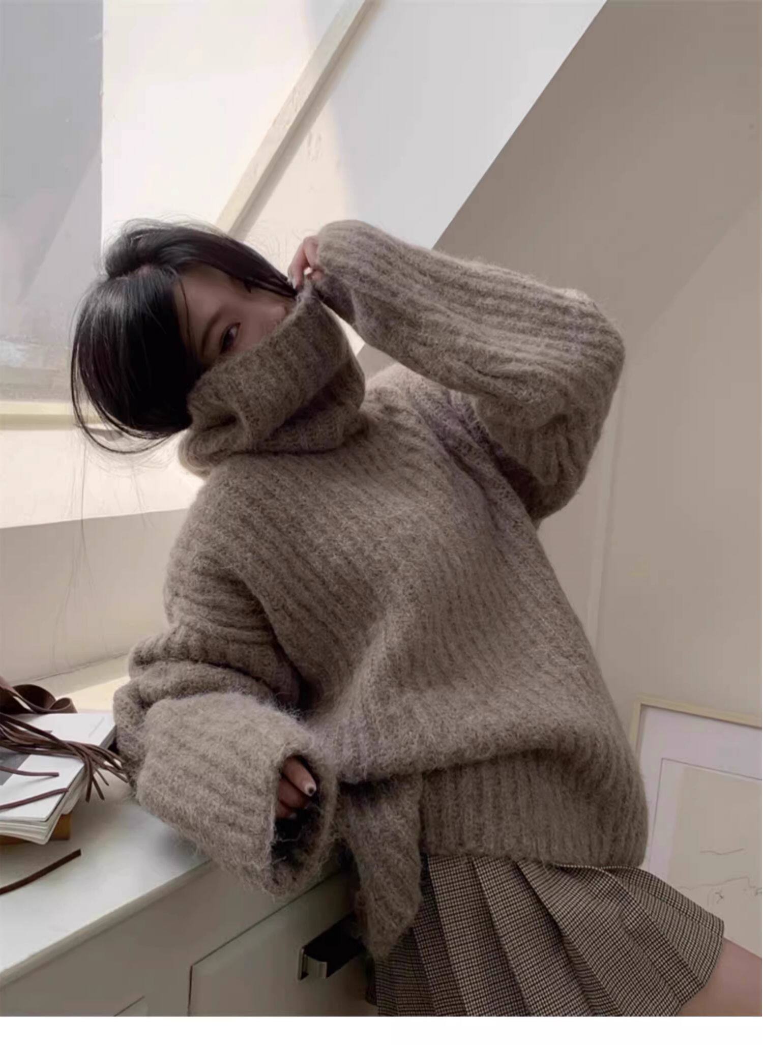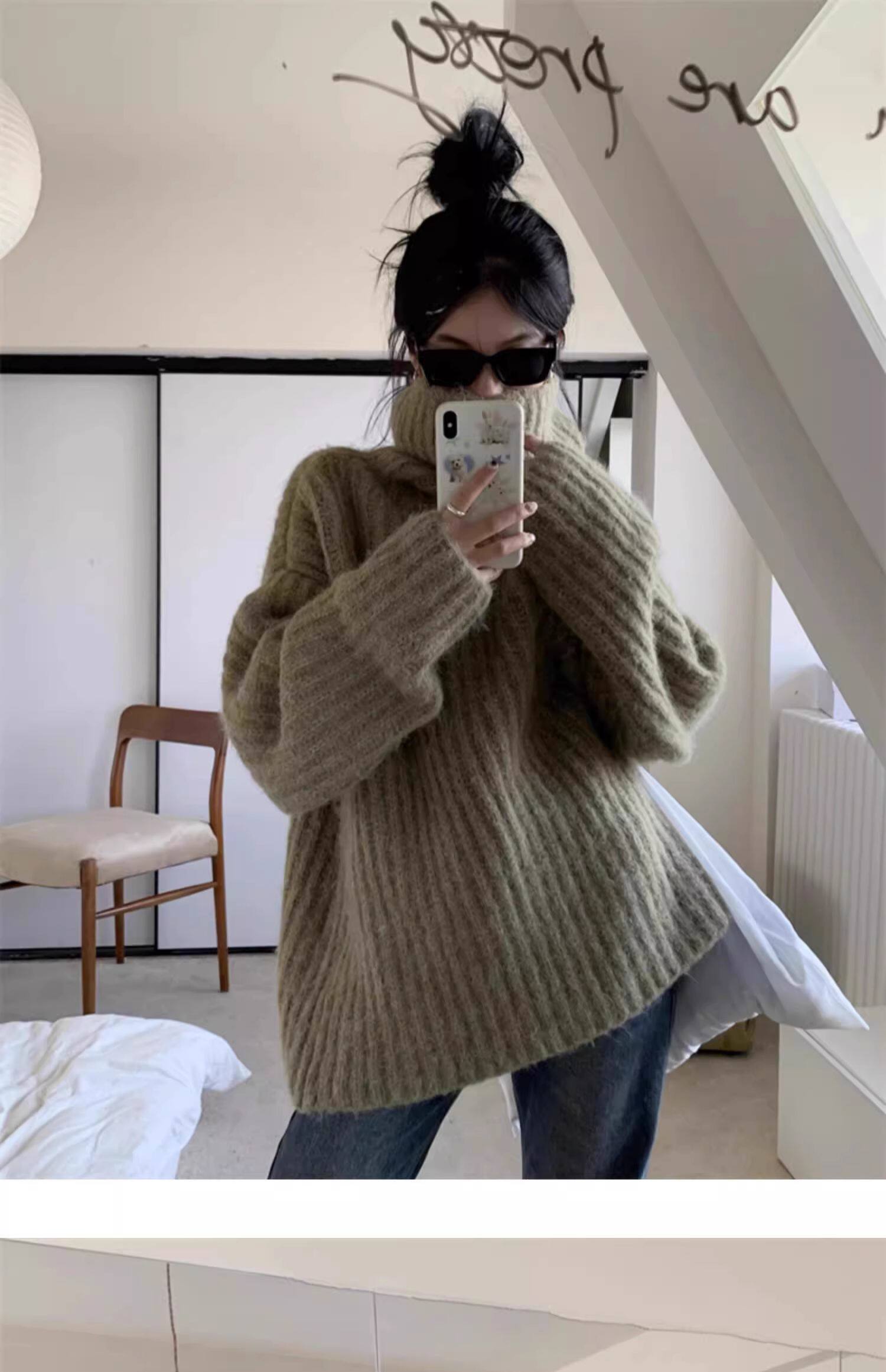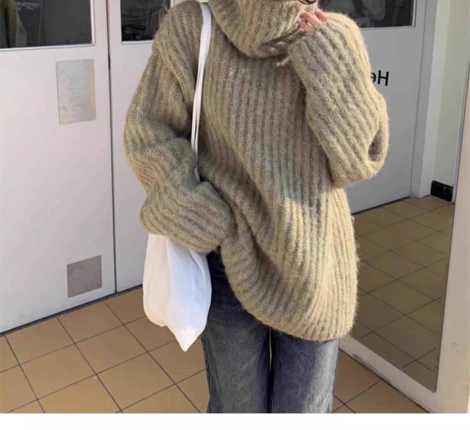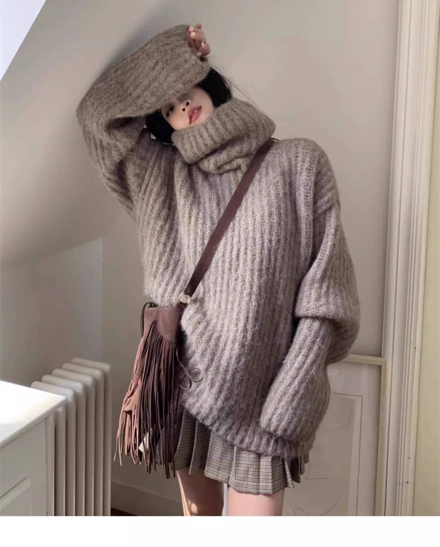 法式復古灰色高領慵懶風毛衣女秋冬季軟糯寬松內搭針織衫加厚上衣