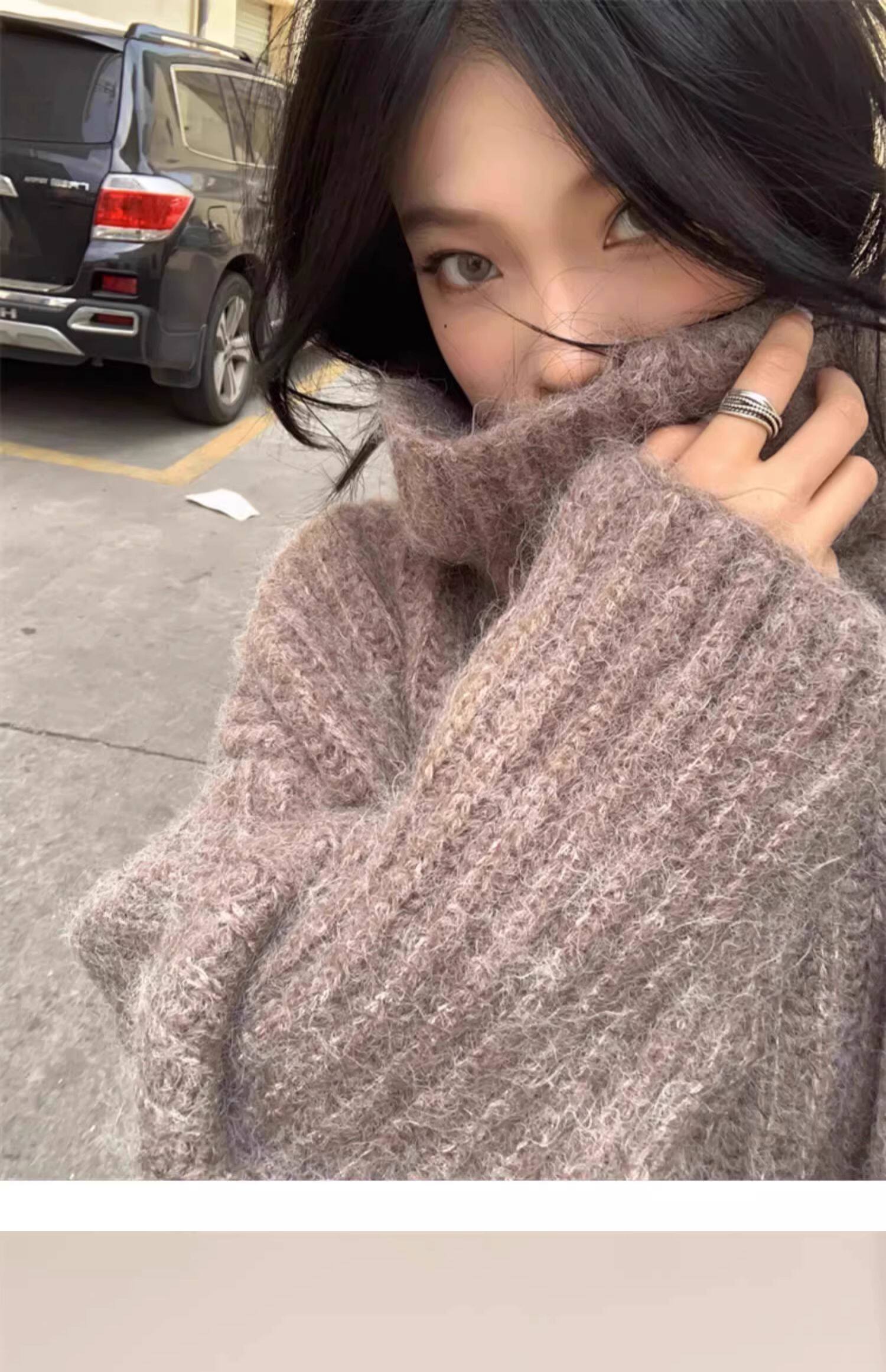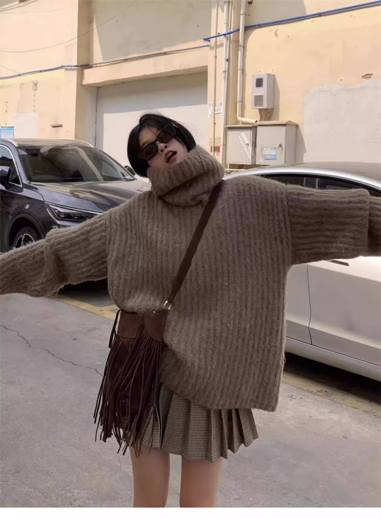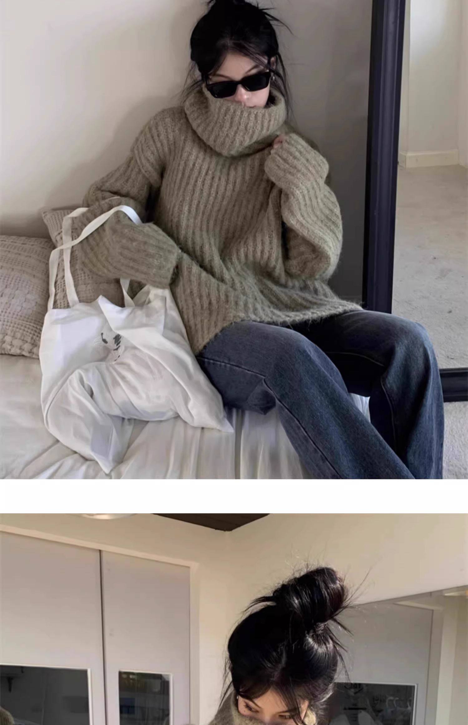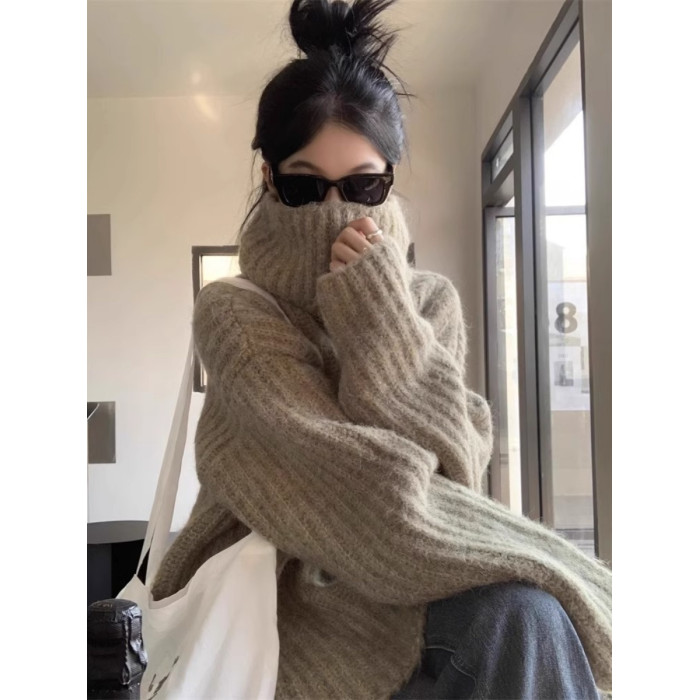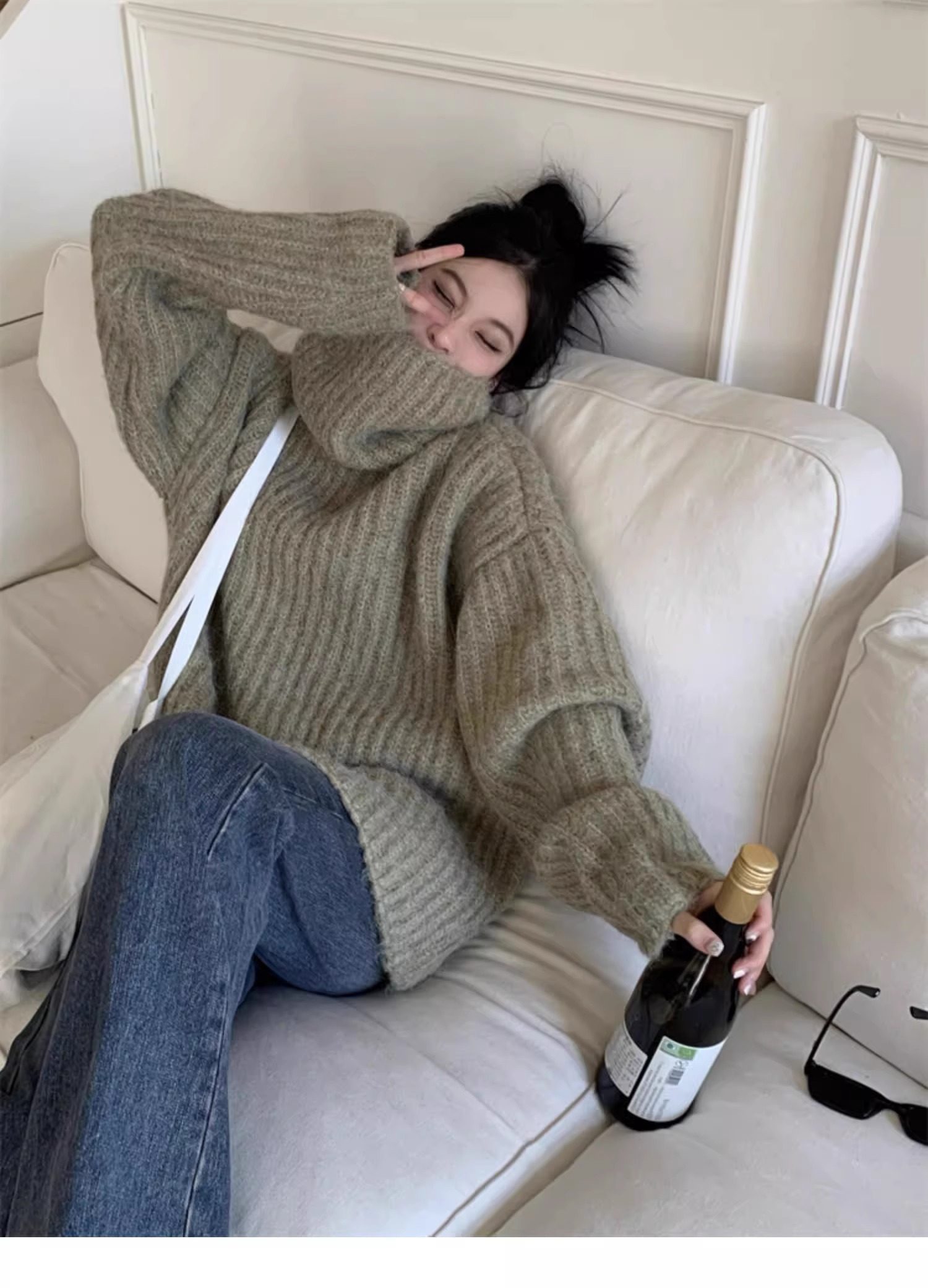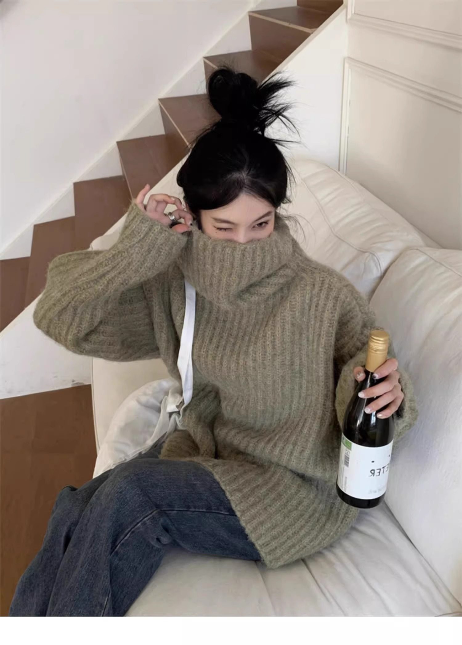 法式復古灰色高領慵懶風毛衣女秋冬季軟糯寬松內搭針織衫加厚上衣