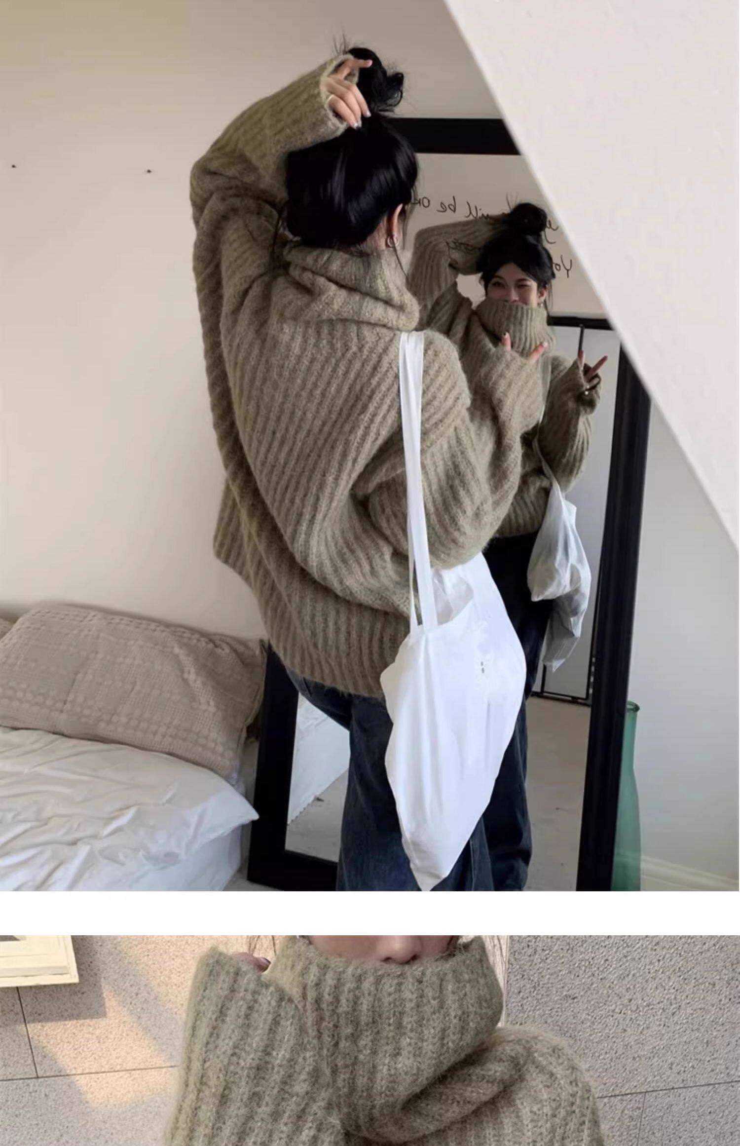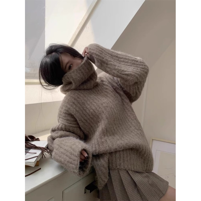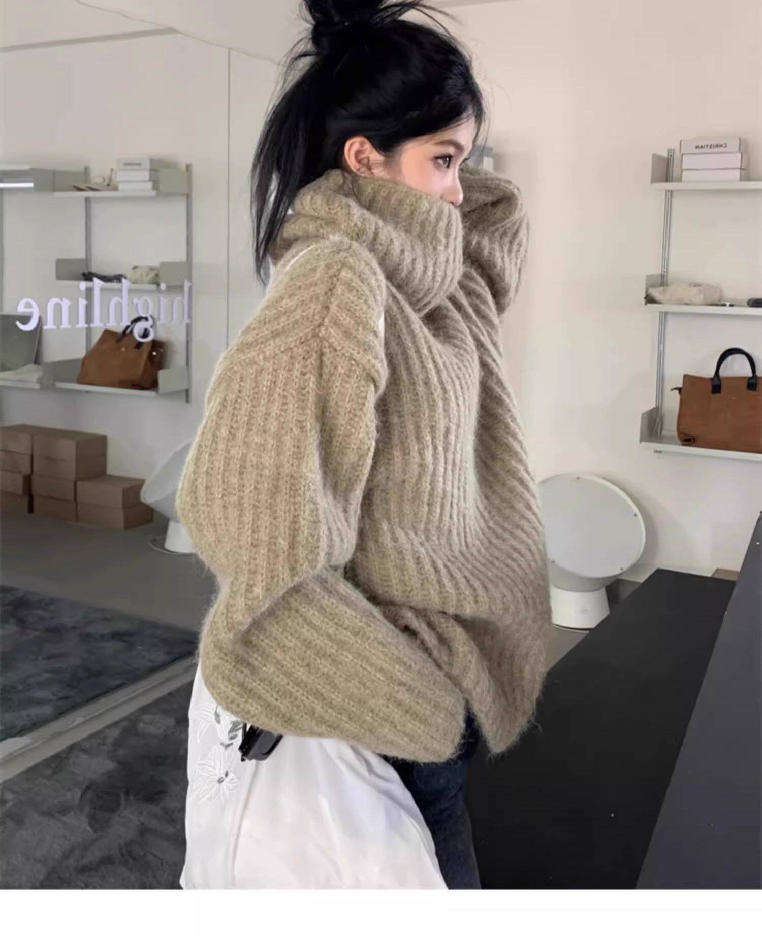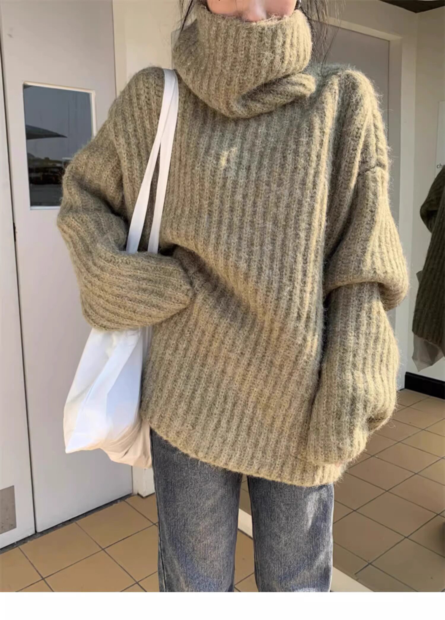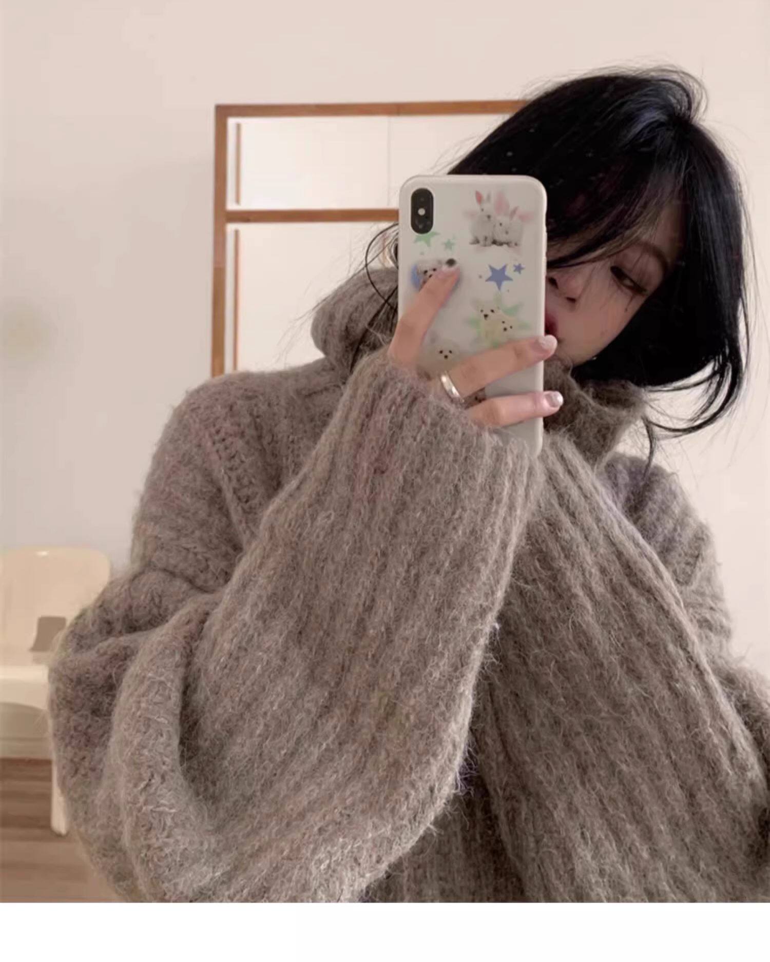 法式復古灰色高領慵懶風毛衣女秋冬季軟糯寬松內搭針織衫加厚上衣