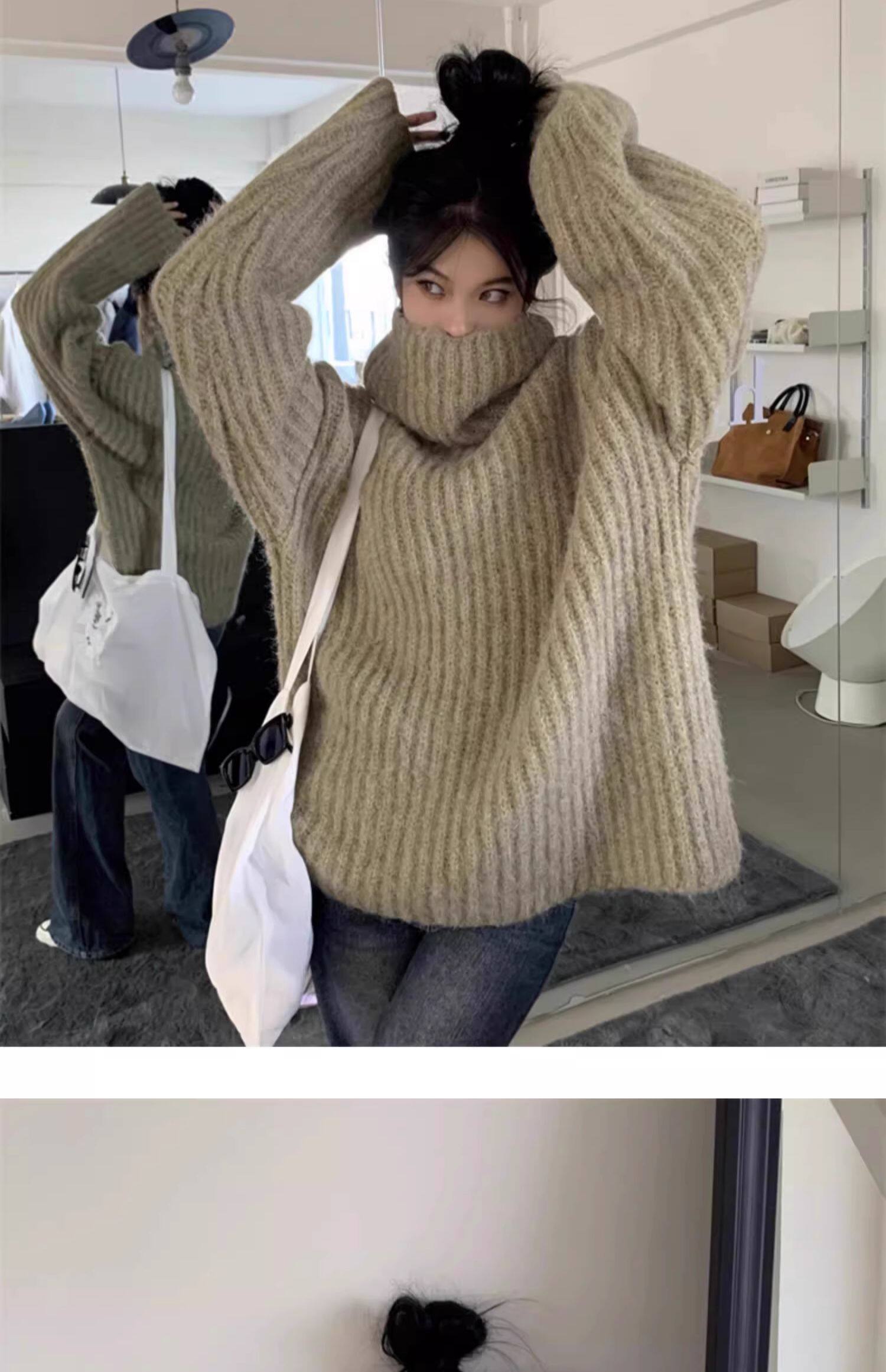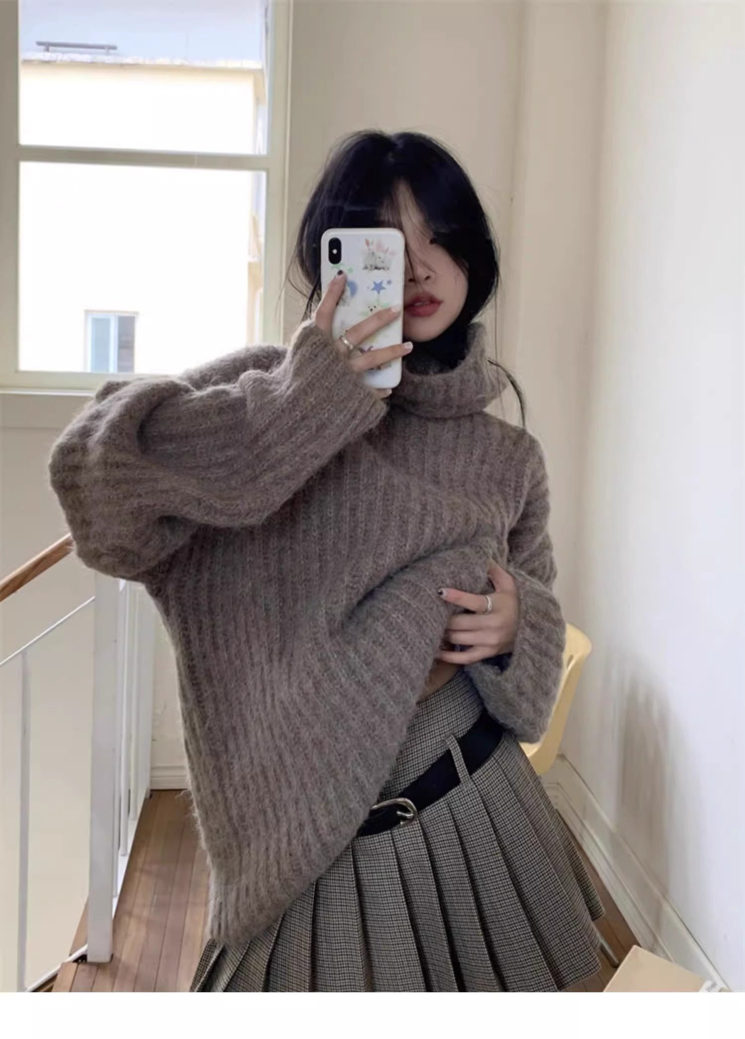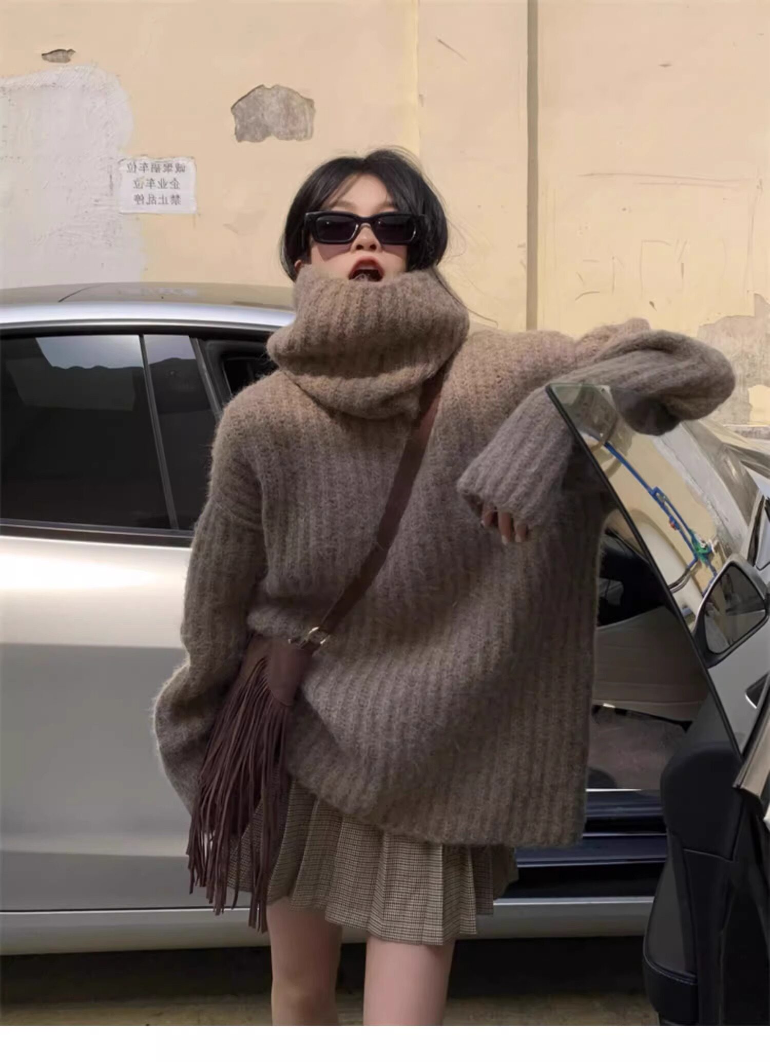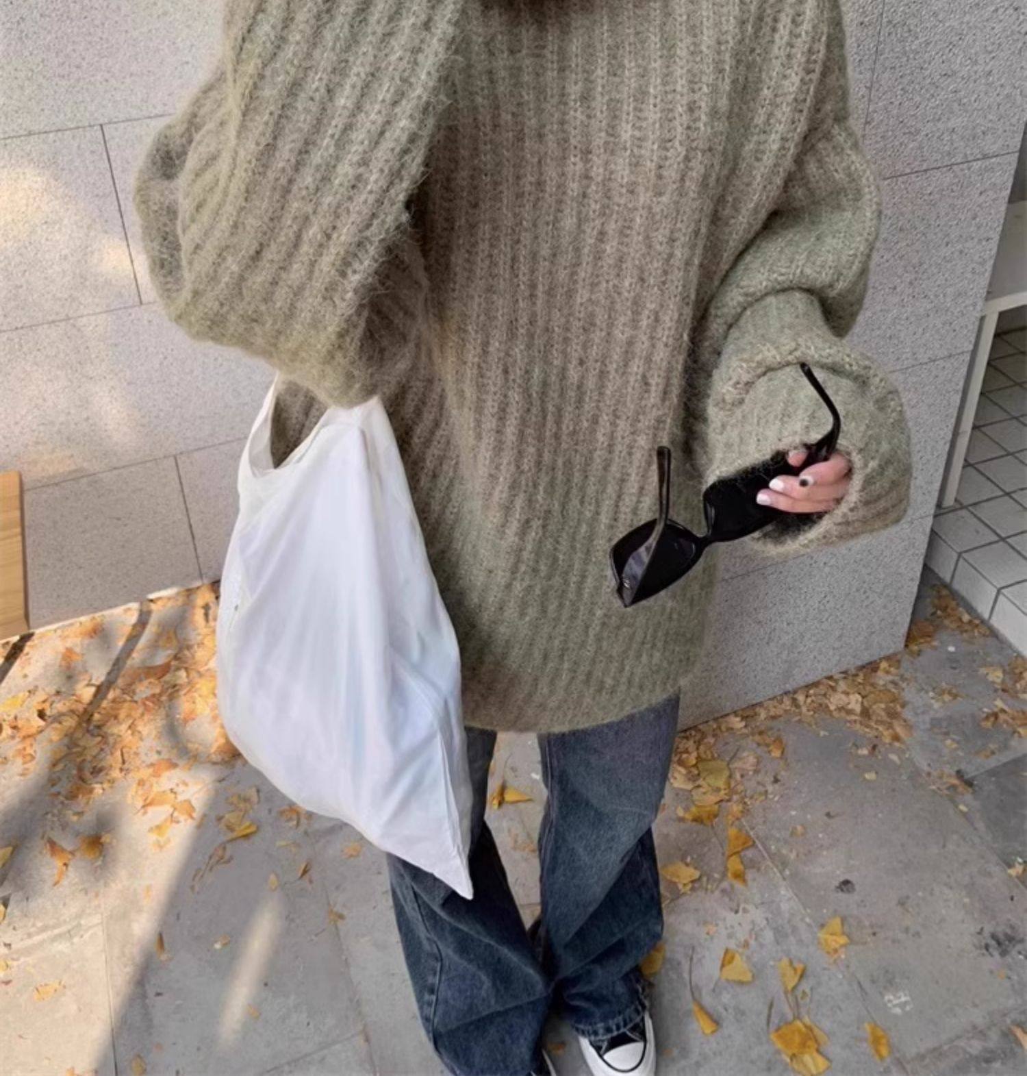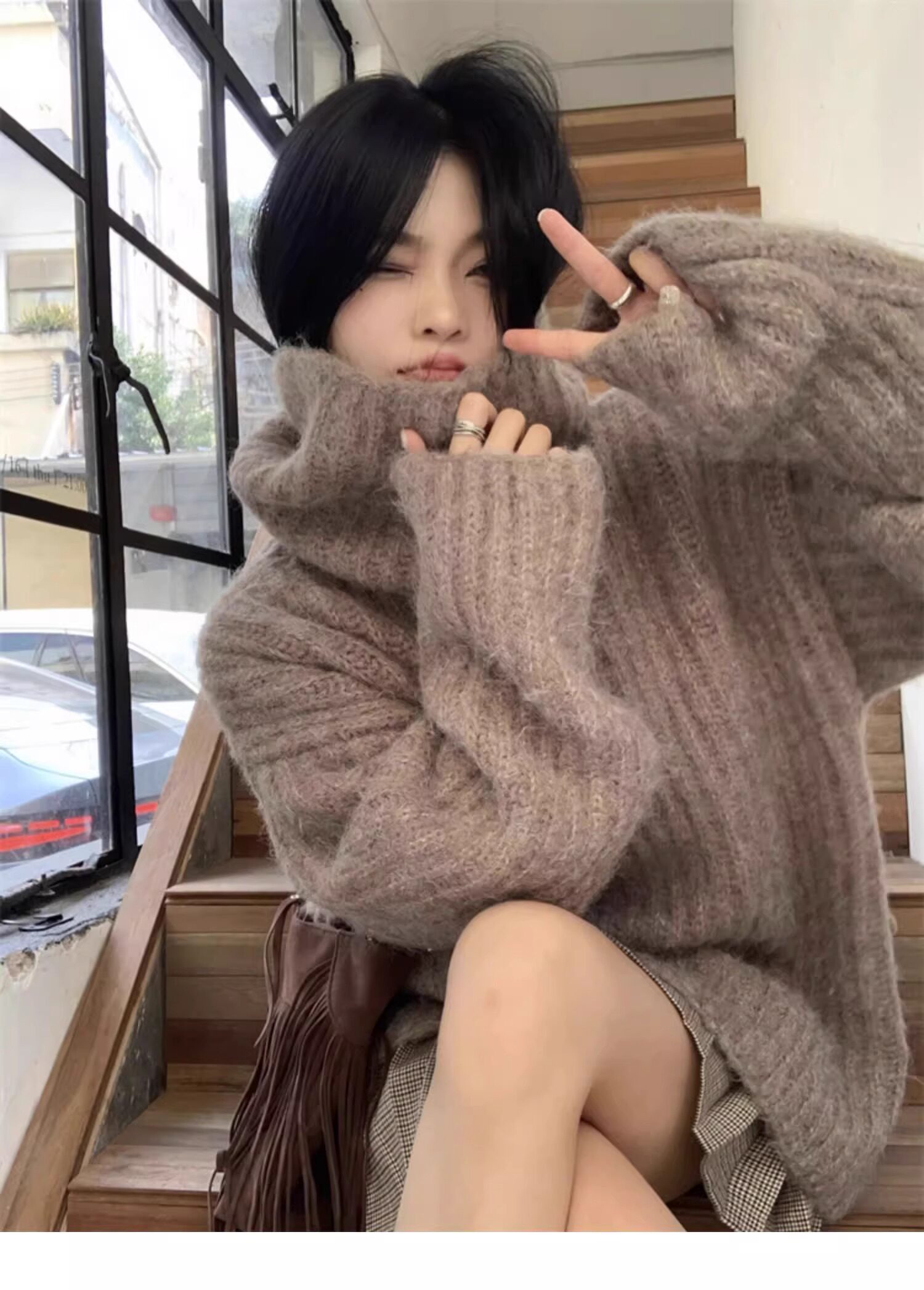 法式復古灰色高領慵懶風毛衣女秋冬季軟糯寬松內搭針織衫加厚上衣