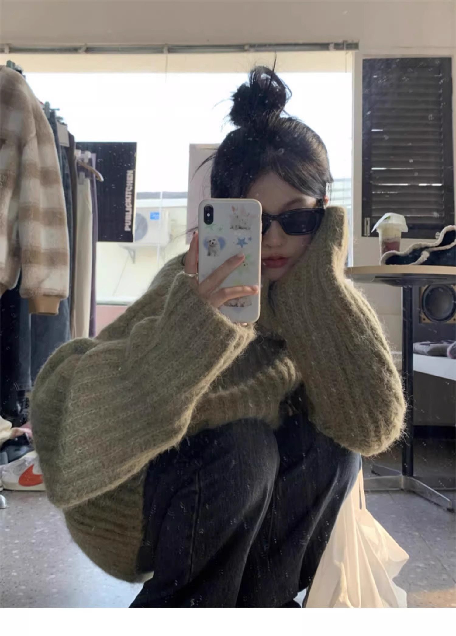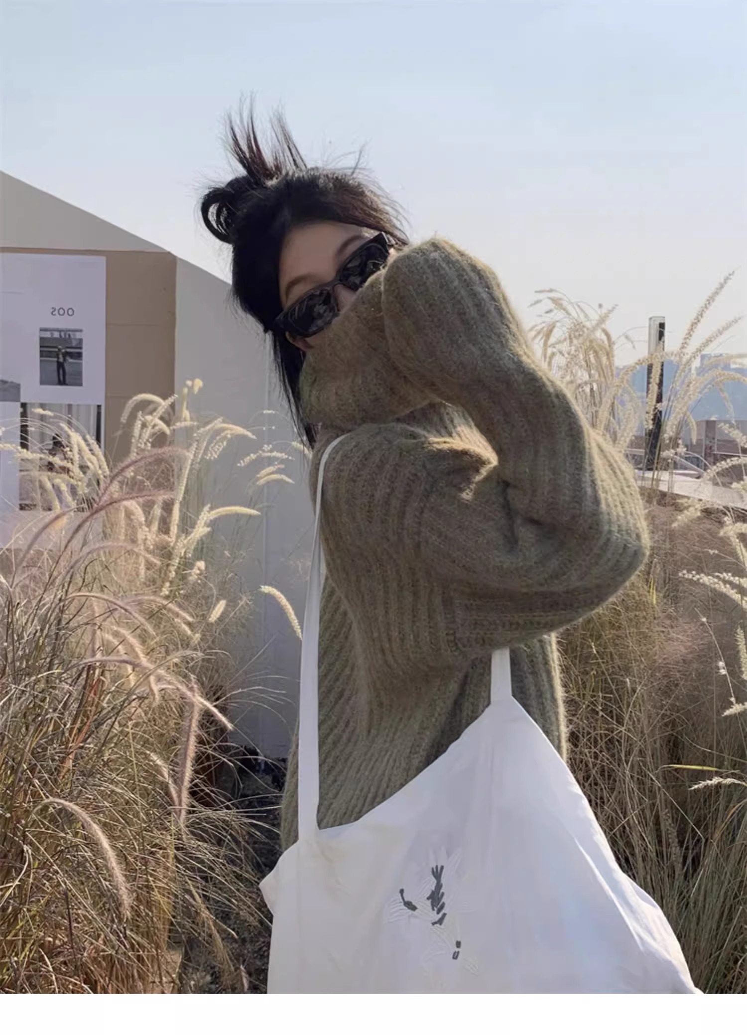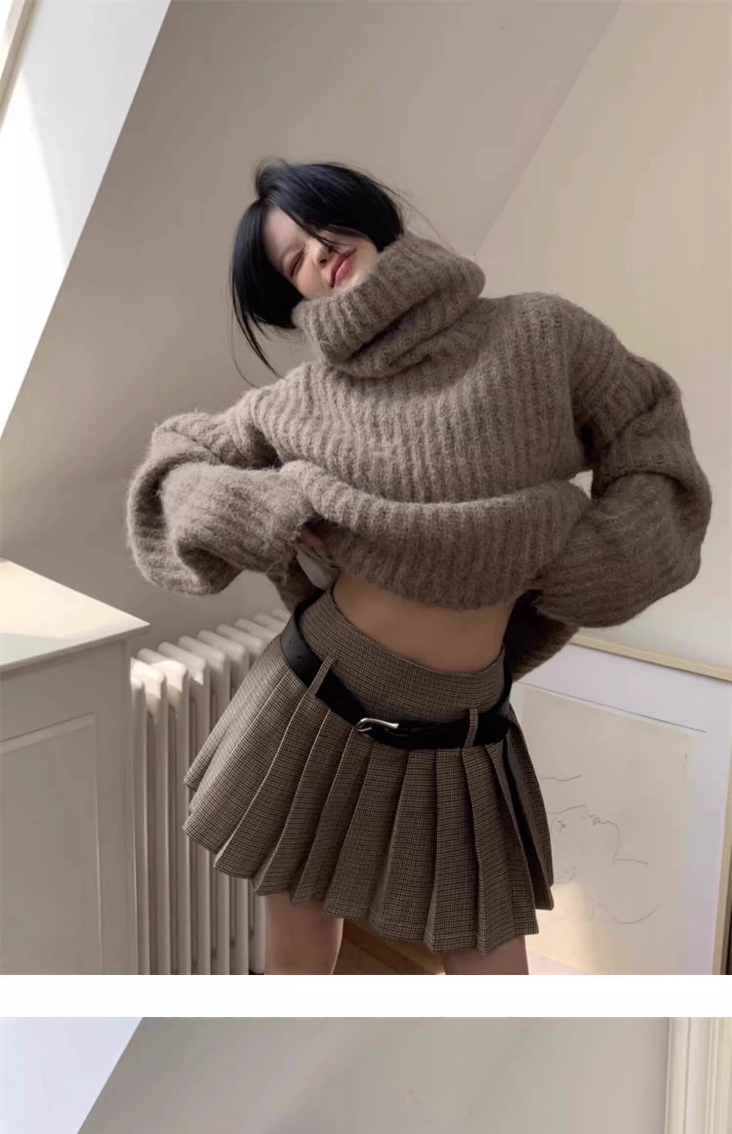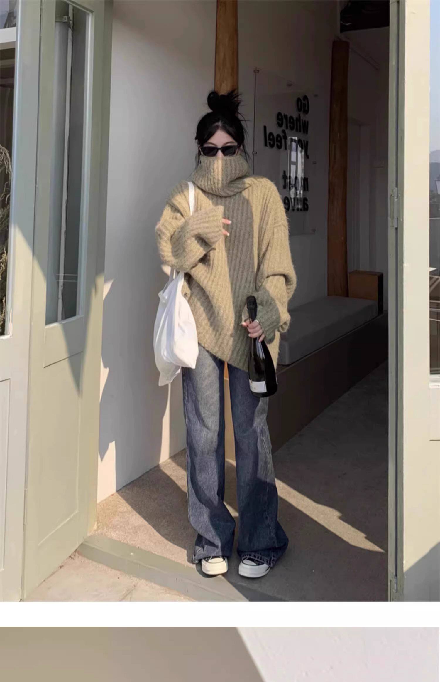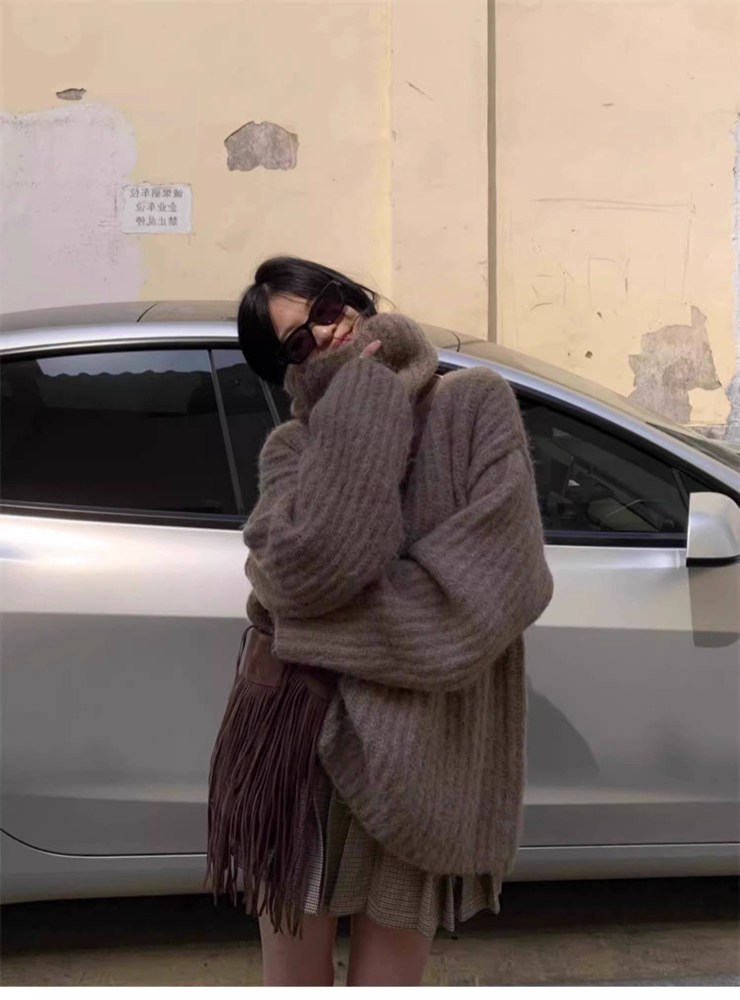 法式復古灰色高領慵懶風毛衣女秋冬季軟糯寬松內搭針織衫加厚上衣