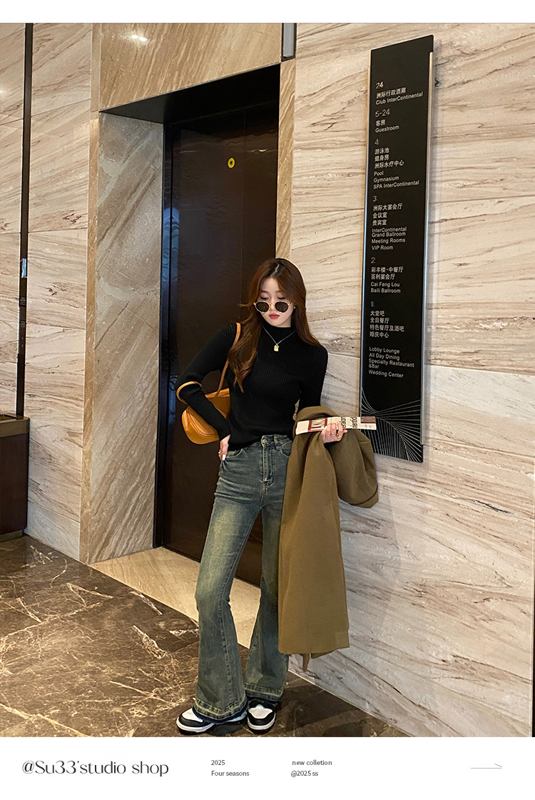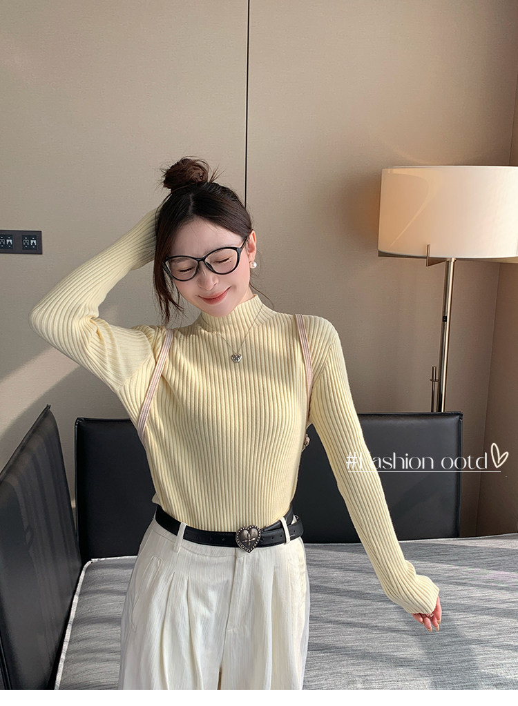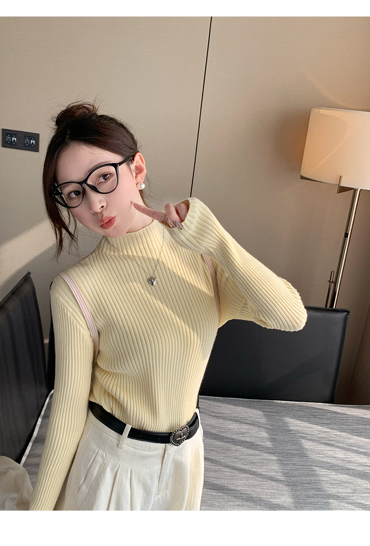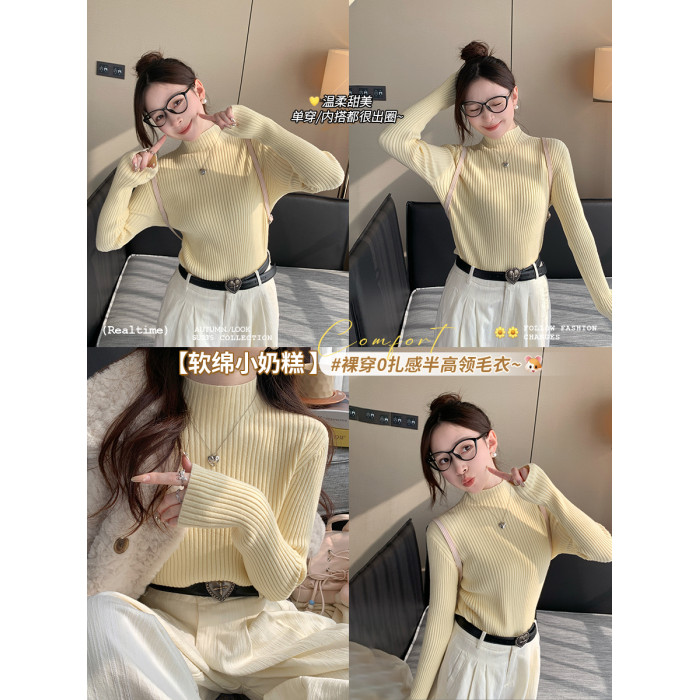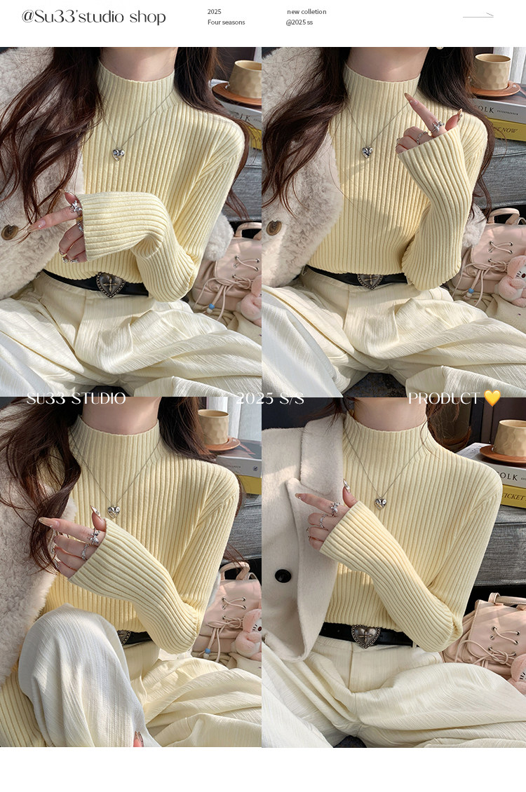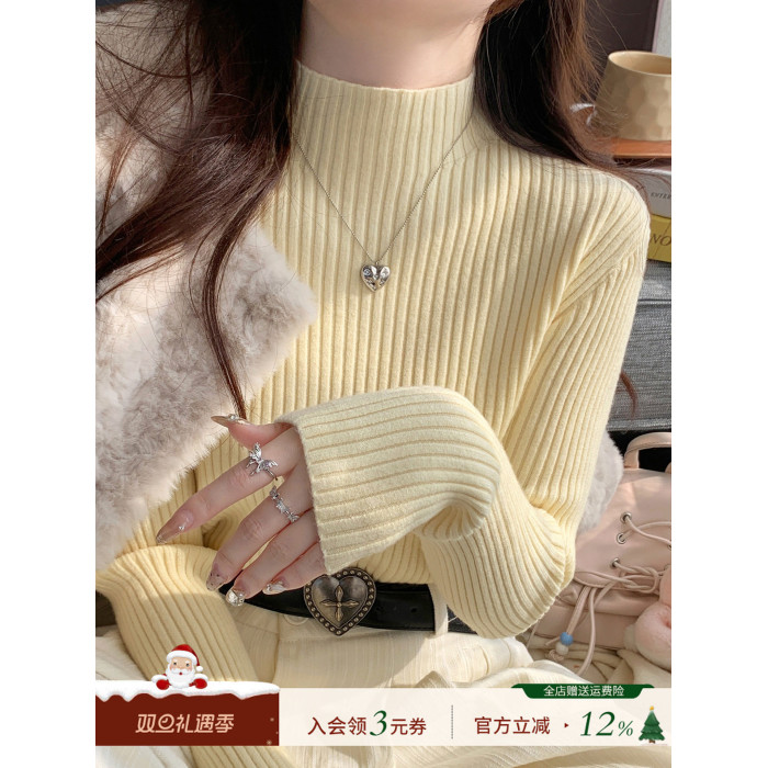 蘇三三黃色毛衣女款2025新款秋冬高級感內搭半高領打底衫針織上衣