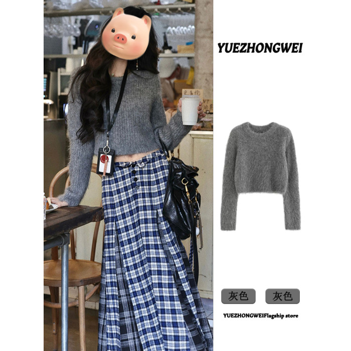 小個子灰色短款軟糯毛衣女2025早秋季新款修身顯瘦內搭針織衫上衣