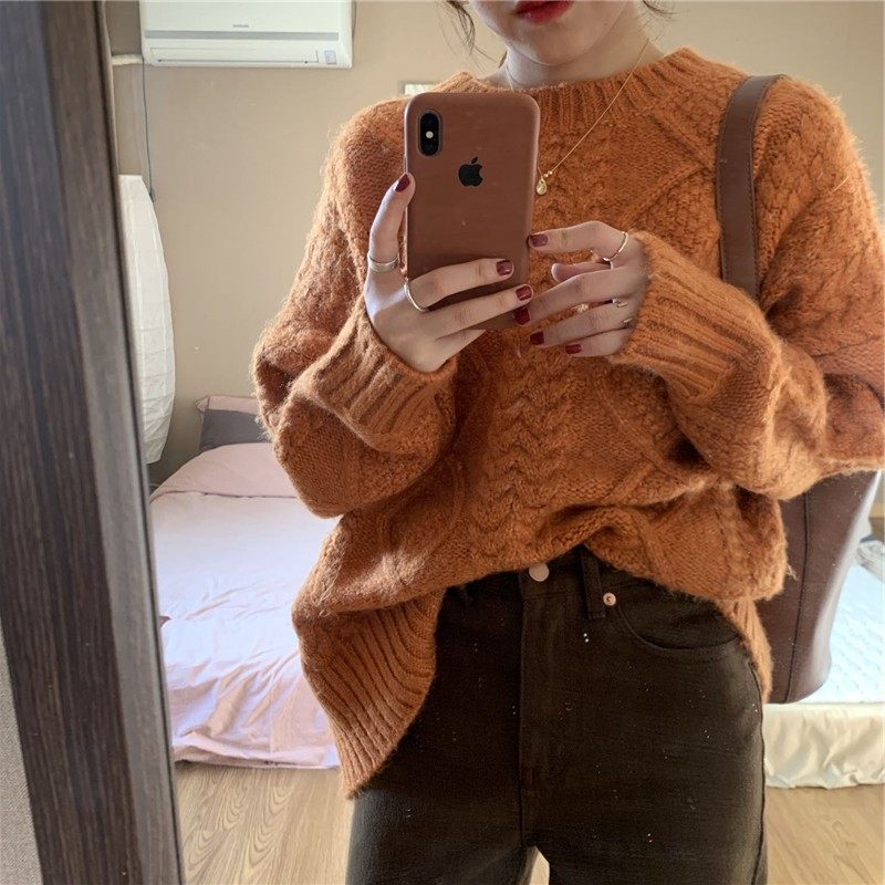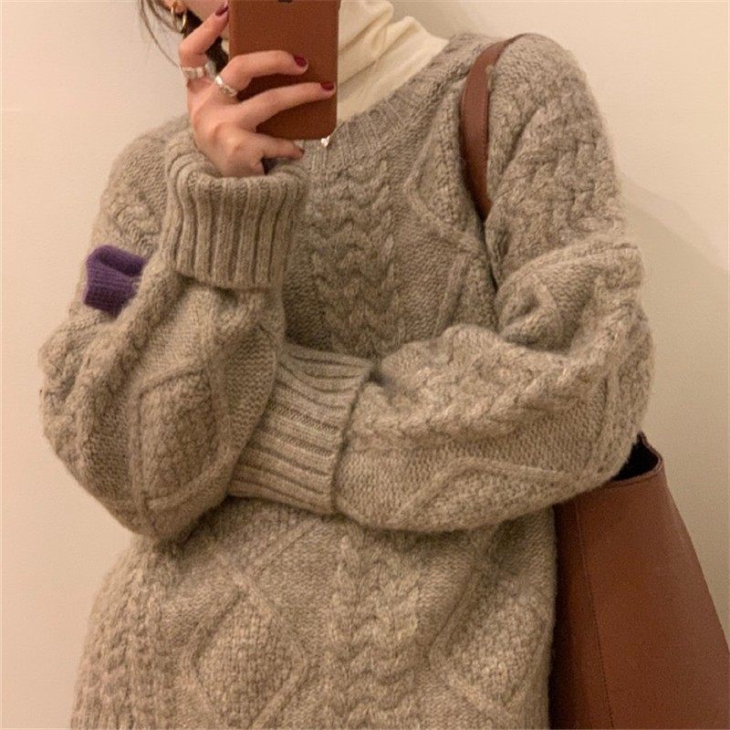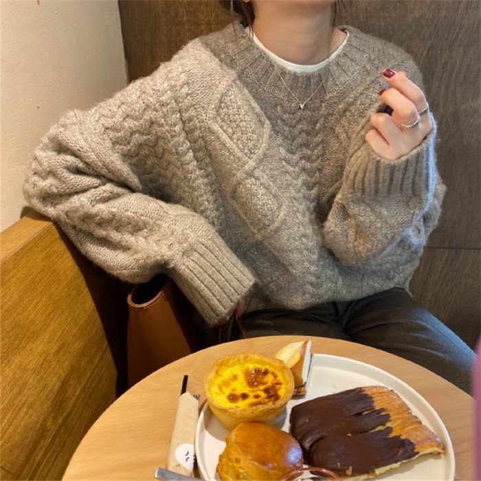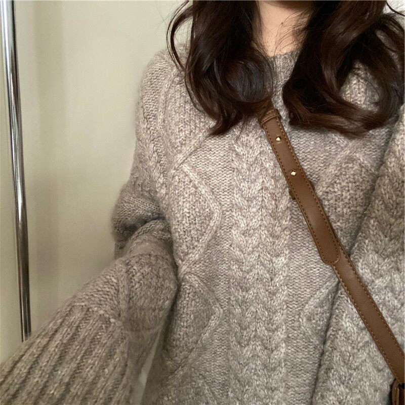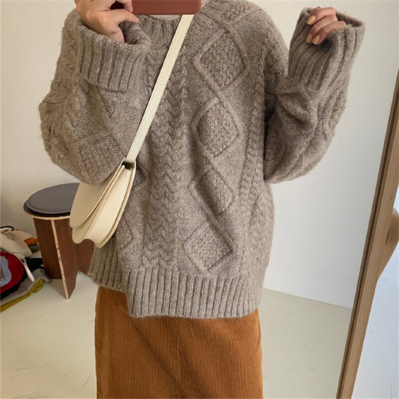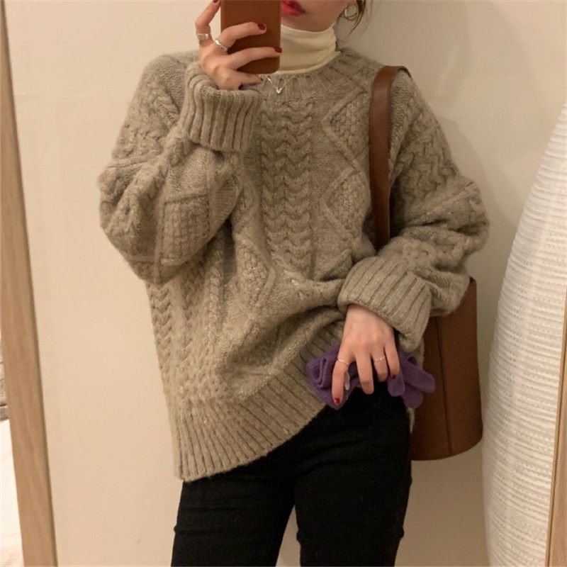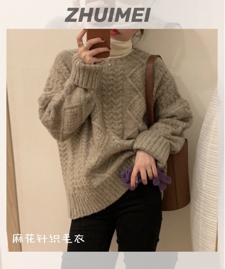 復古麻花套頭毛衣女2025秋冬新款慵嬾寬鬆外穿加厚粗毛線針織上衣