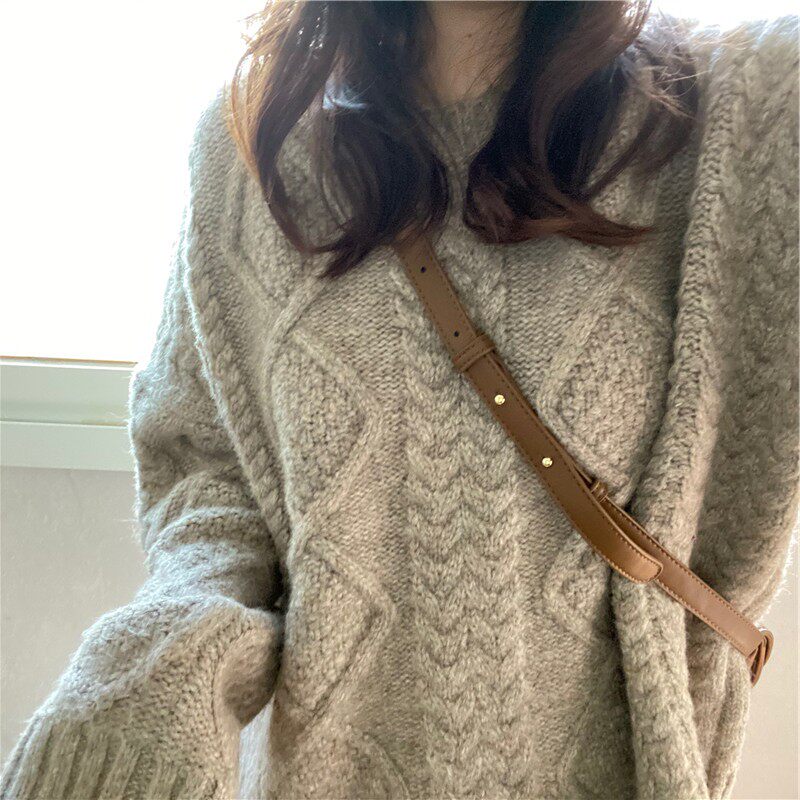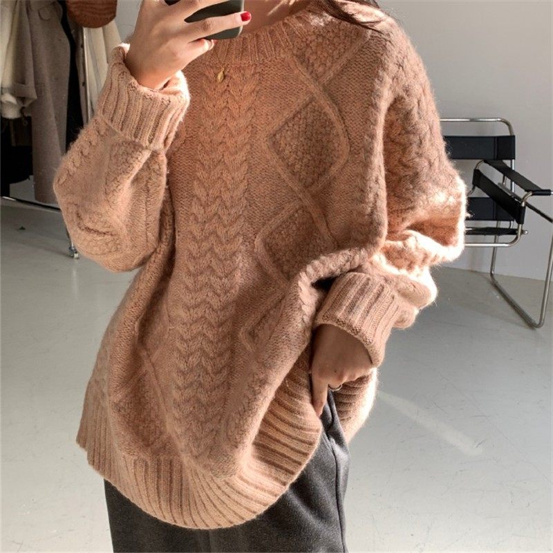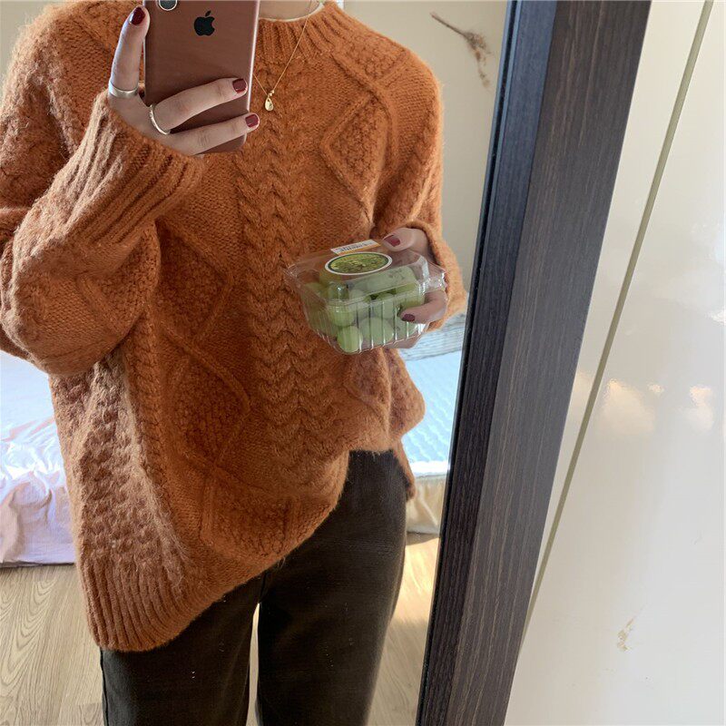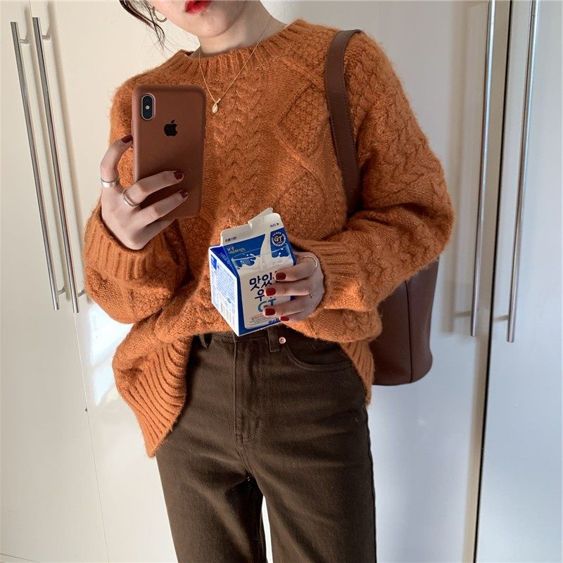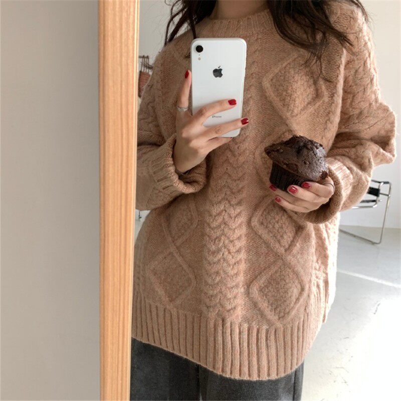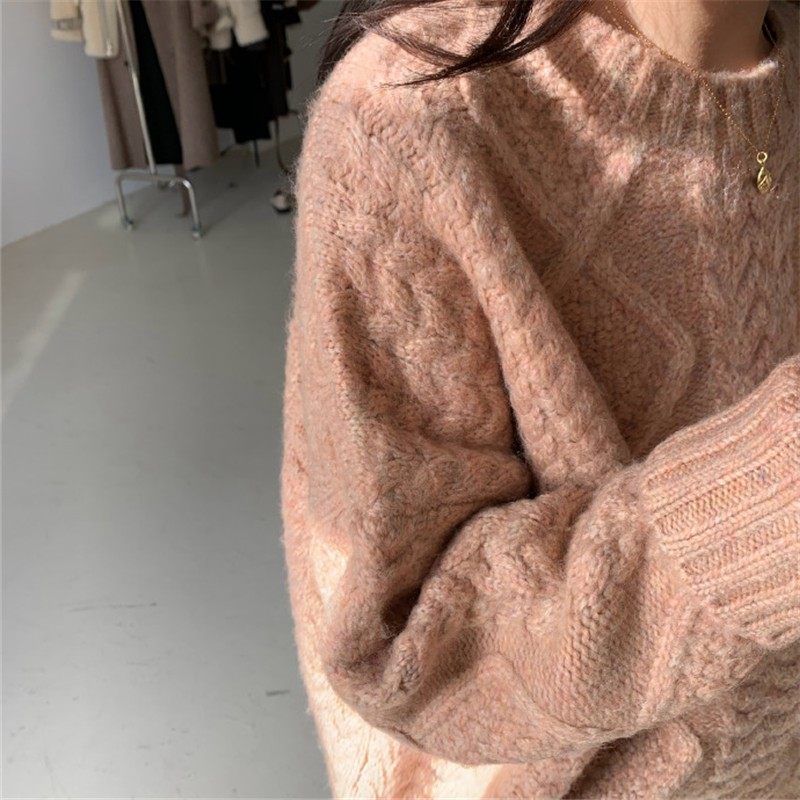 復古麻花套頭毛衣女2025秋冬新款慵嬾寬鬆外穿加厚粗毛線針織上衣