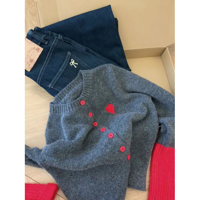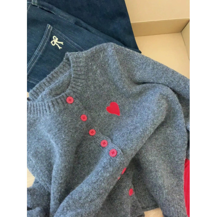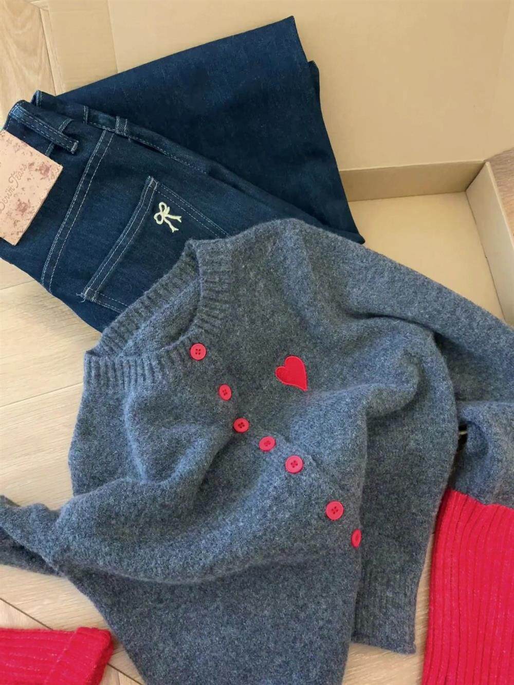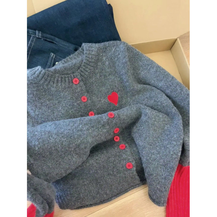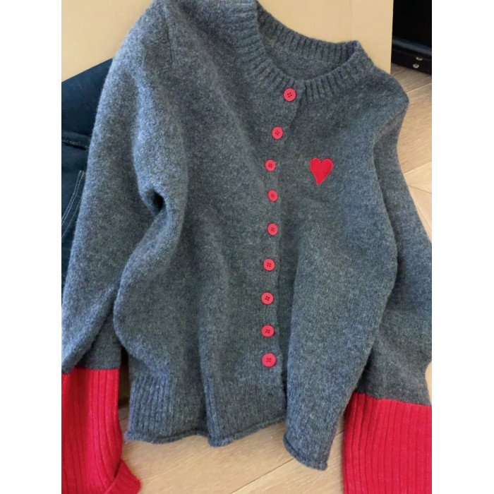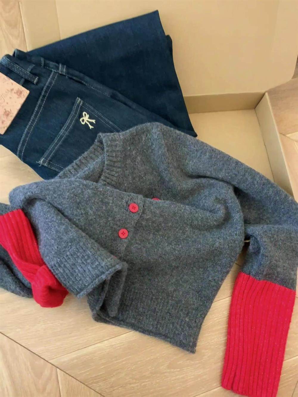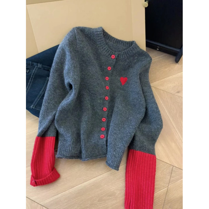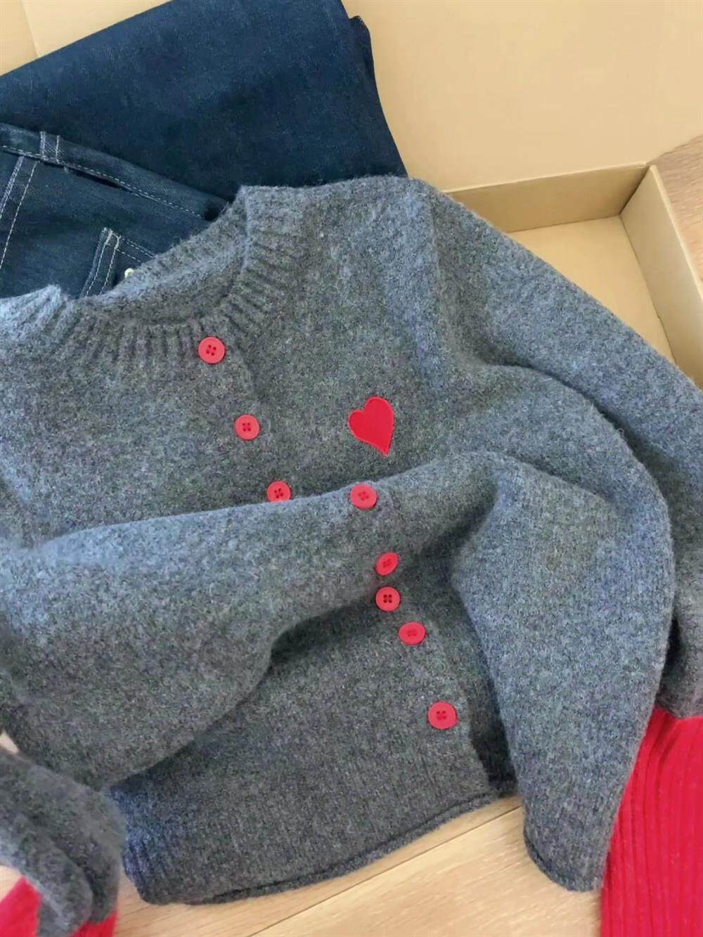 高級感超好看撞色針織開衫外套女秋冬季內搭上衣軟糯獨特灰色毛衣