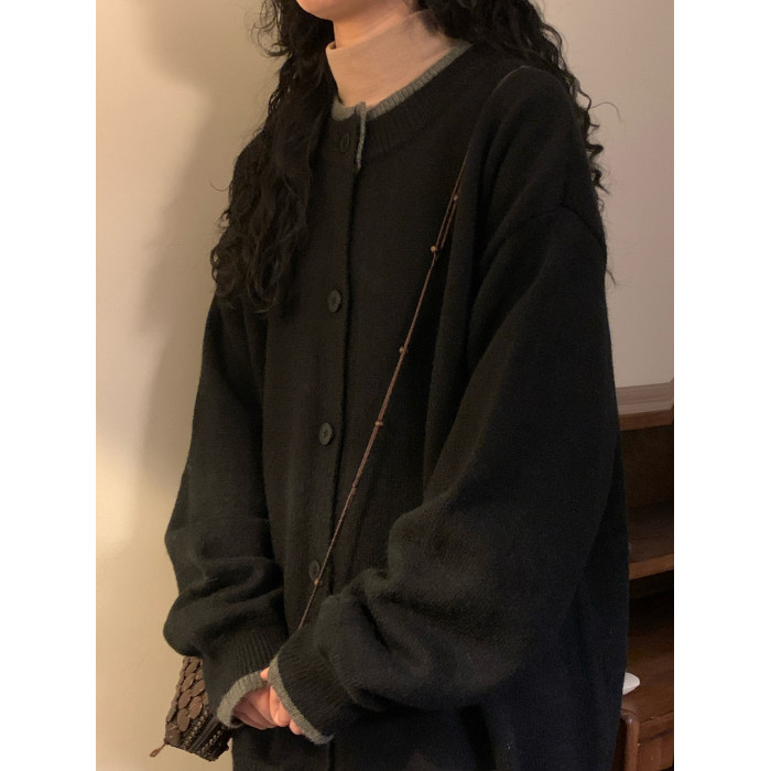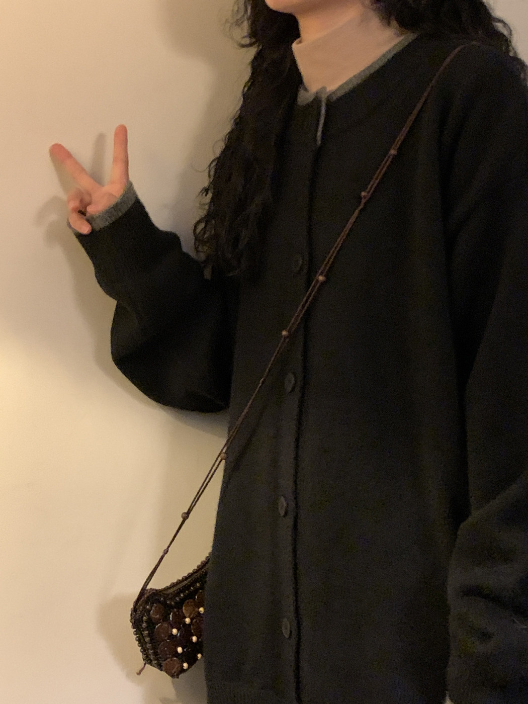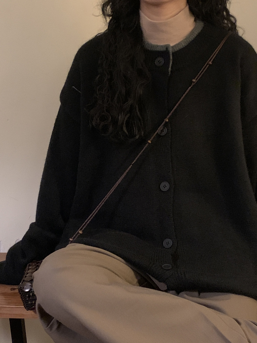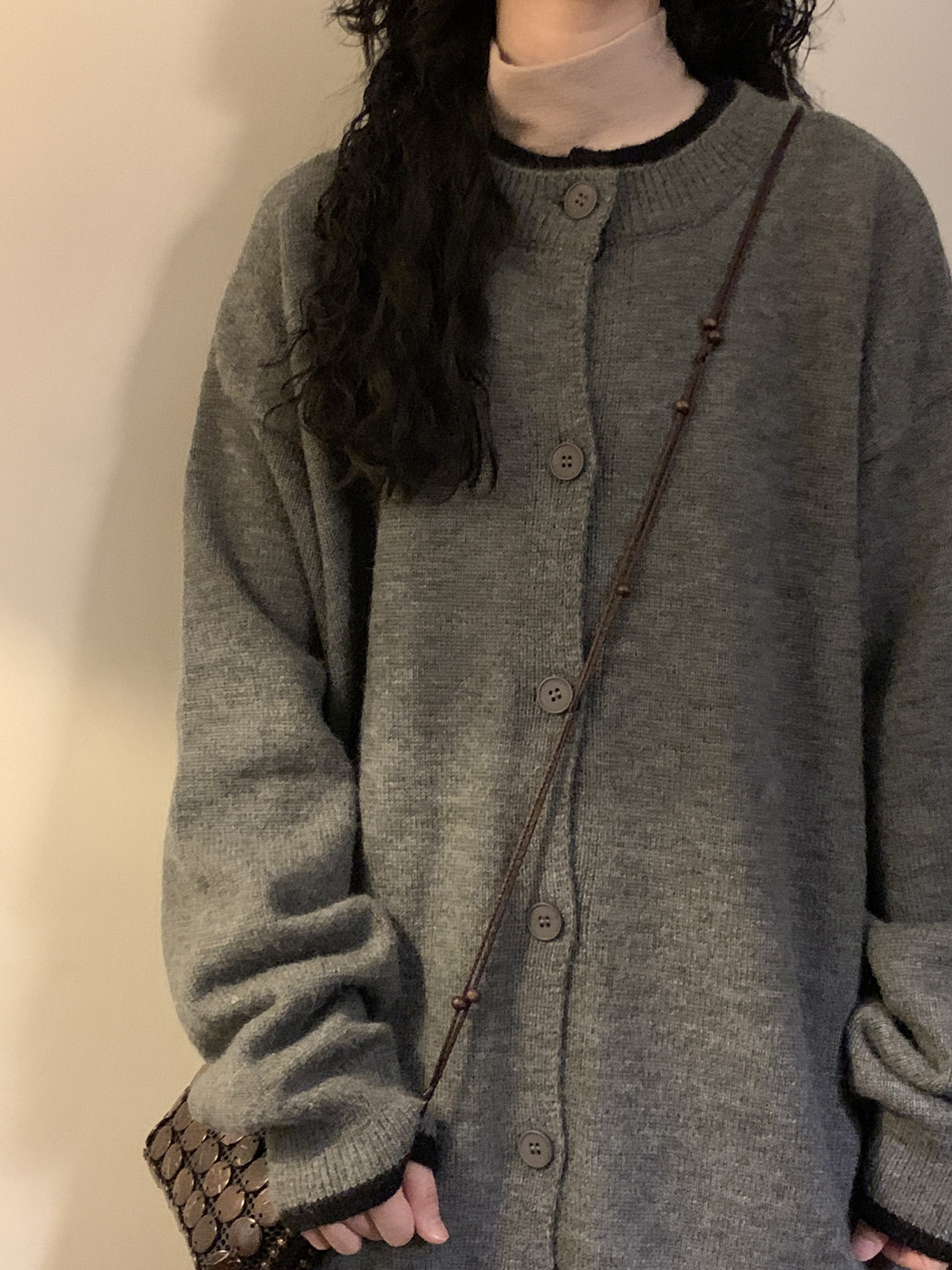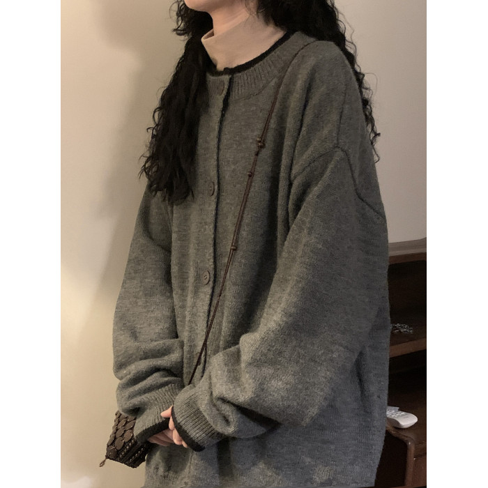 NAGA自製美式復古純色慵懶風休閒百搭圓領針織開衫毛衣簡約外套女