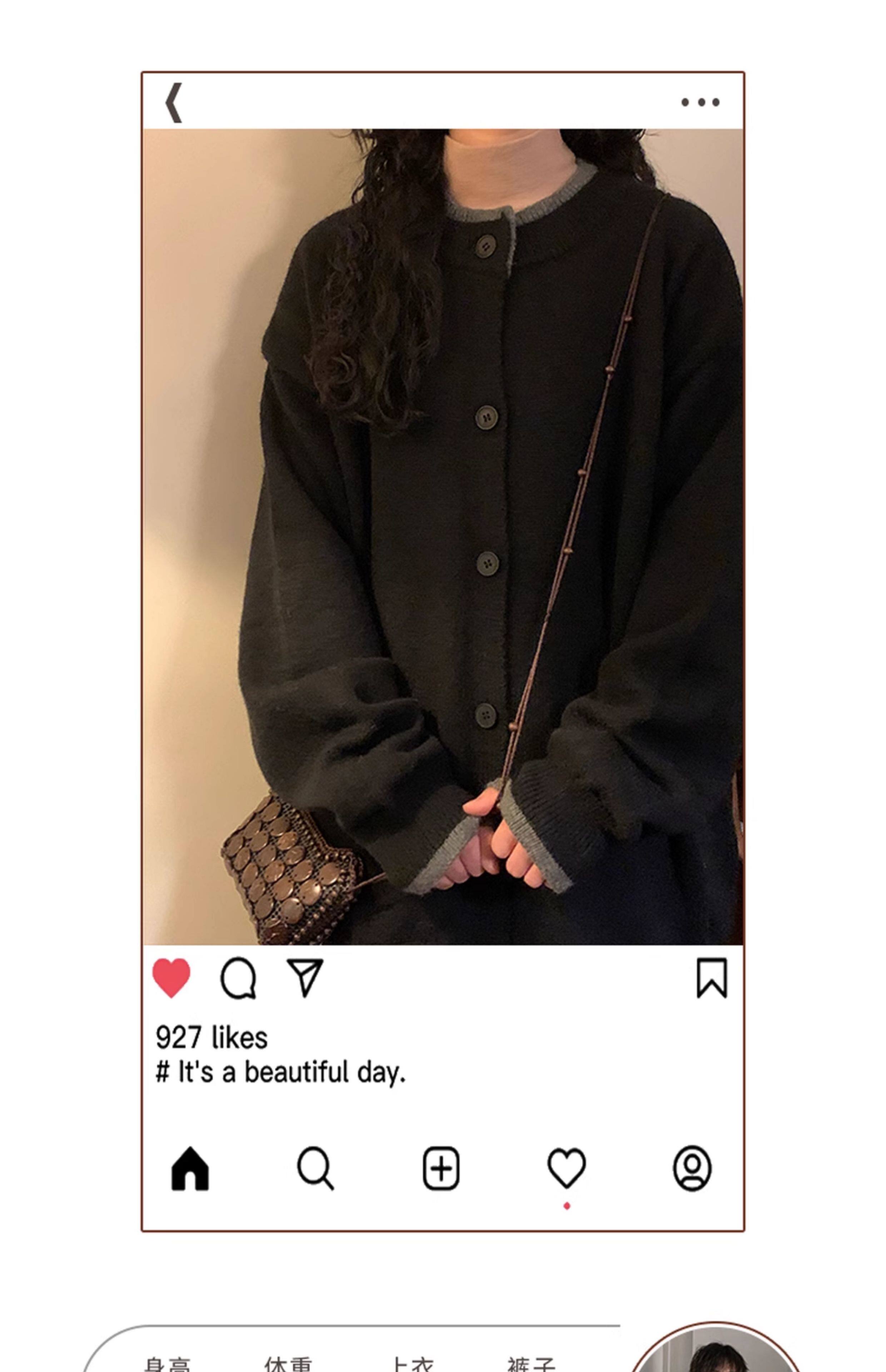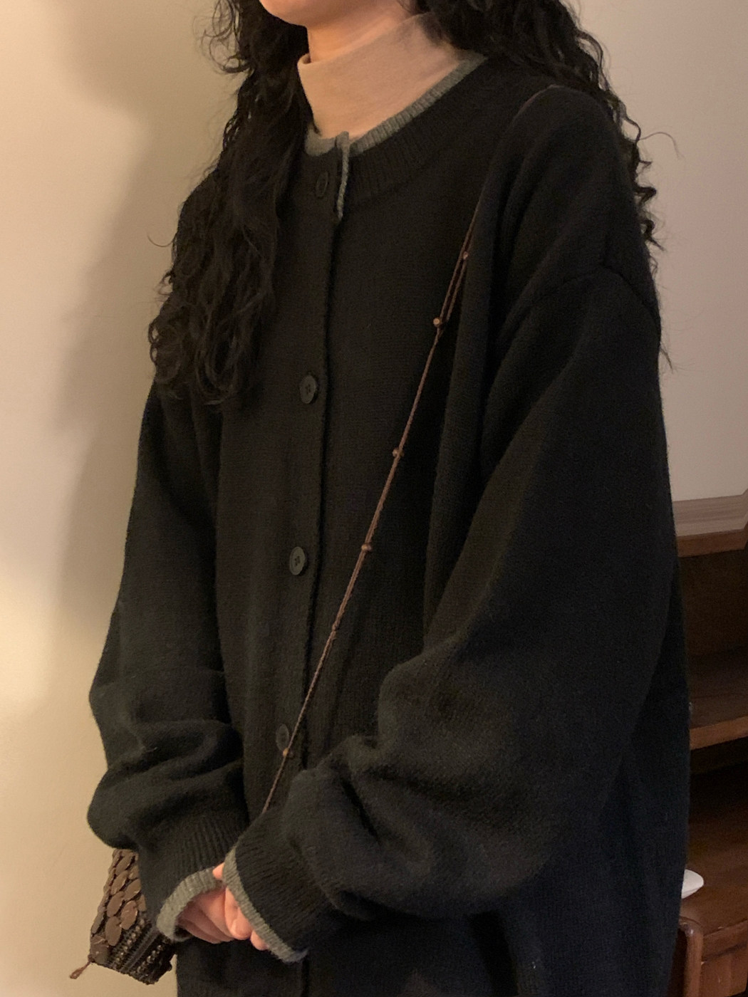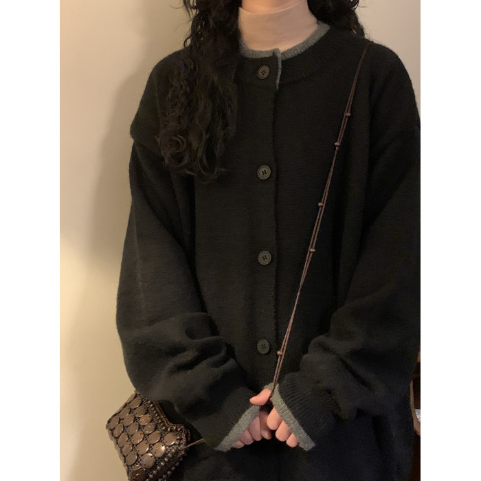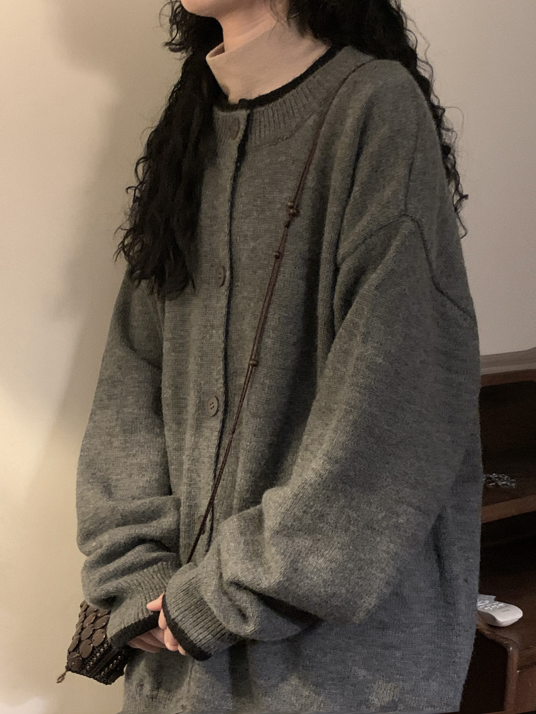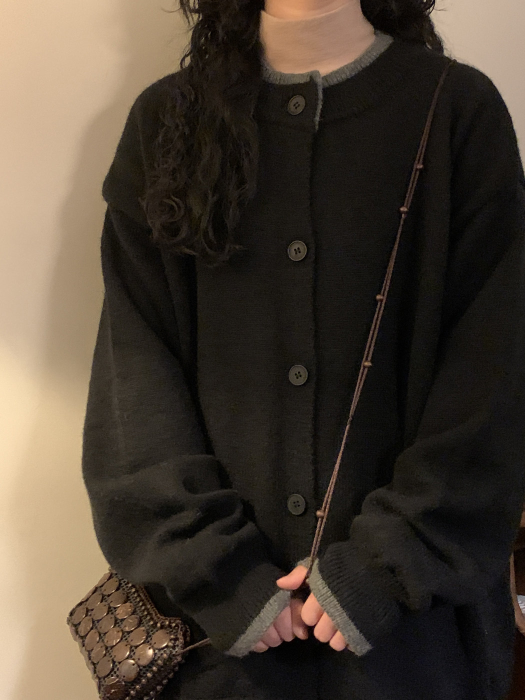 NAGA自製美式復古純色慵懶風休閒百搭圓領針織開衫毛衣簡約外套女