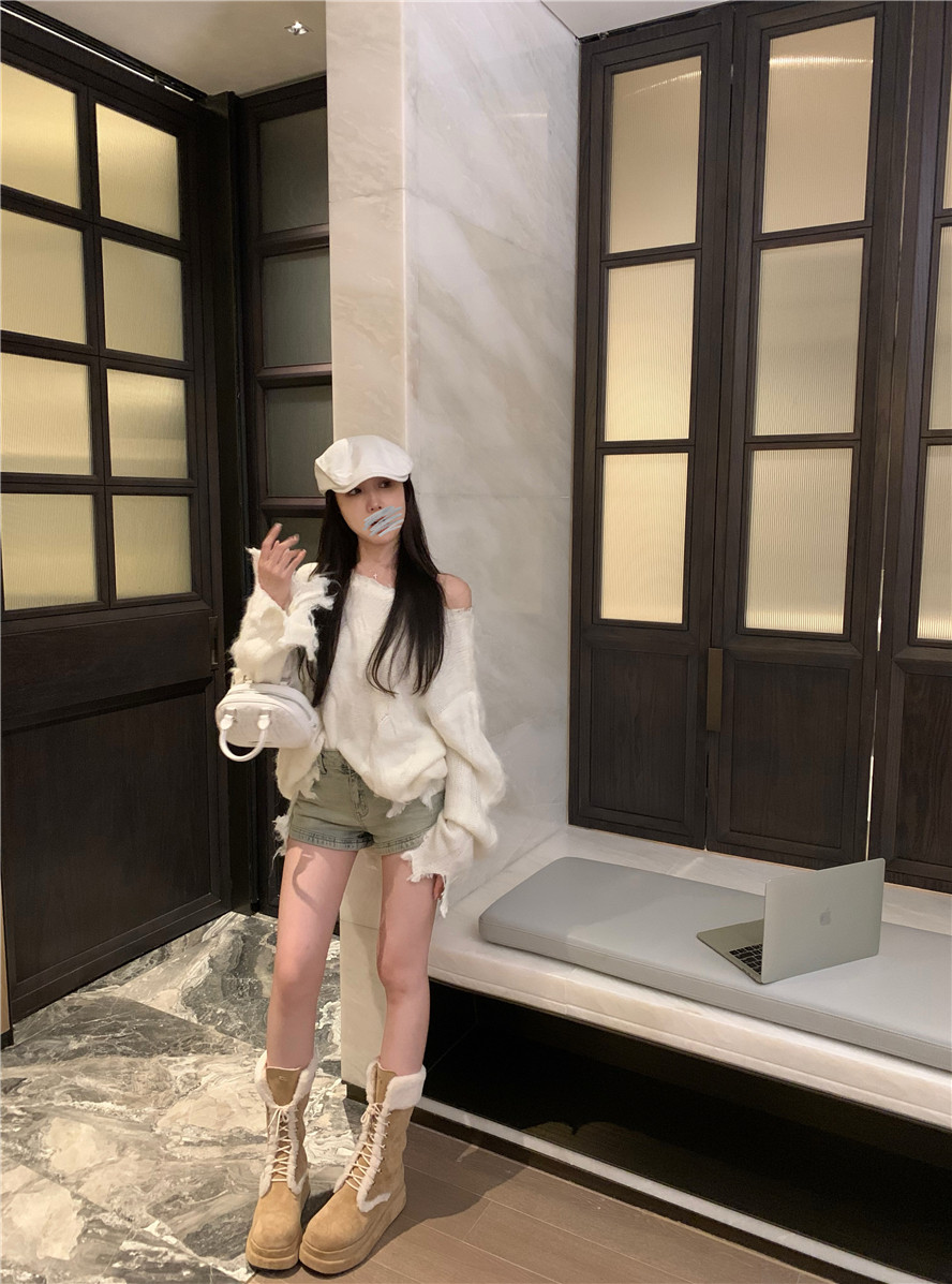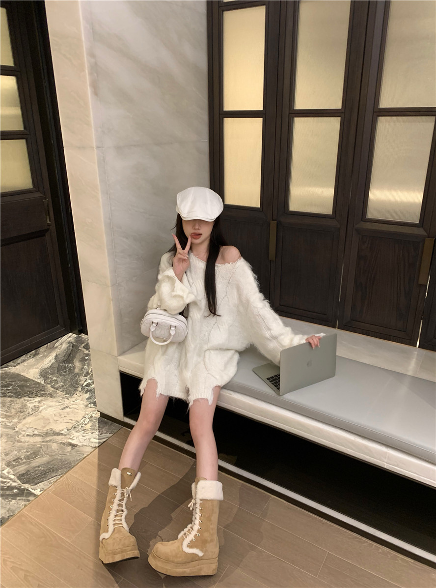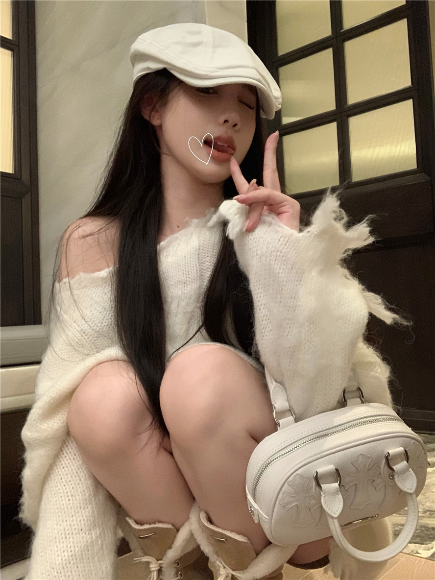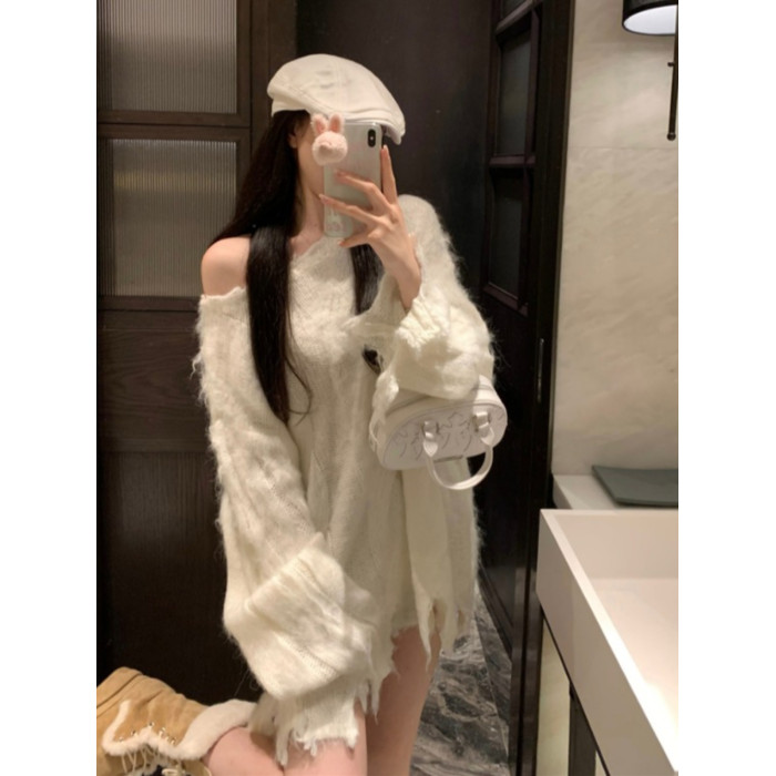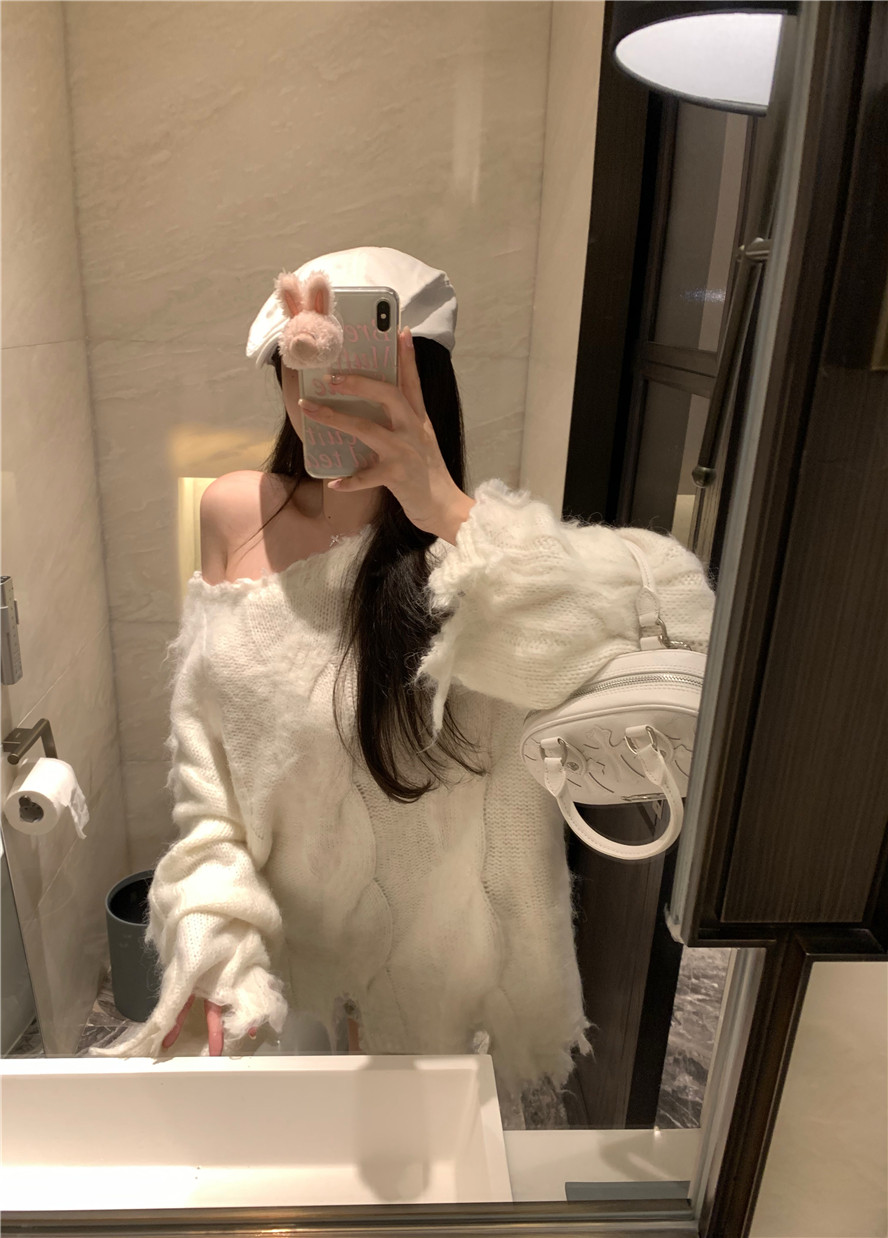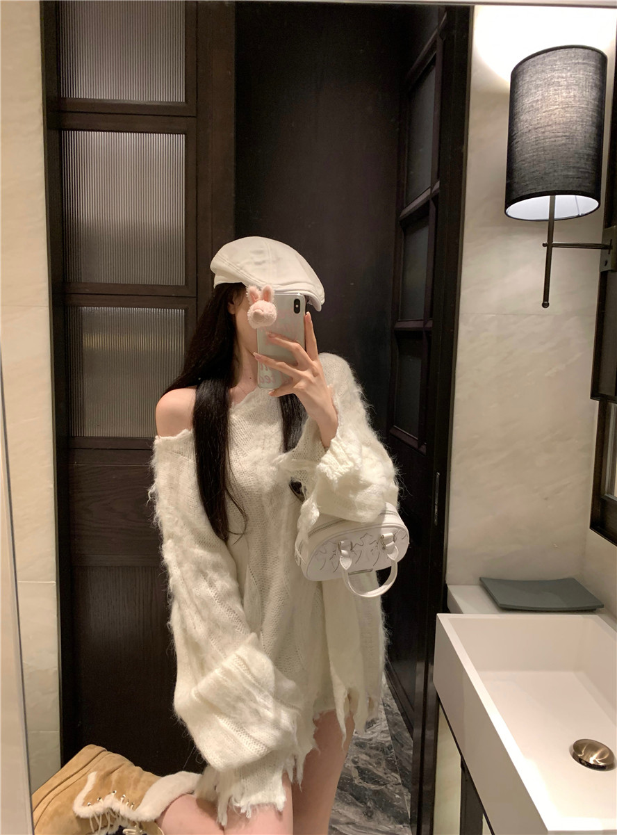 破洞麻花灰色毛衣女秋冬新款設計感小衆寬松外穿慵懶風針織衫上衣