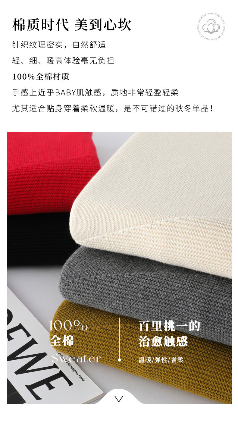 不起球100%純棉灰色毛衣女內搭秋冬2025新款加厚全棉線針織打底衫