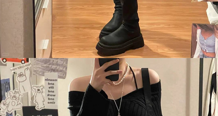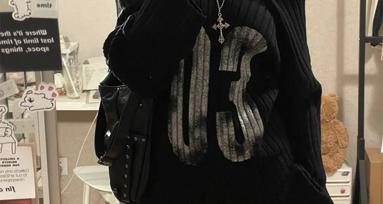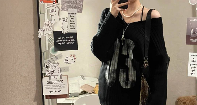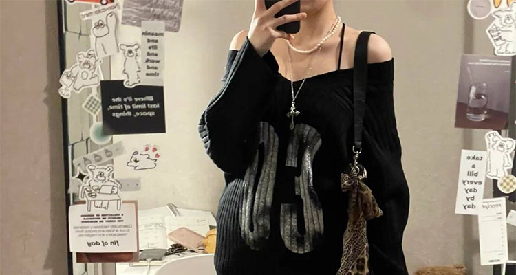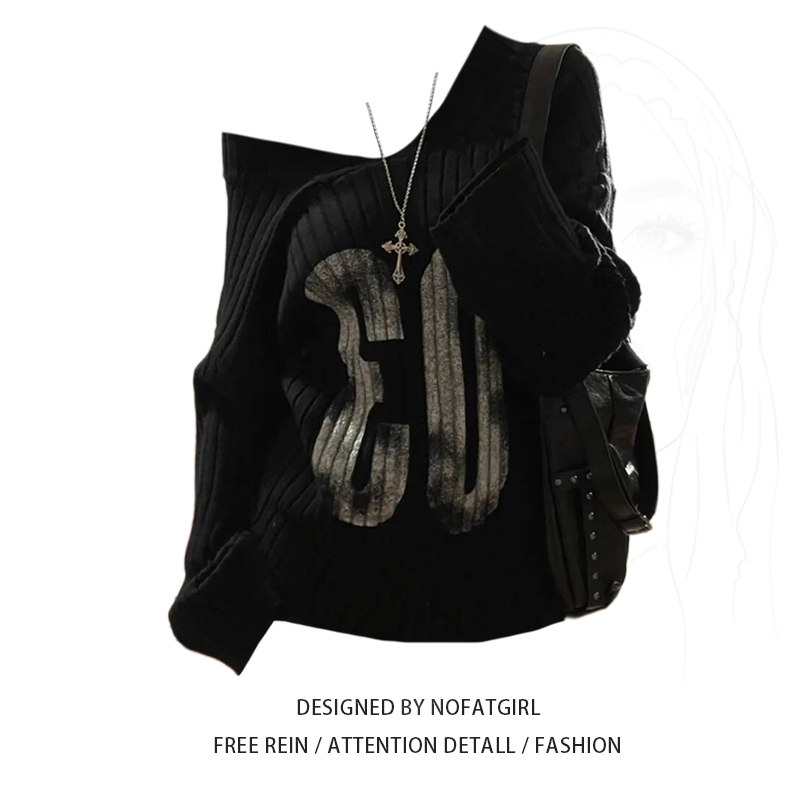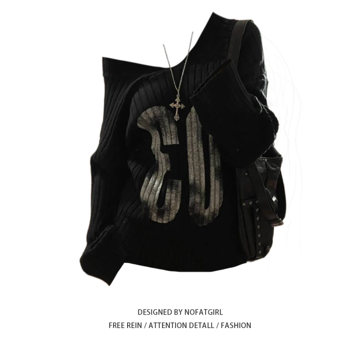 大碼胖MM美式辣妹露肩針織毛衣女秋季新款字母印花慵懶風甜酷上衣