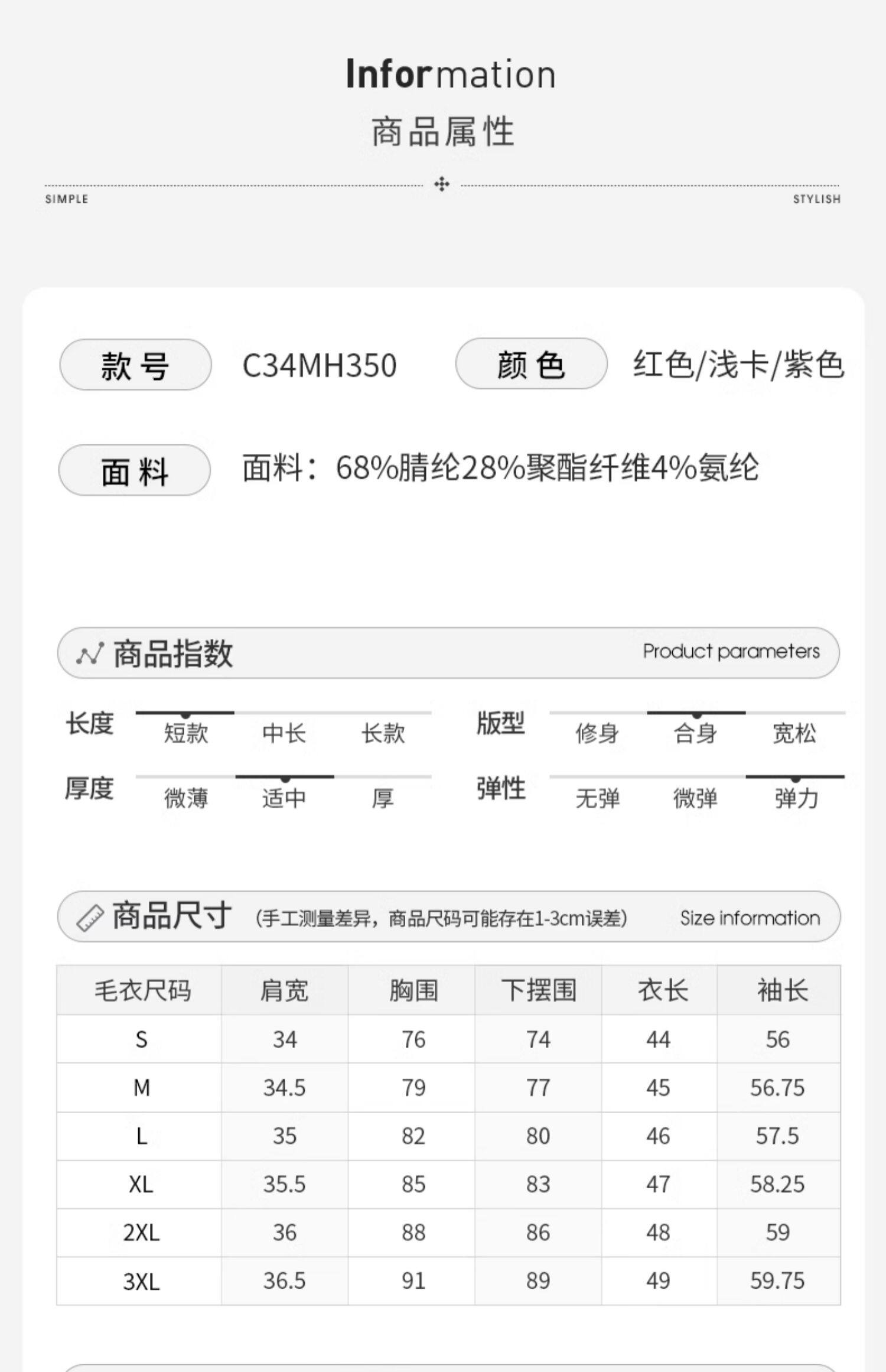 款式及尺寸:
