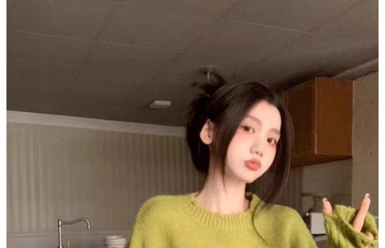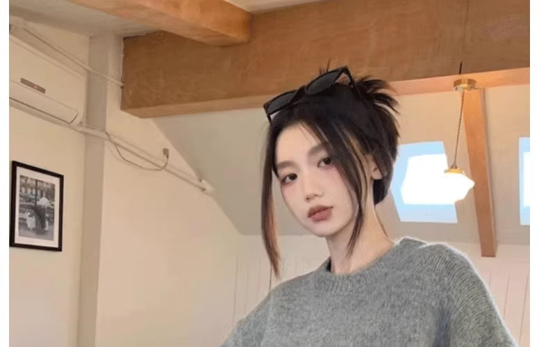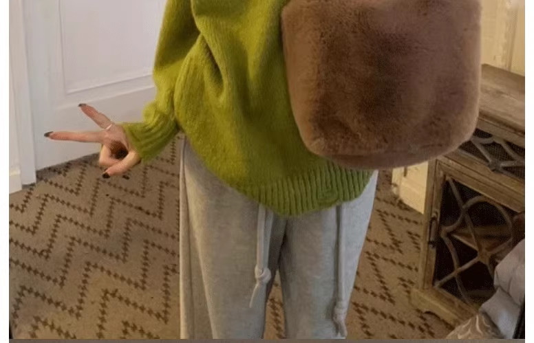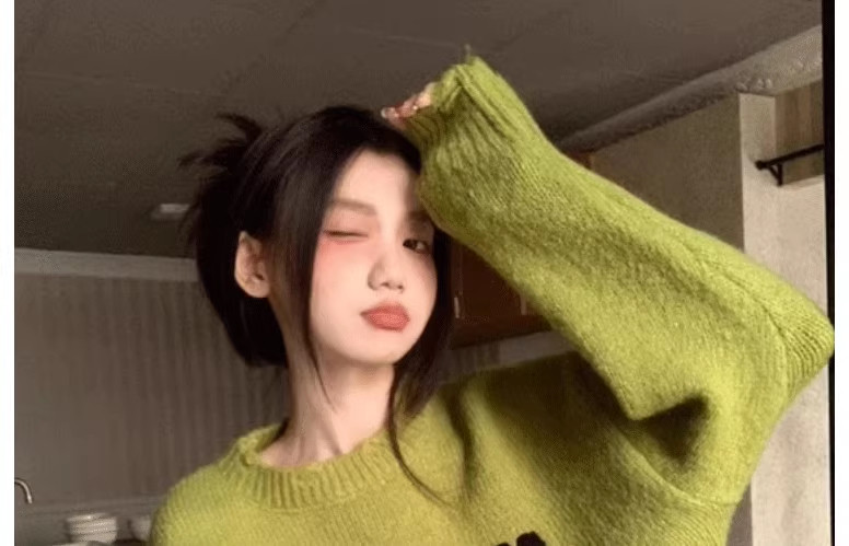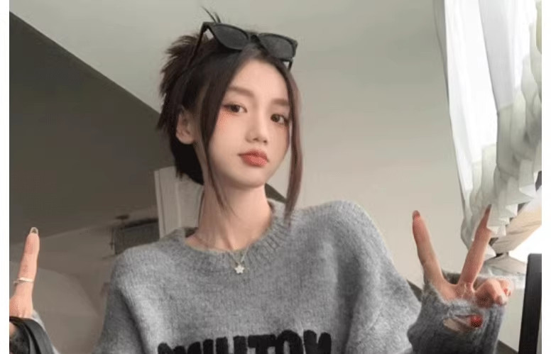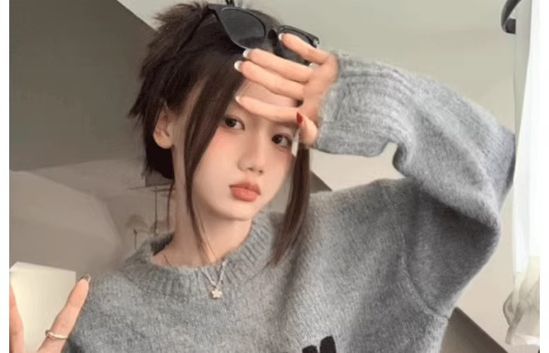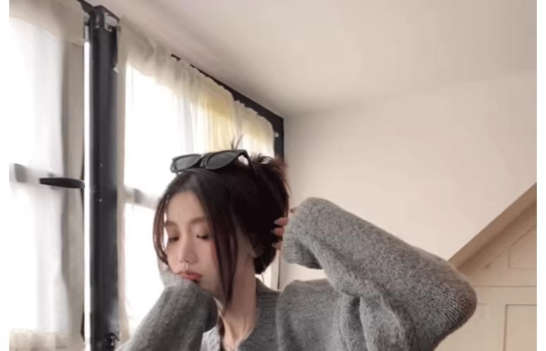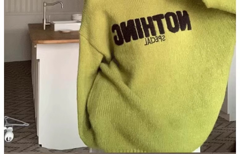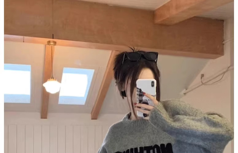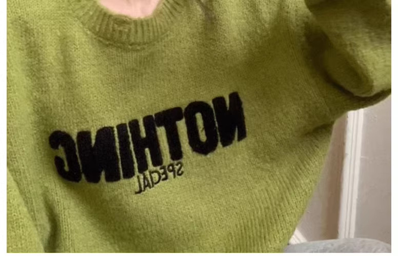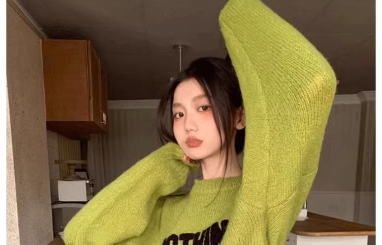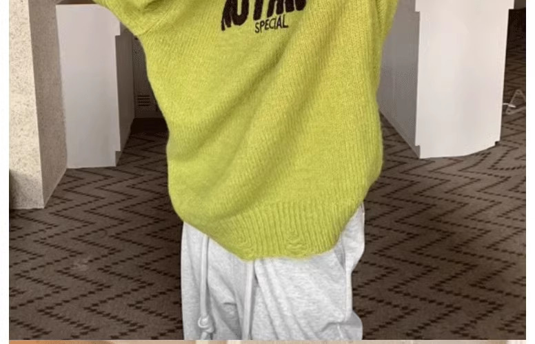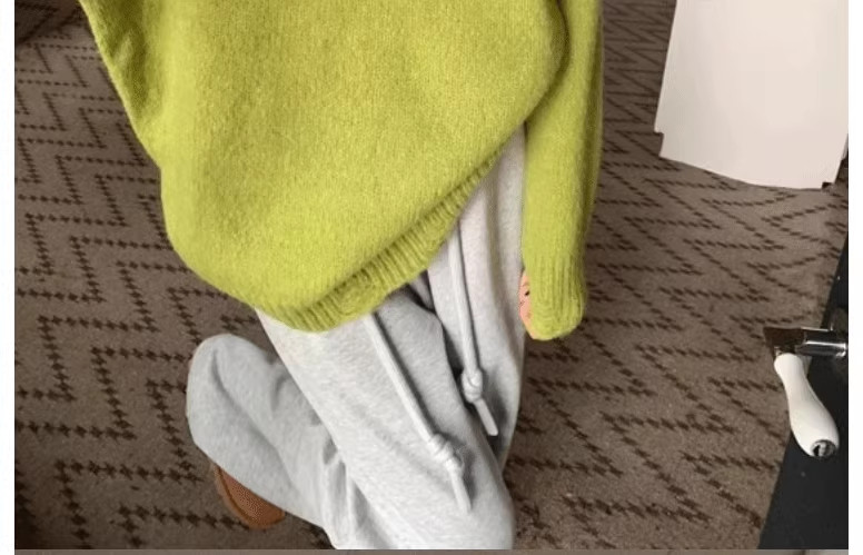 灰色字母刺綉圓領長袖針織衫女秋冬季寬鬆打底衫套頭上衣外穿毛衣