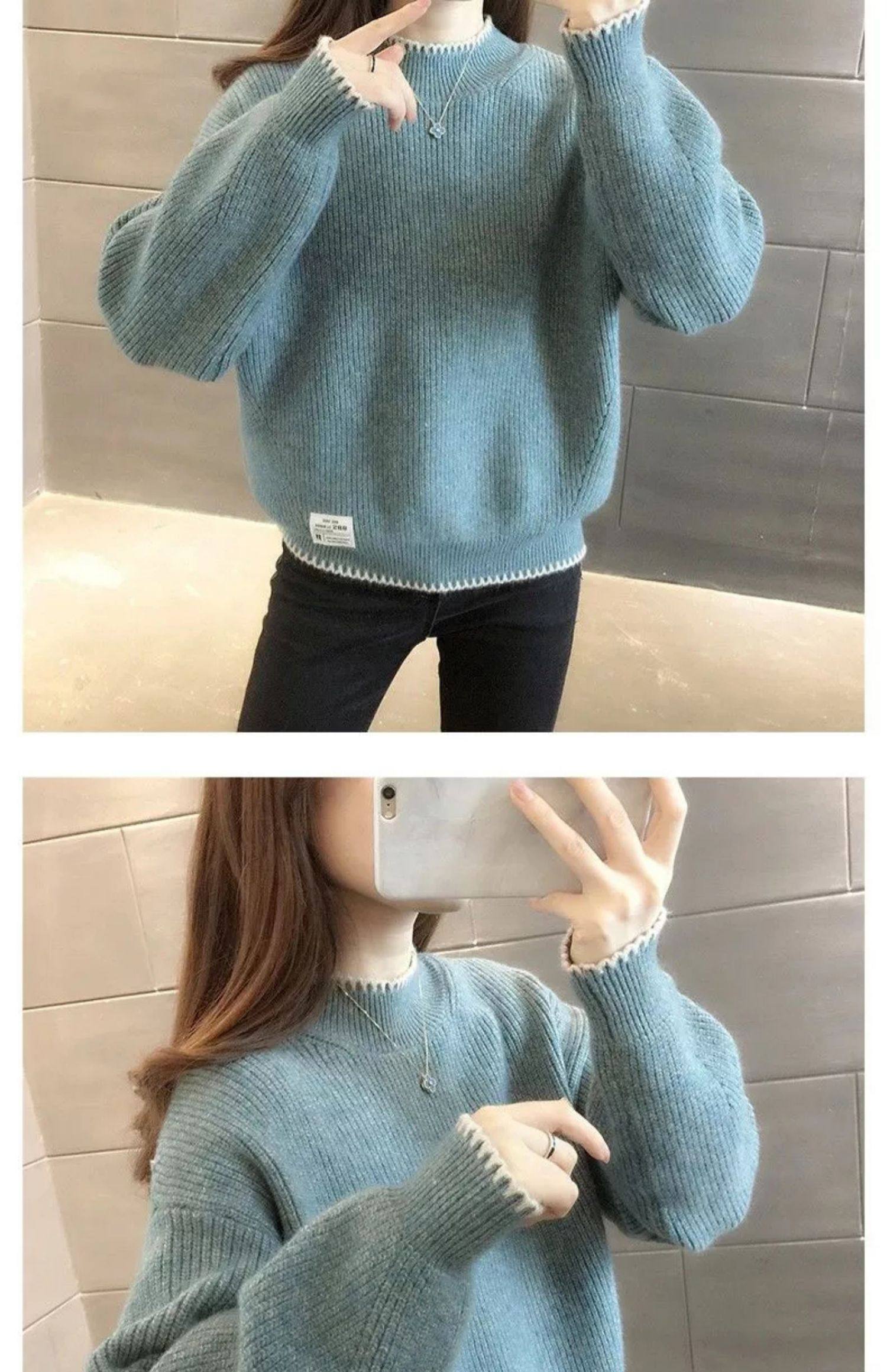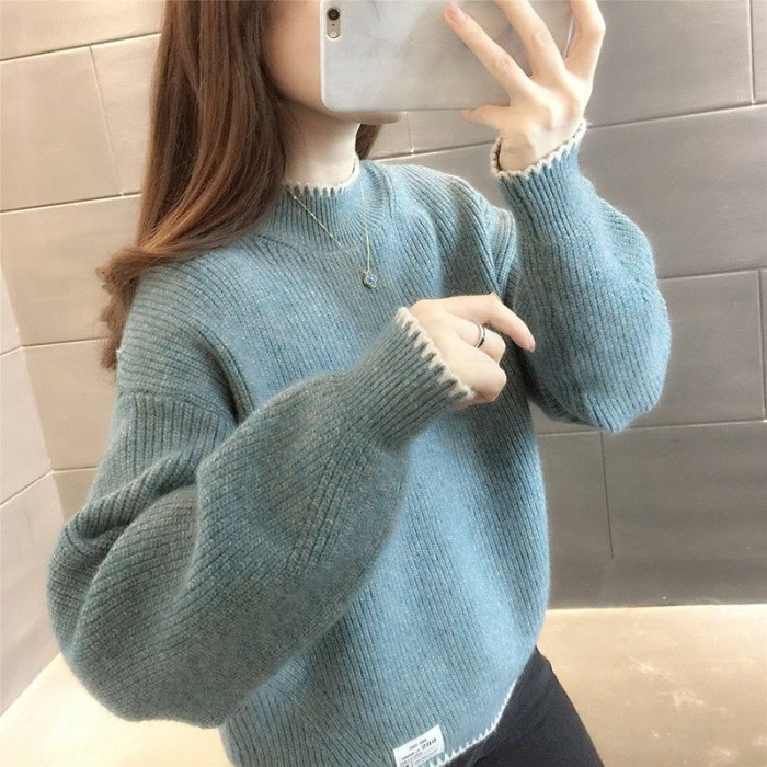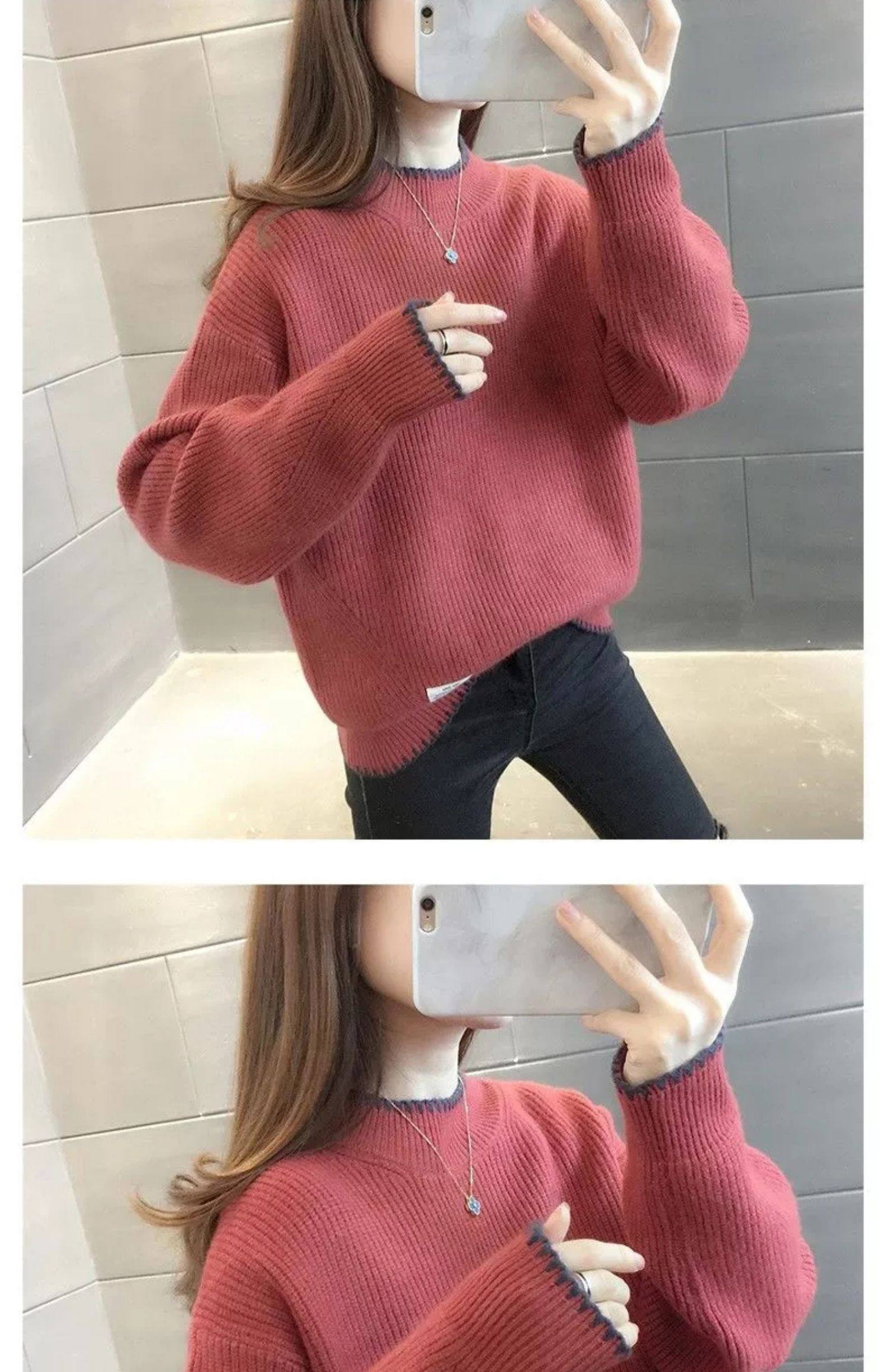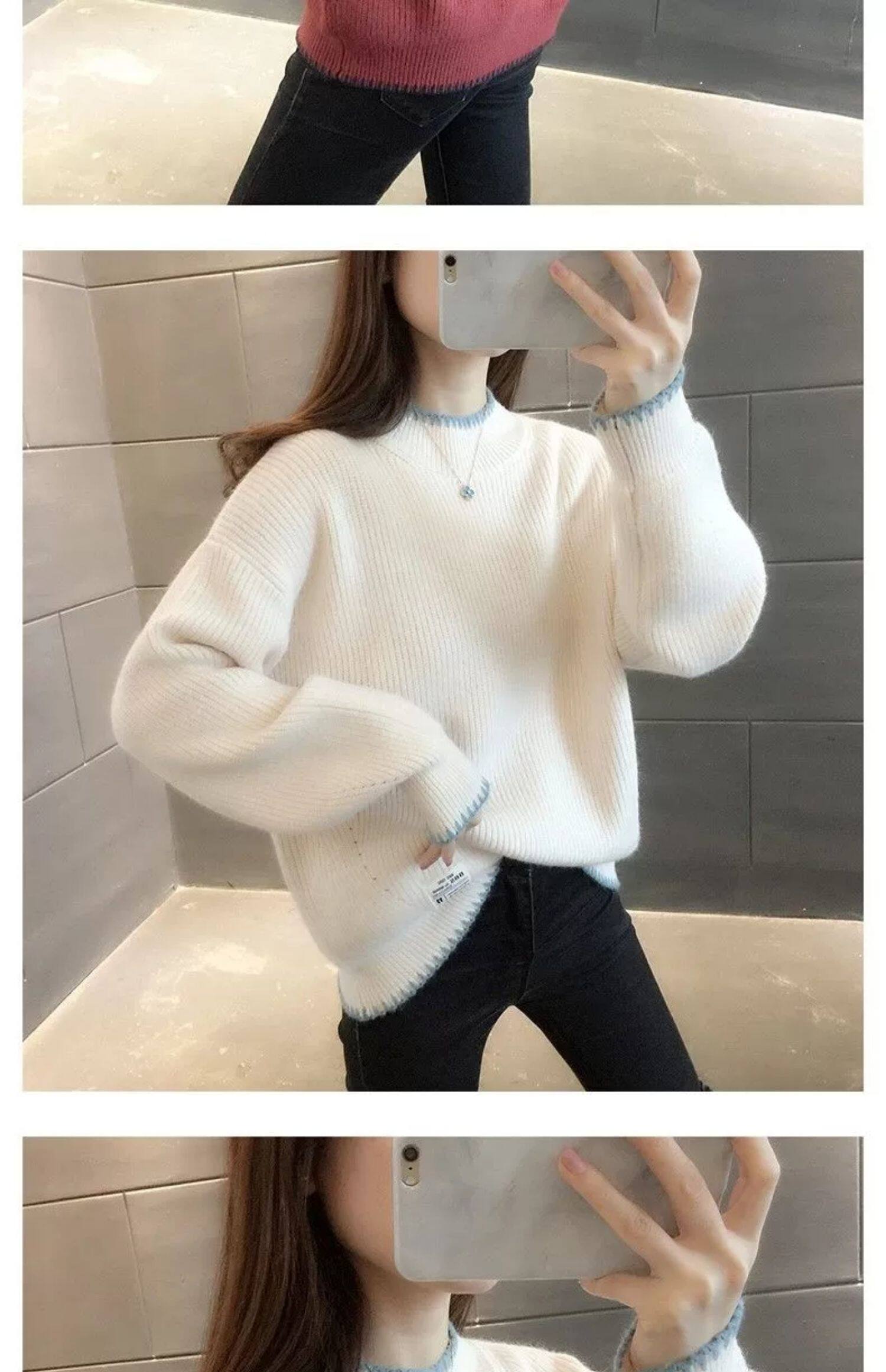 半高領毛衣女寬鬆外穿2025新款秋冬打底衫短款小個子針織衫上衣厚