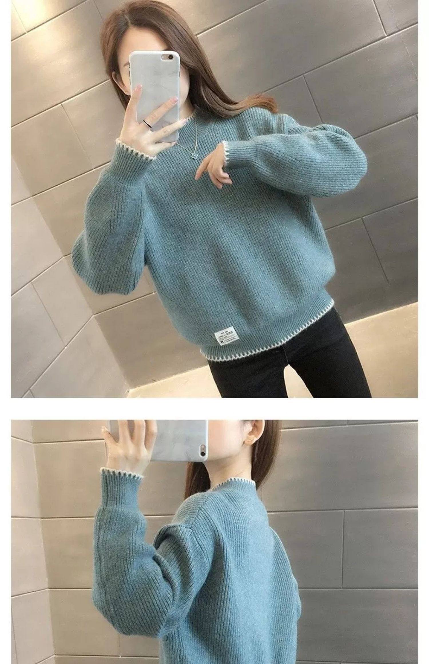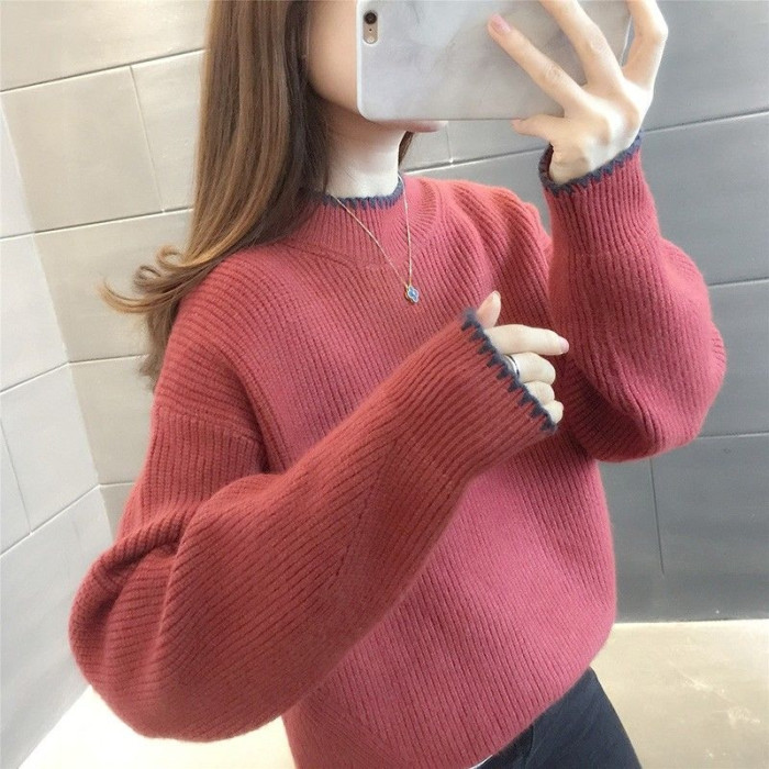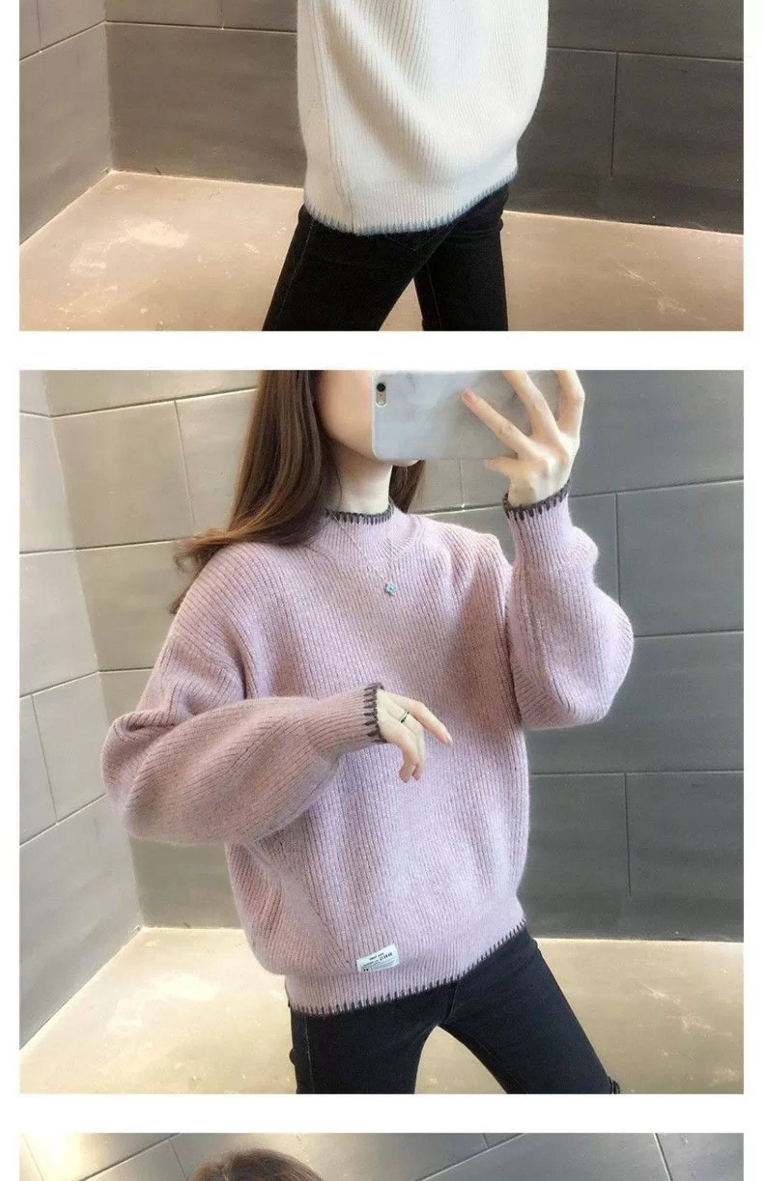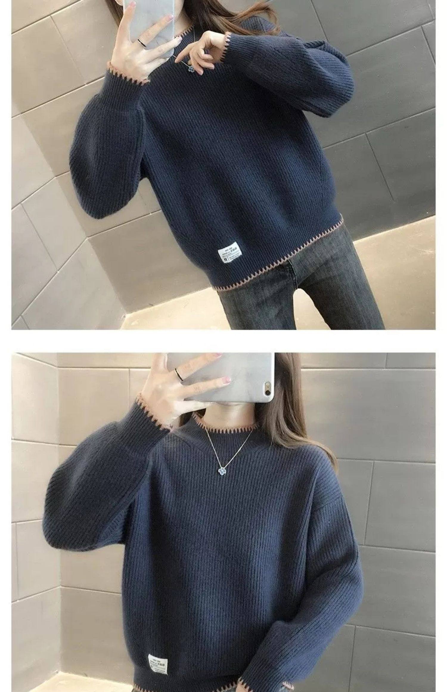 半高領毛衣女寬鬆外穿2025新款秋冬打底衫短款小個子針織衫上衣厚