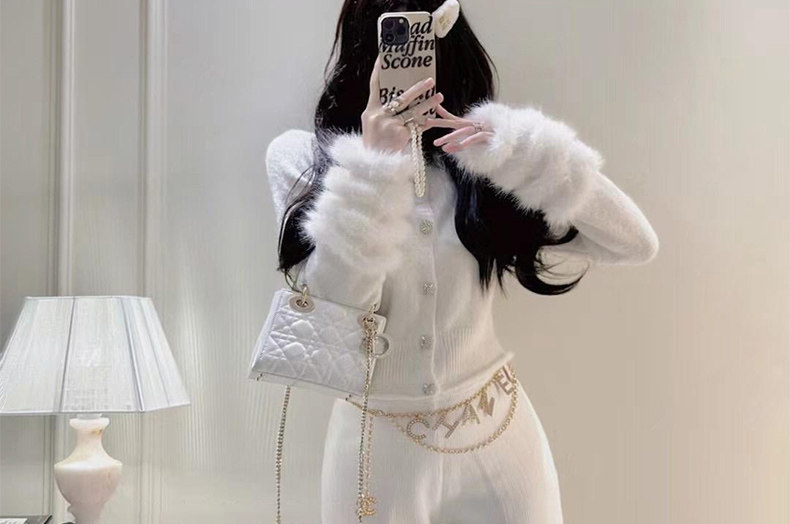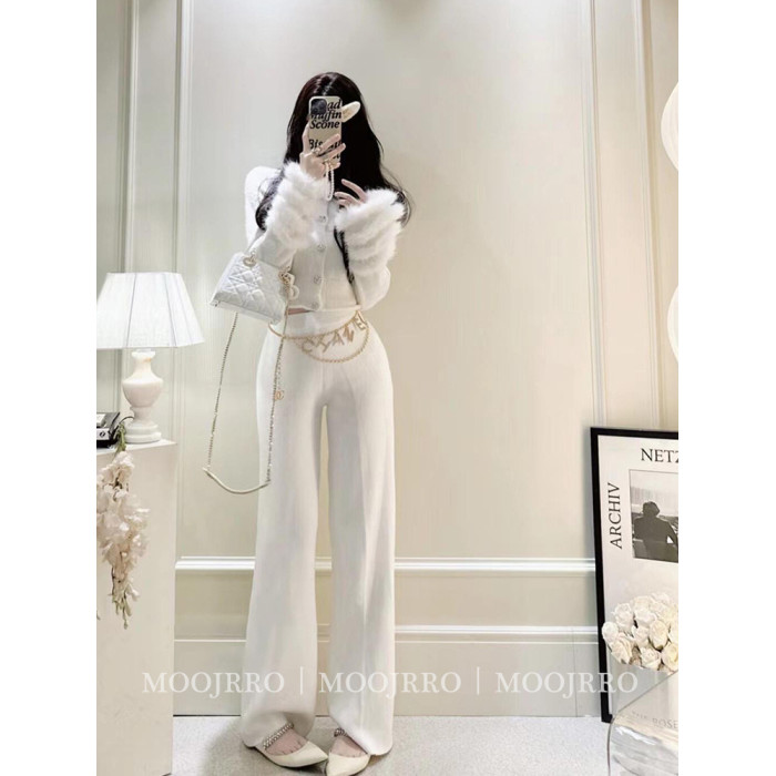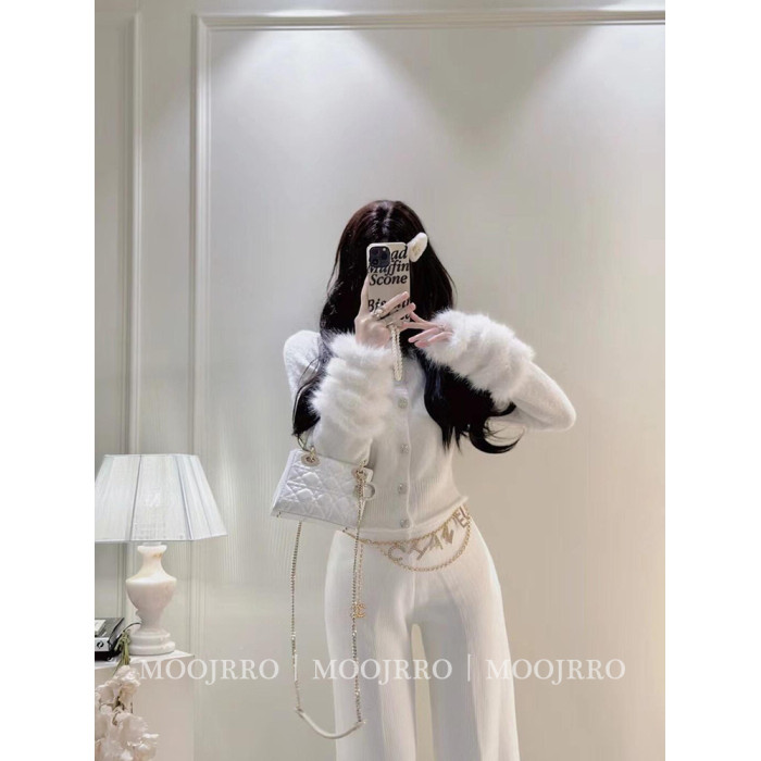 法式白色小香風毛衣開衫女秋季修身高級感氣質名媛短款針織衫外套