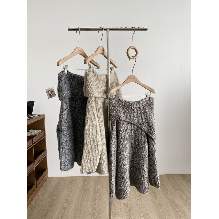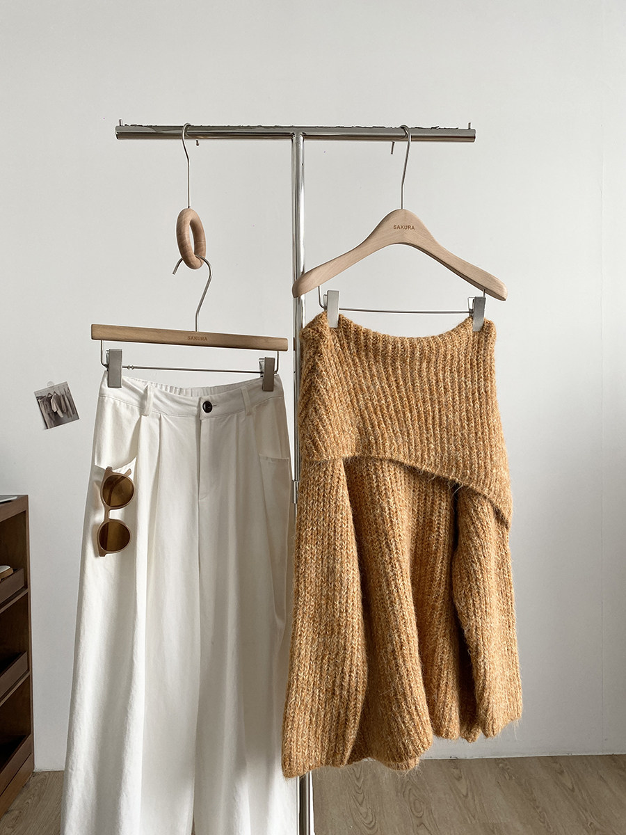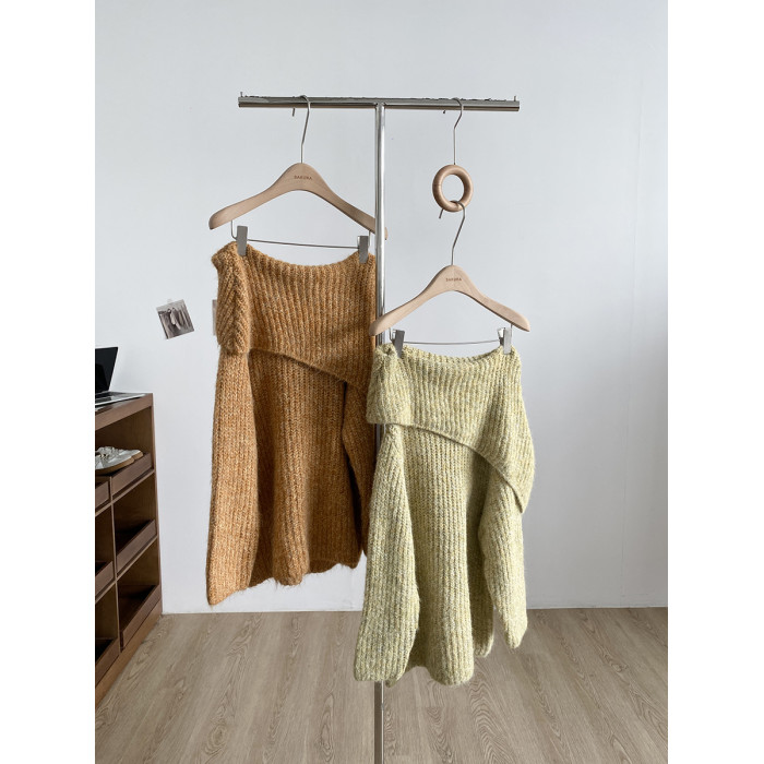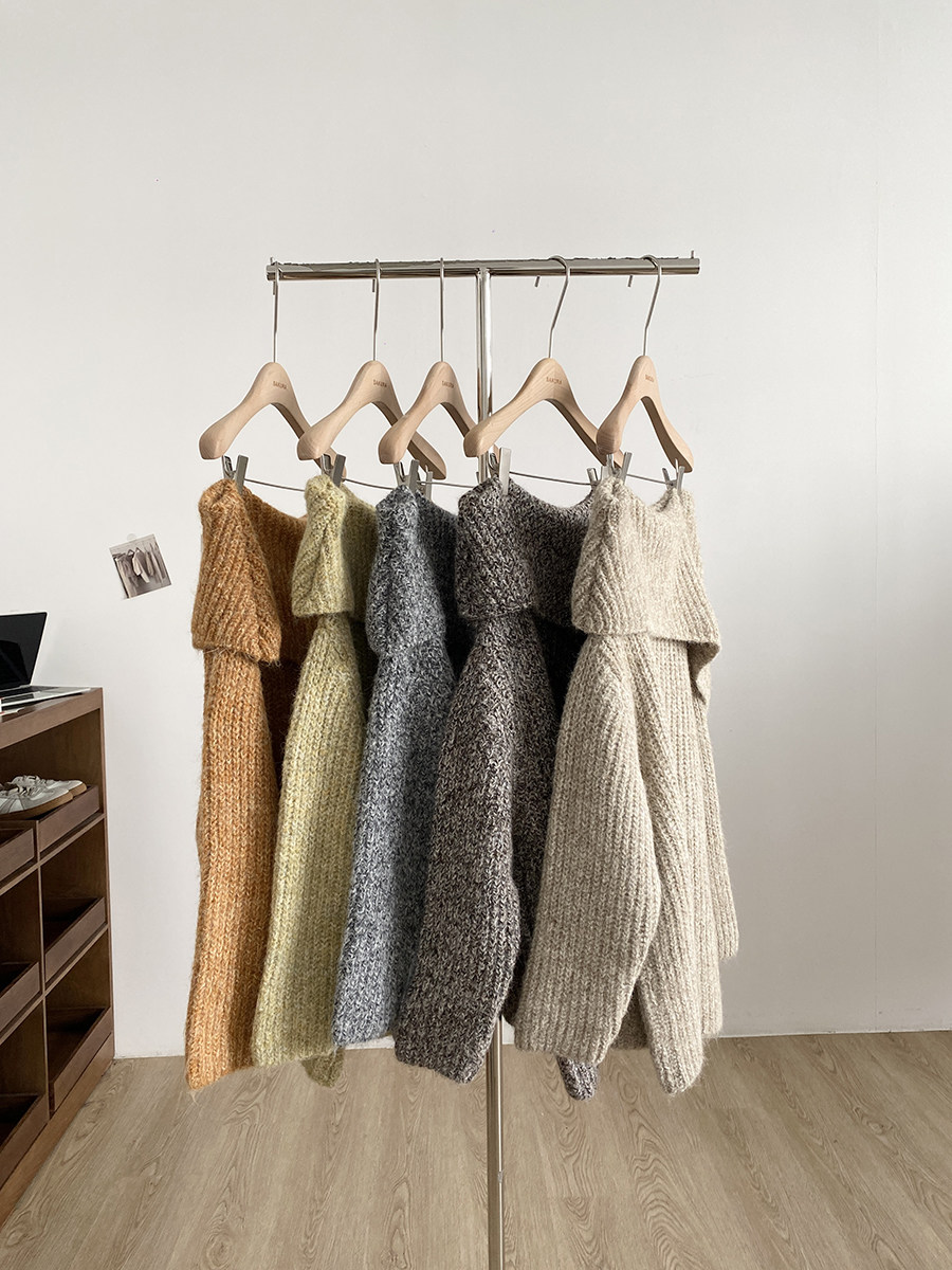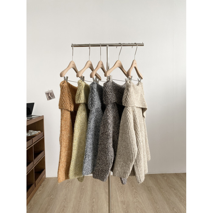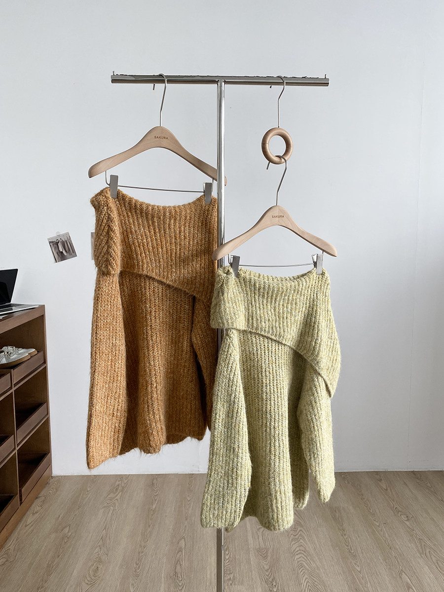 2025冬季新款韓系溫柔一字肩針織毛衣女寬松顯瘦減齡軟糯露肩上衣
