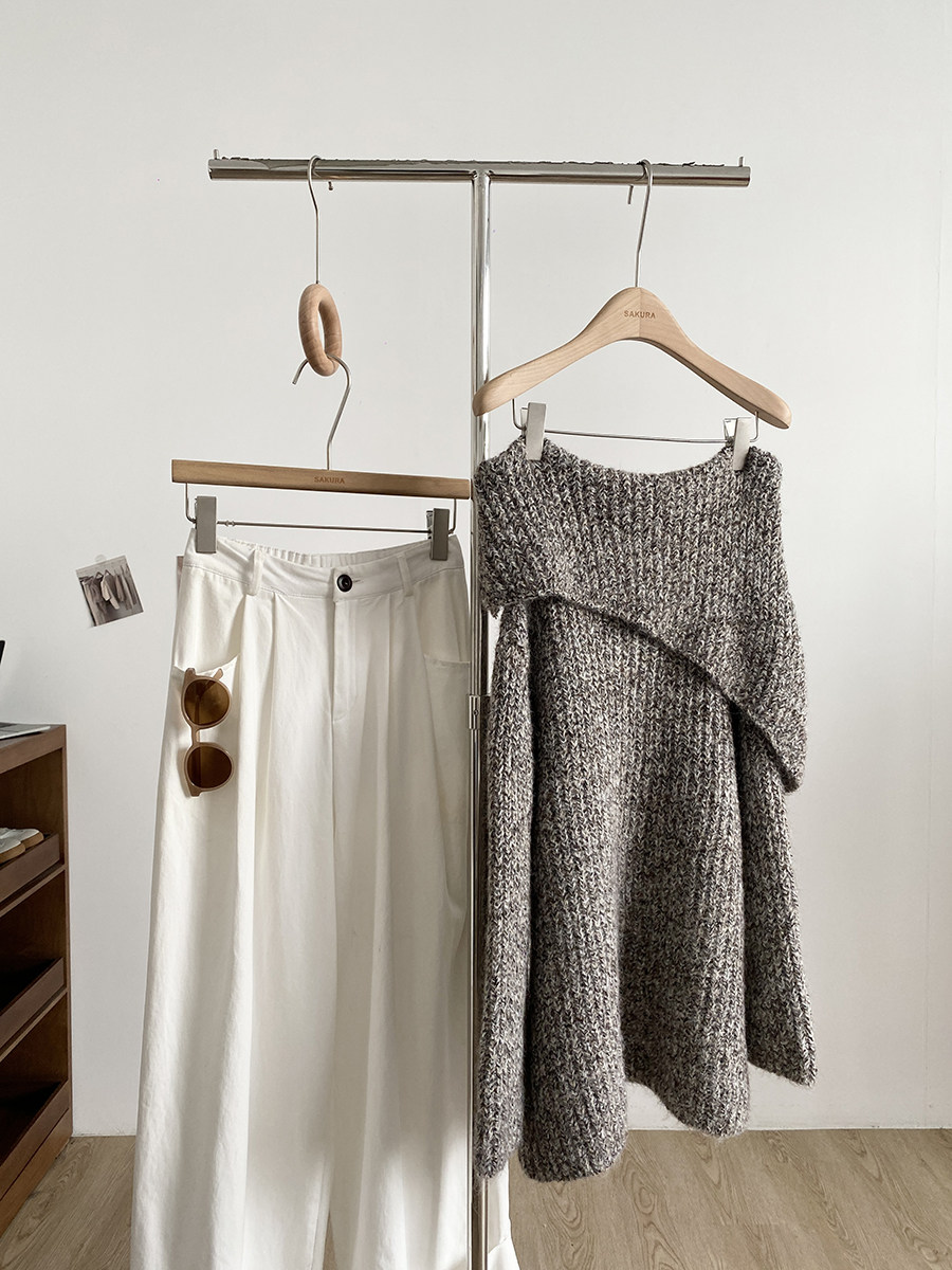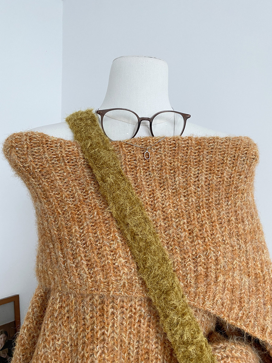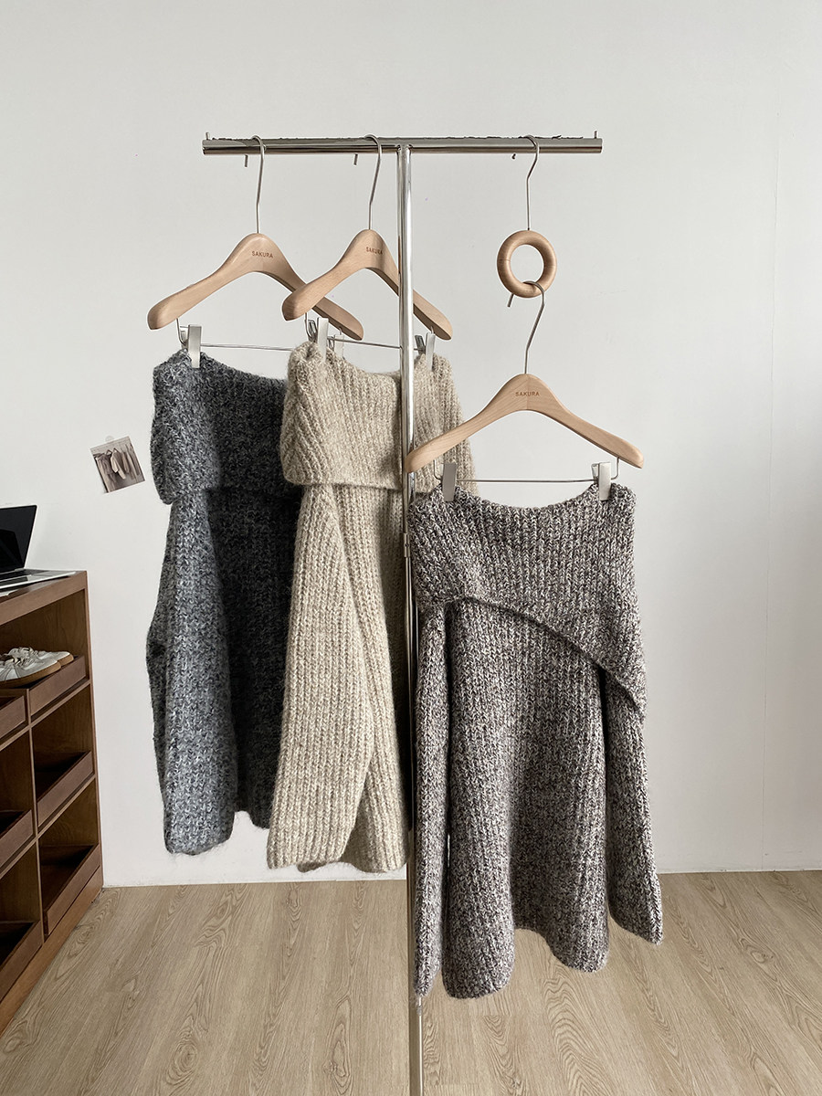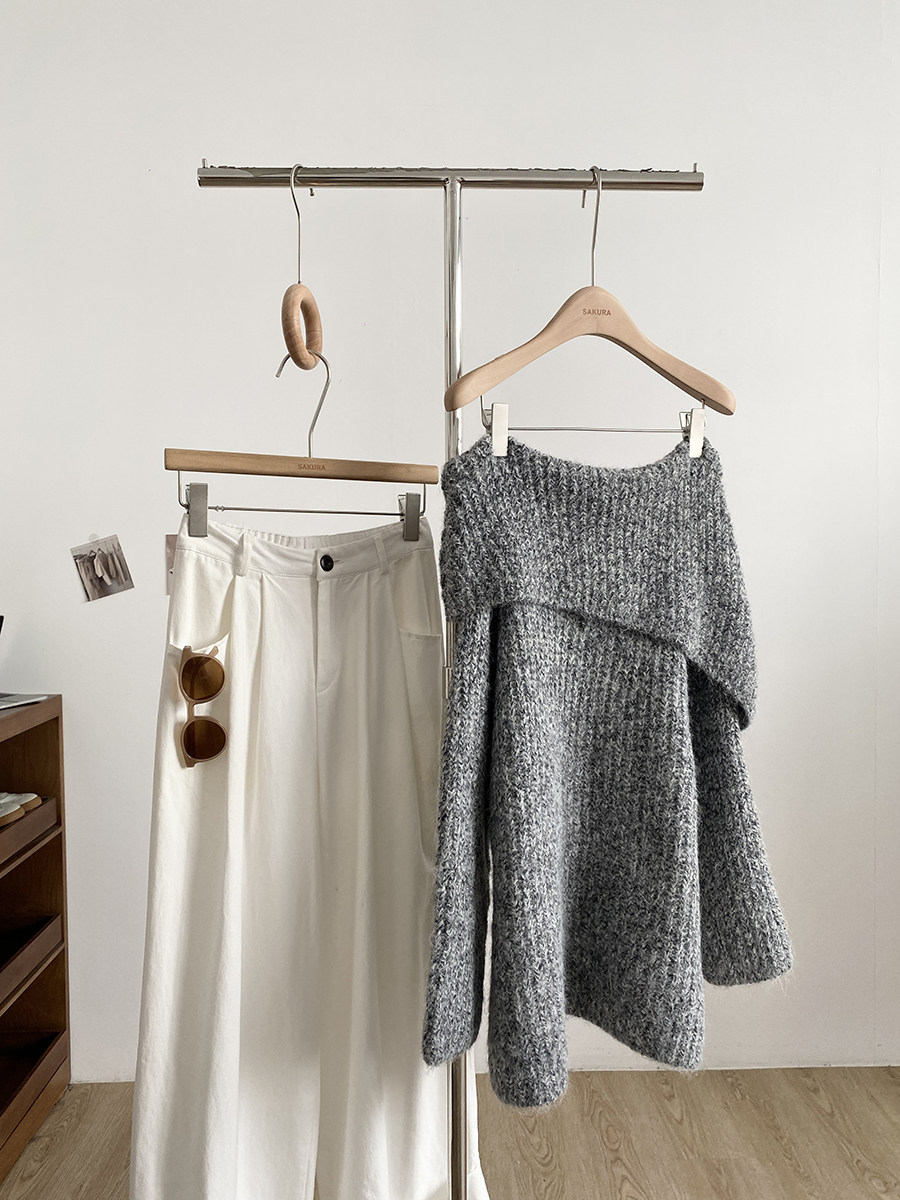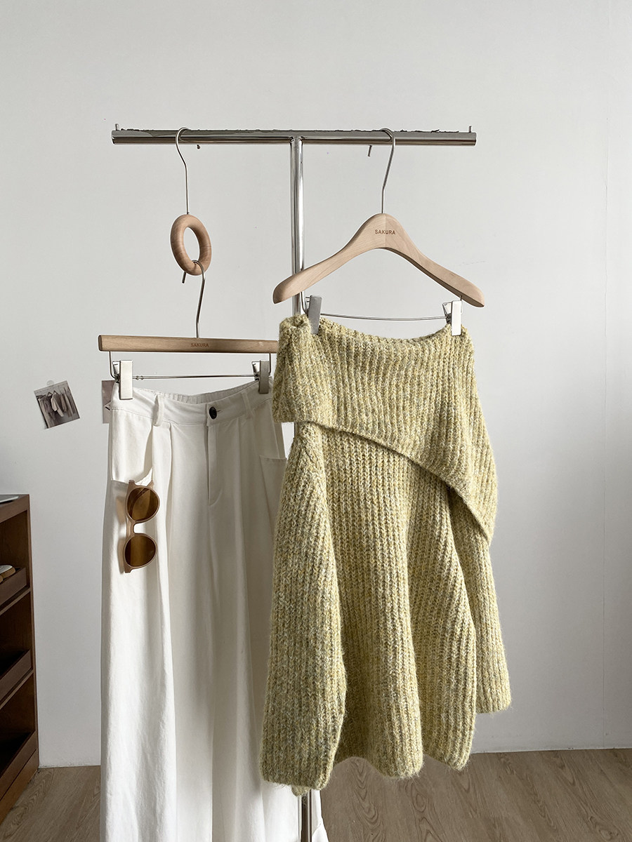 2025冬季新款韓系溫柔一字肩針織毛衣女寬松顯瘦減齡軟糯露肩上衣