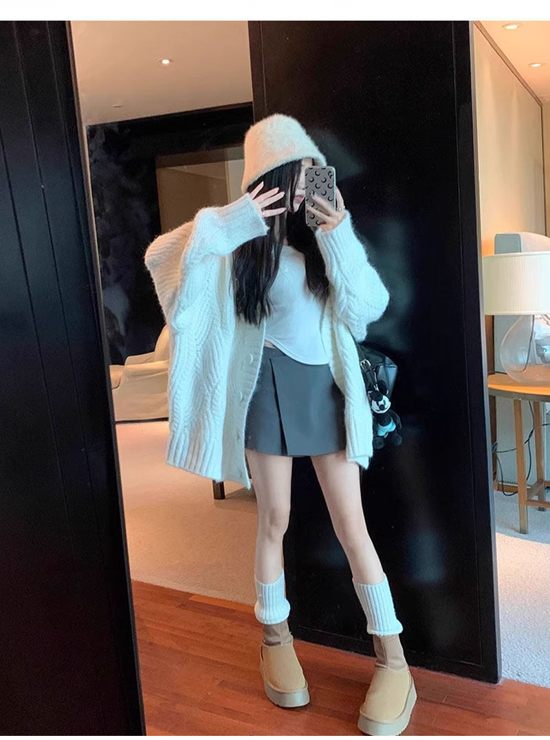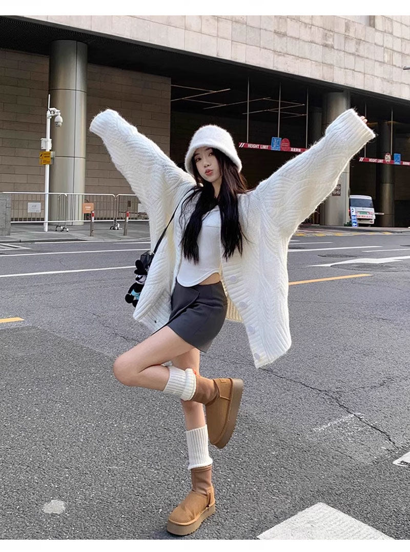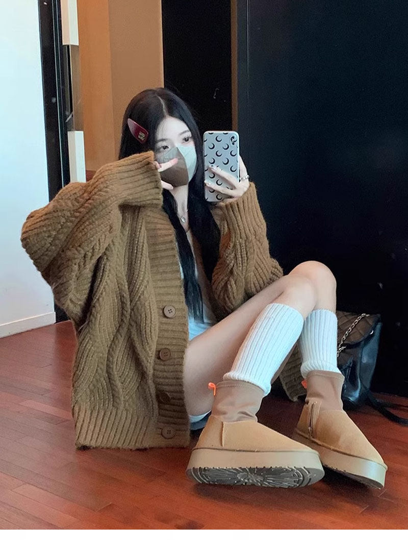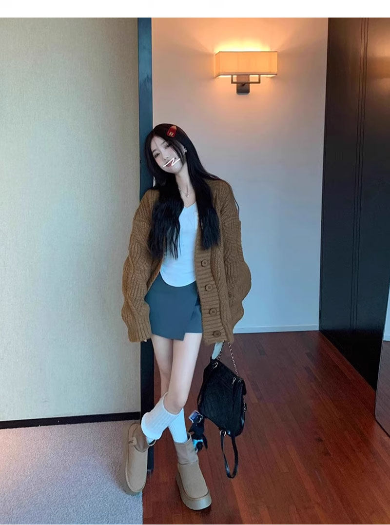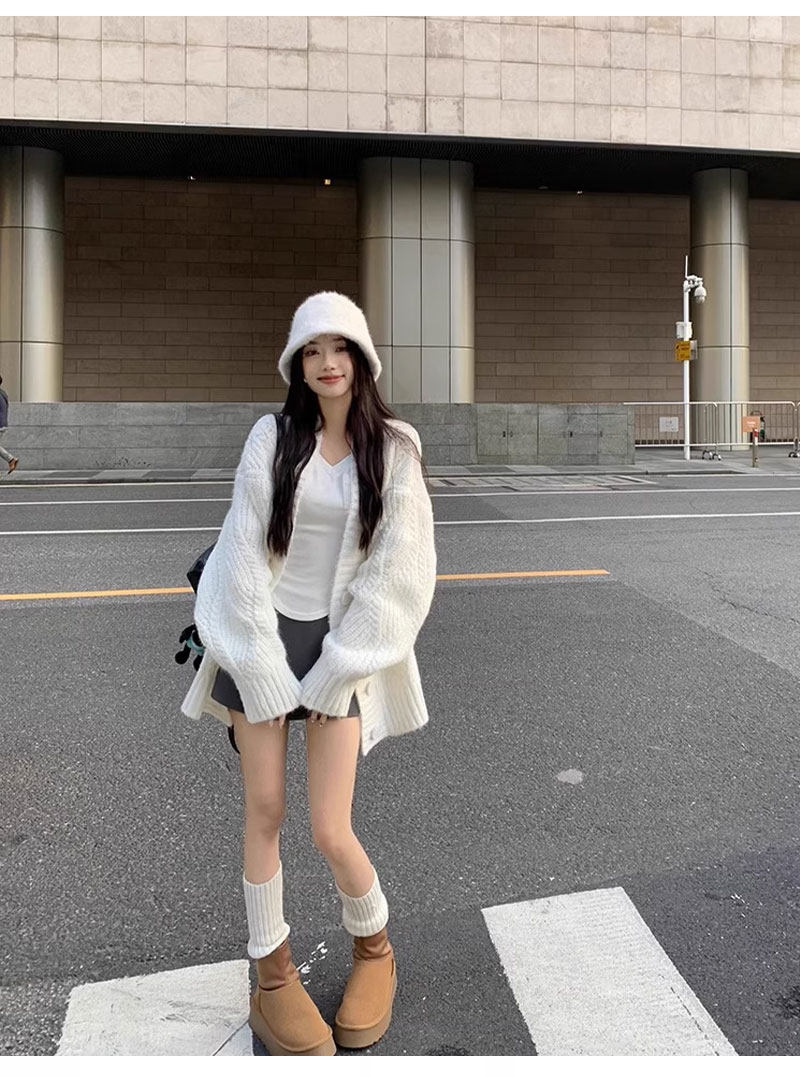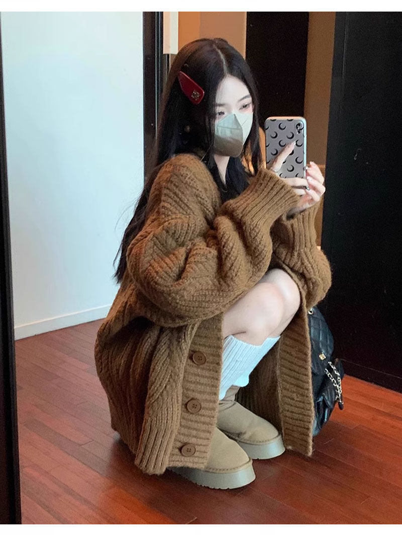 寬松慵懶風加厚麻花毛衣外套女秋冬小個子外穿針織開衫中長款上衣