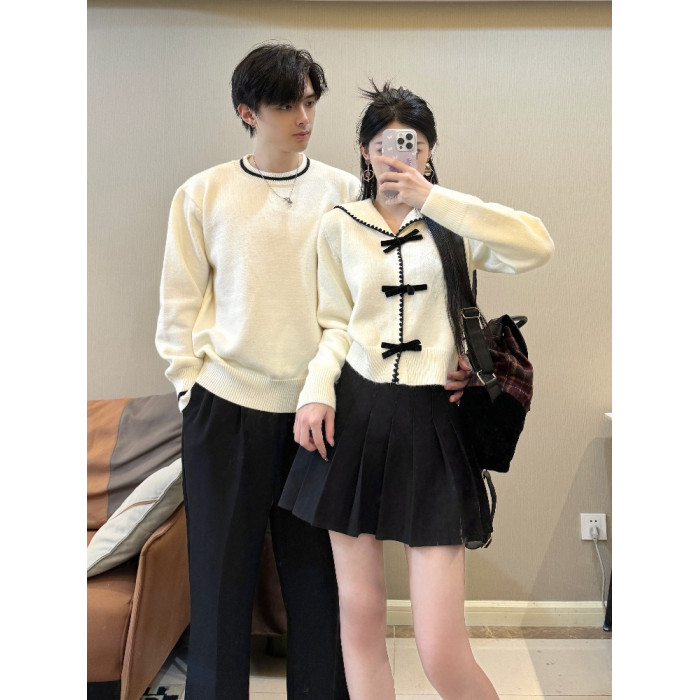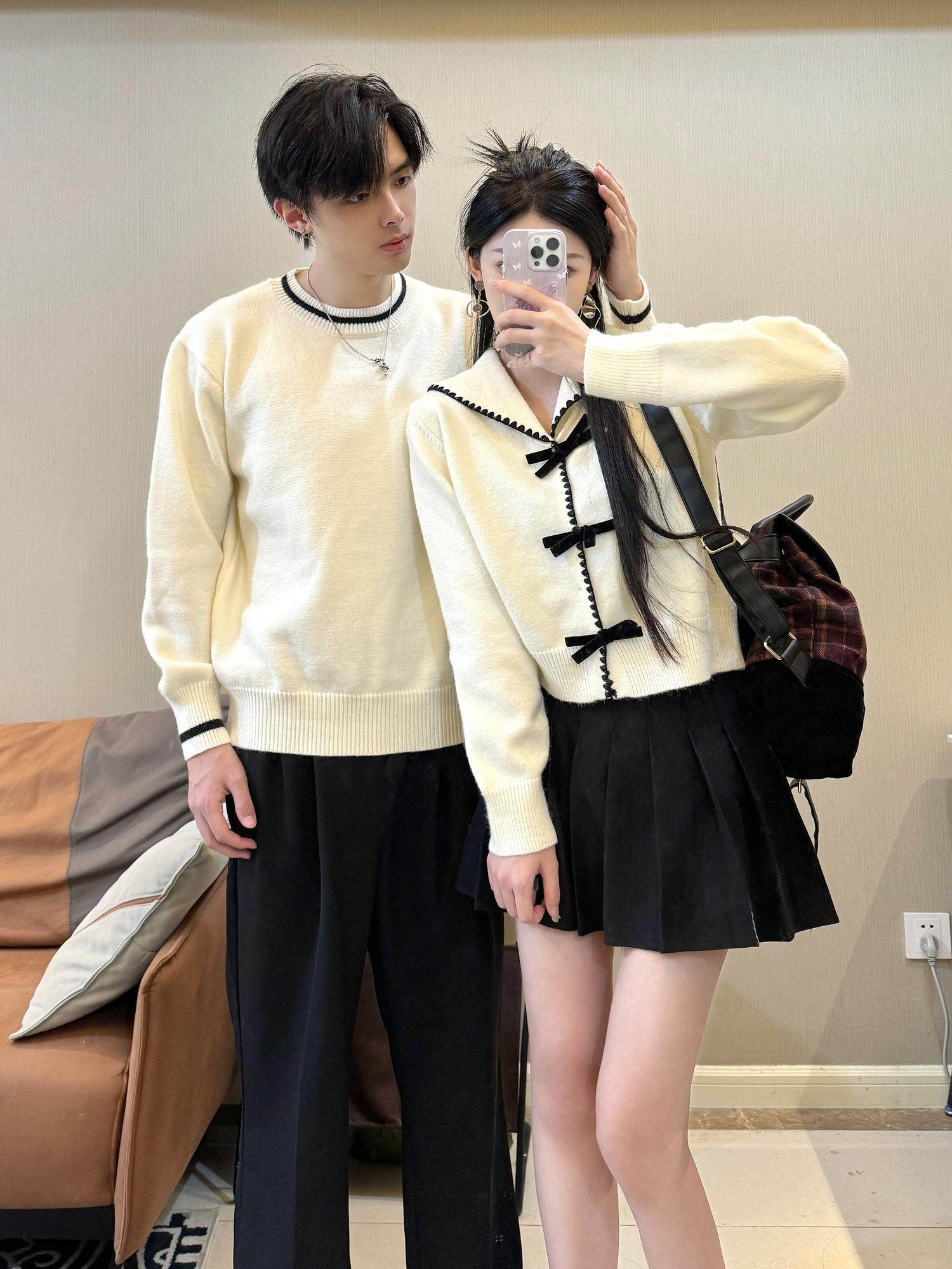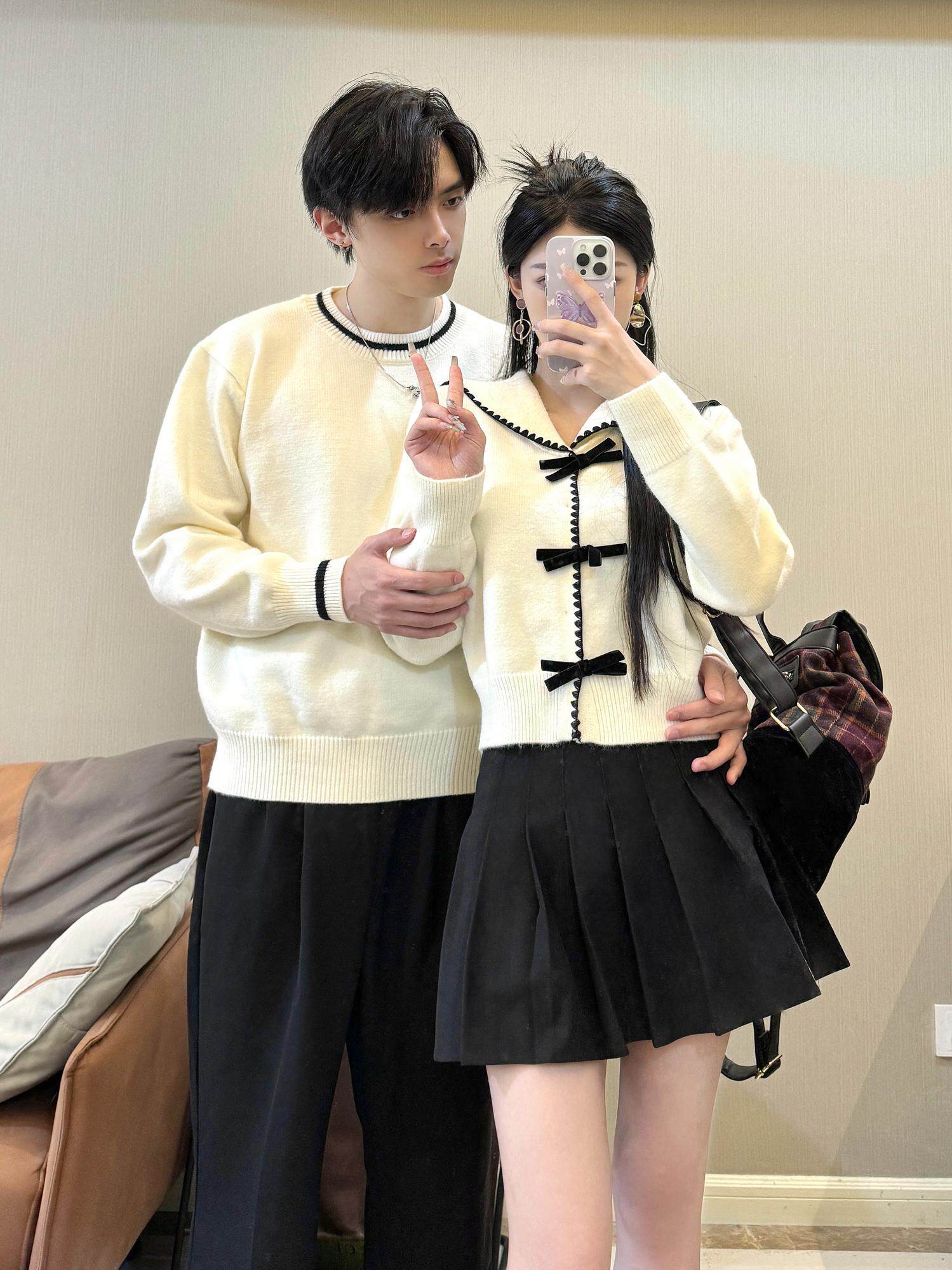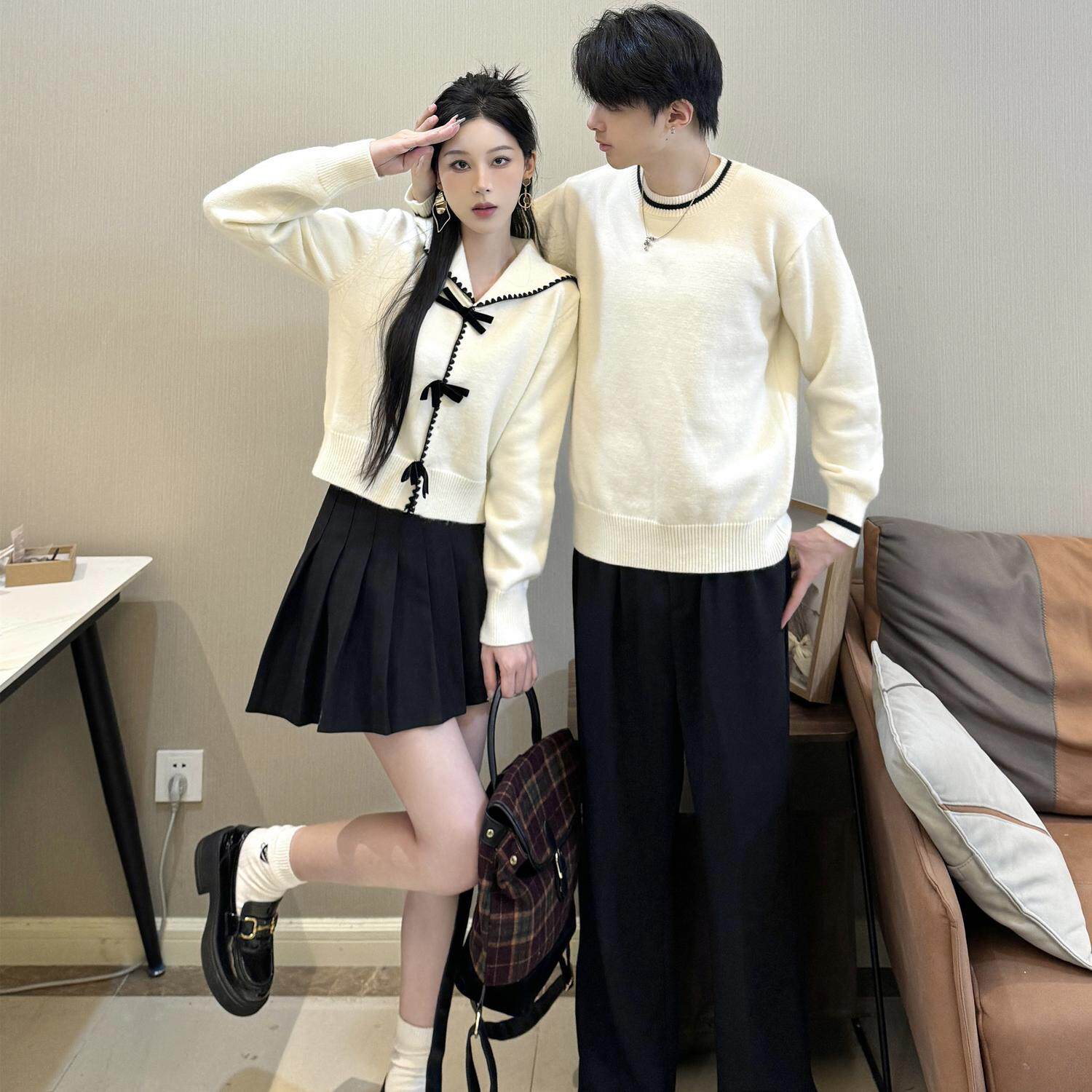 情侶裝秋冬季2024新款韓版慵懶海軍領毛衣氣質高級感開衫針織外套
