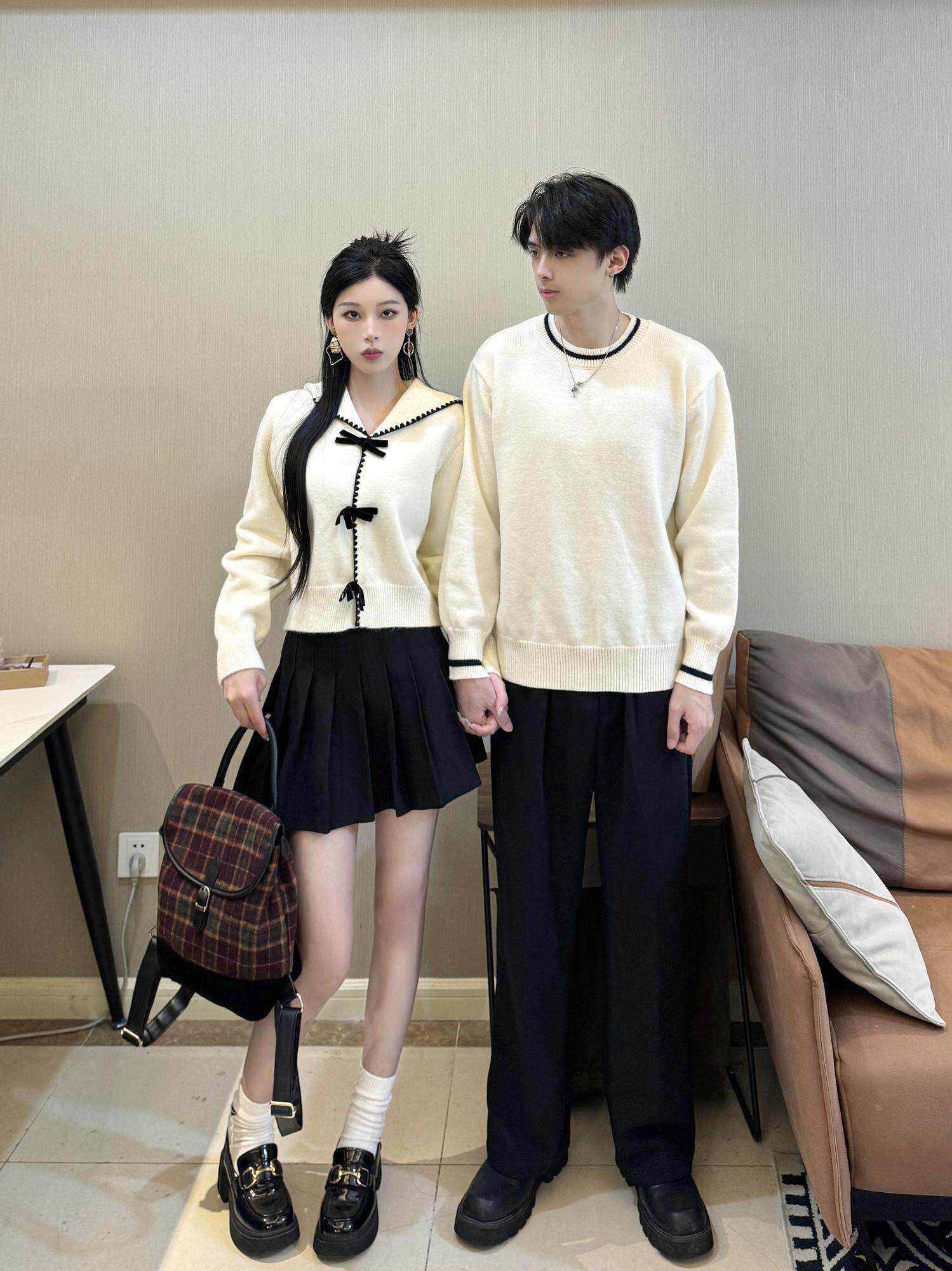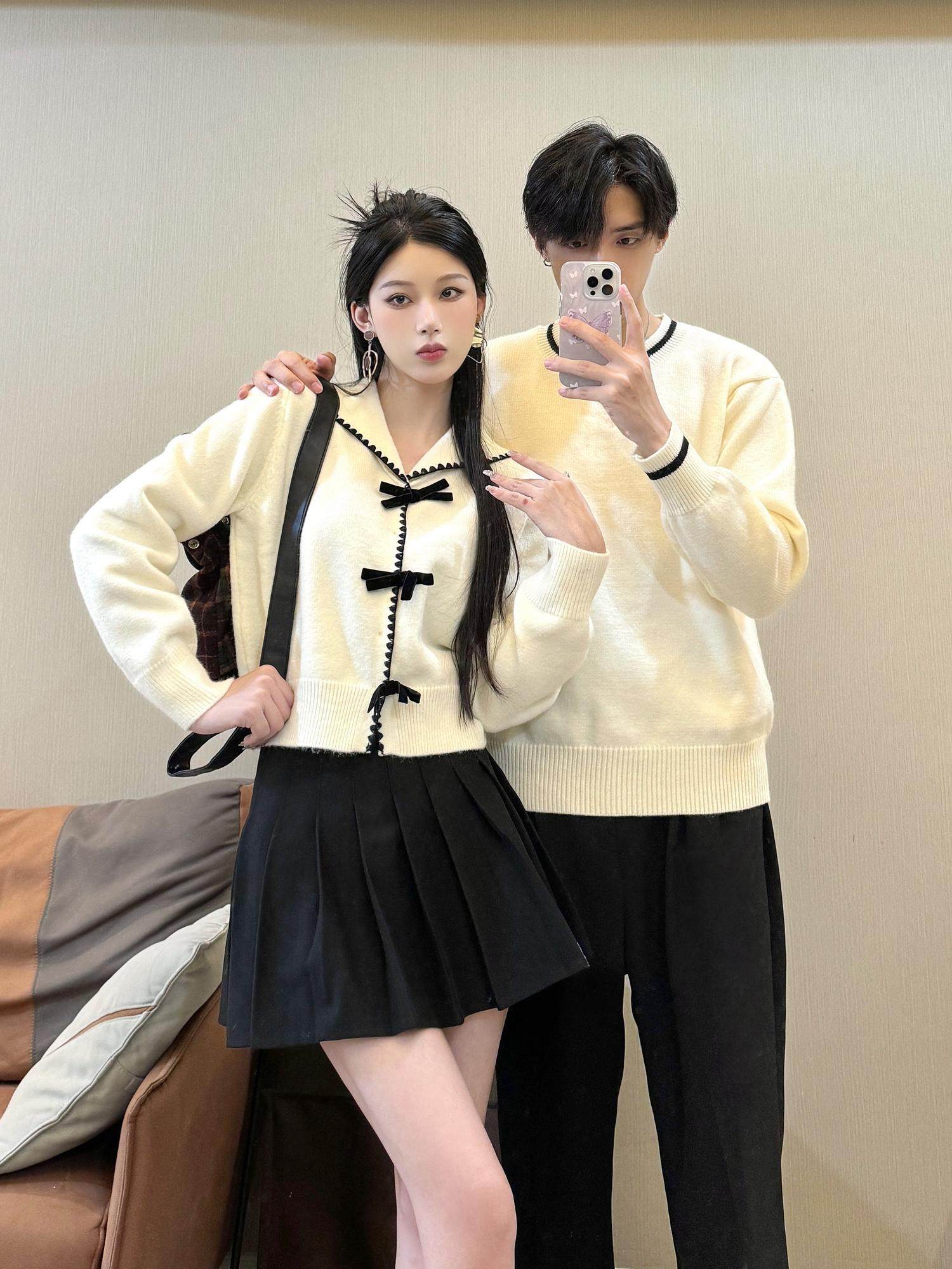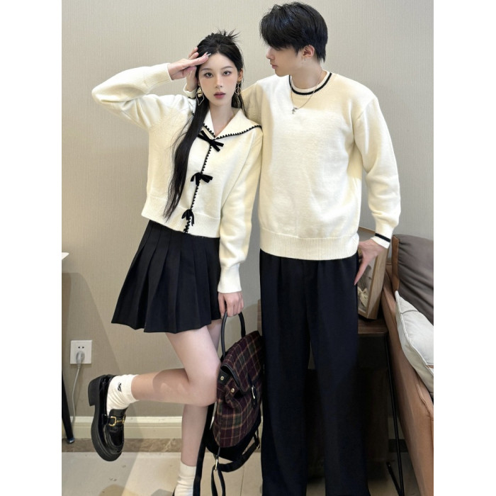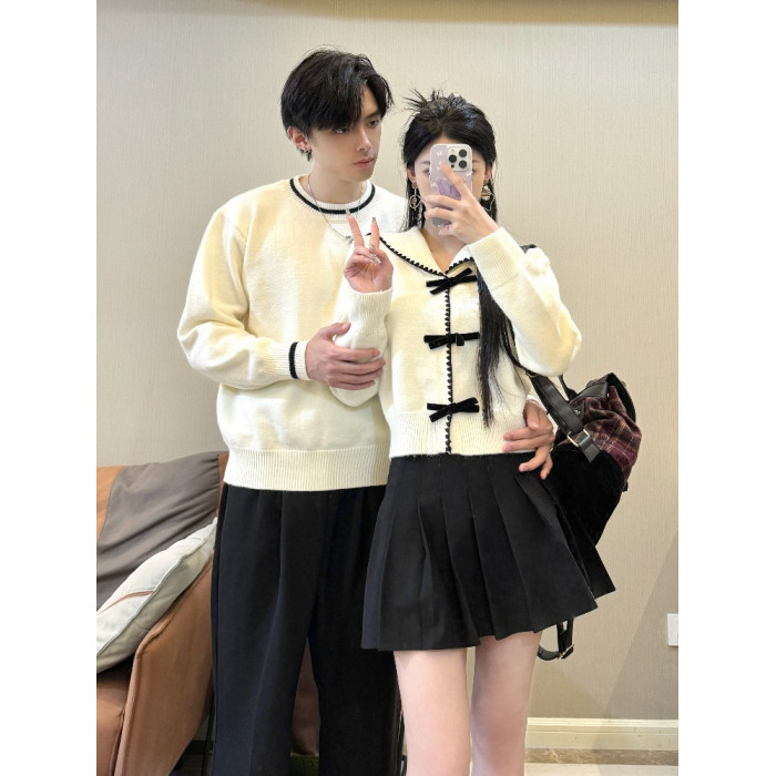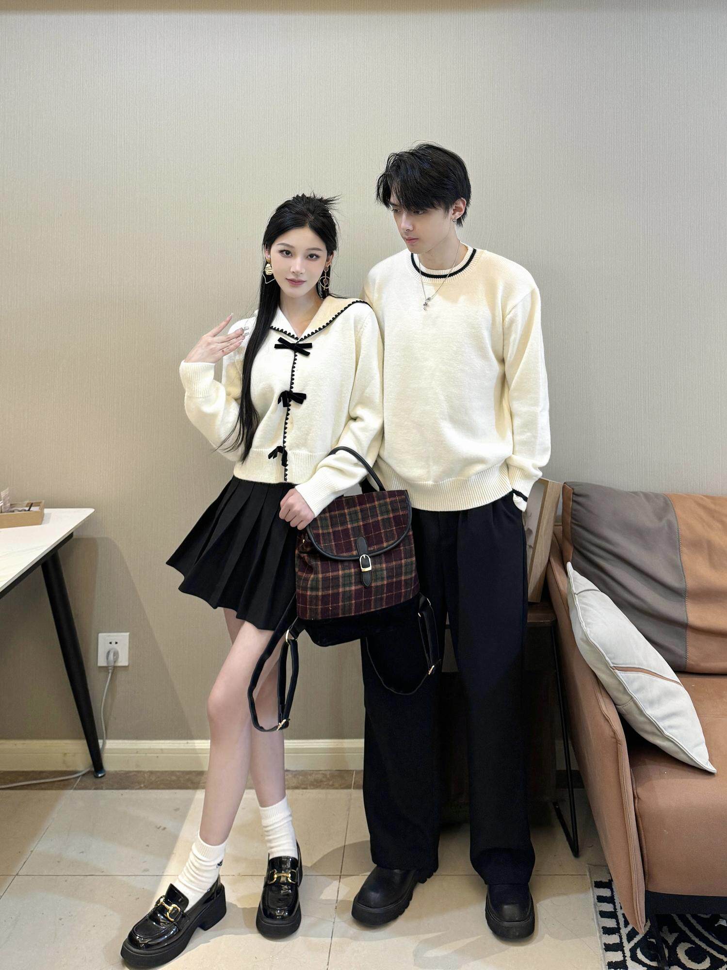 情侶裝秋冬季2024新款韓版慵懶海軍領毛衣氣質高級感開衫針織外套