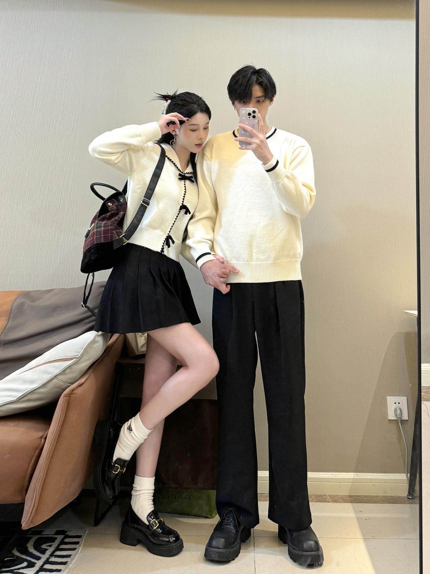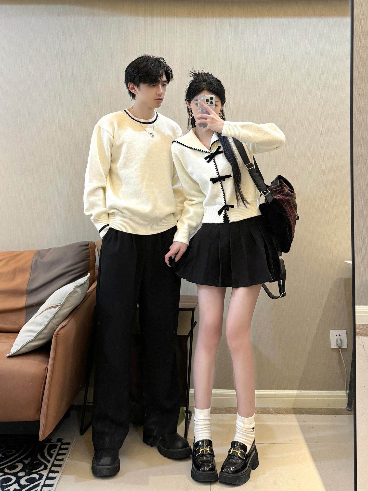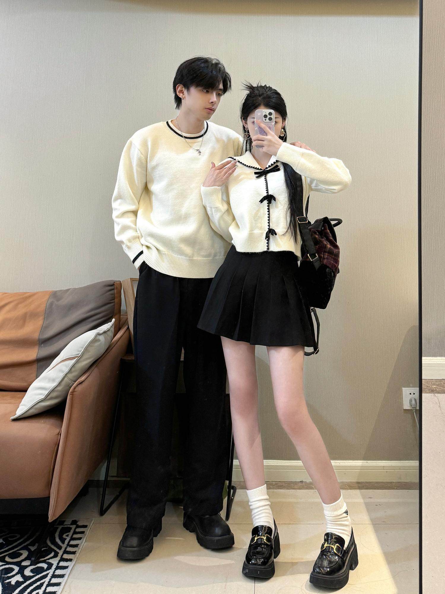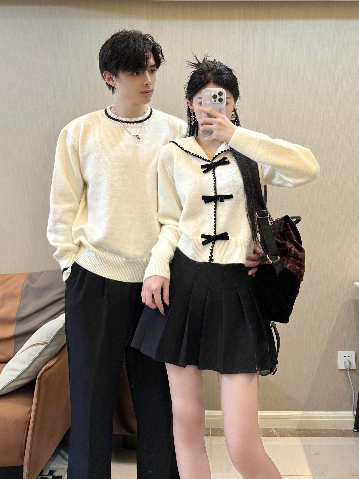 情侶裝秋冬季2024新款韓版慵懶海軍領毛衣氣質高級感開衫針織外套