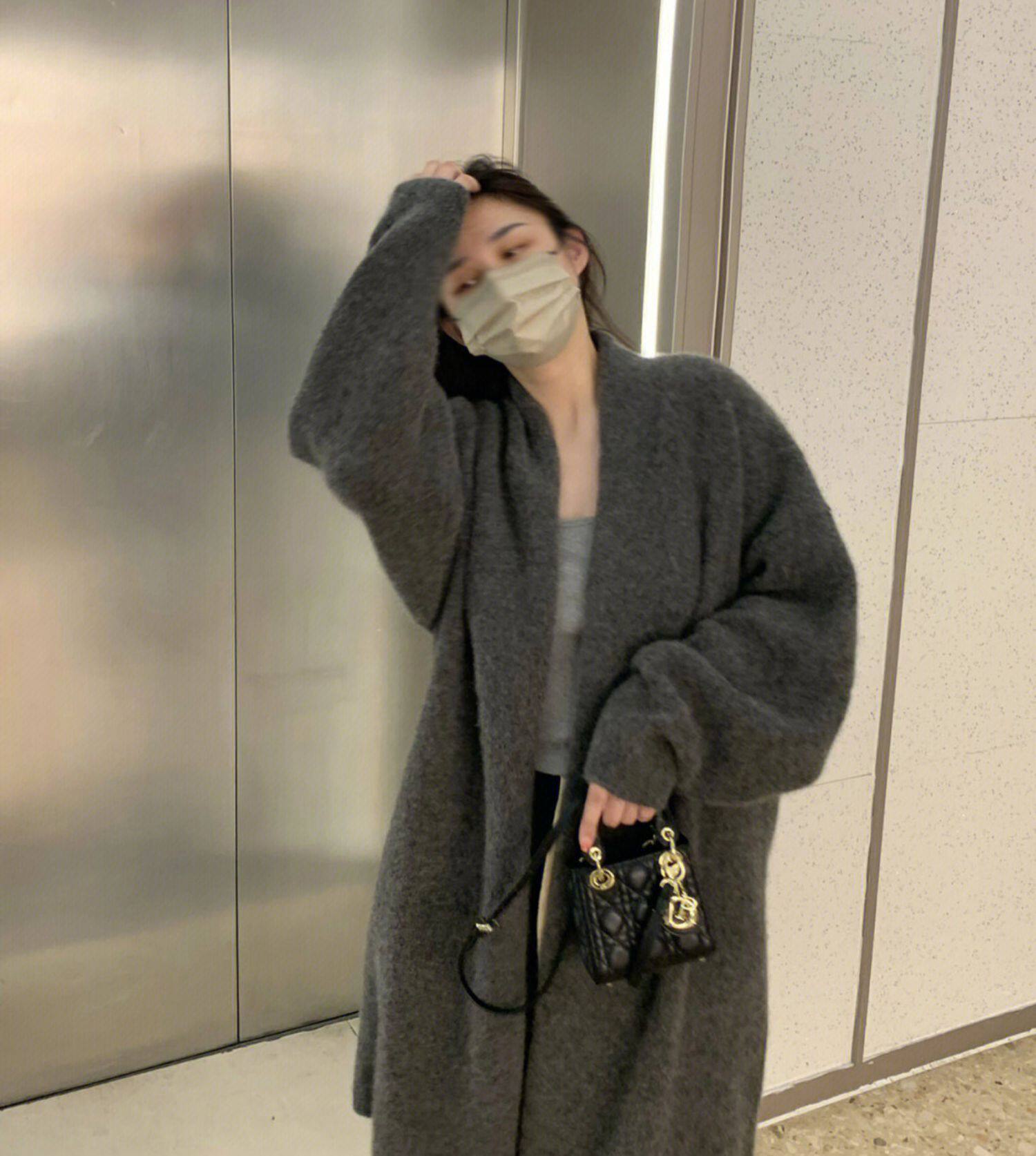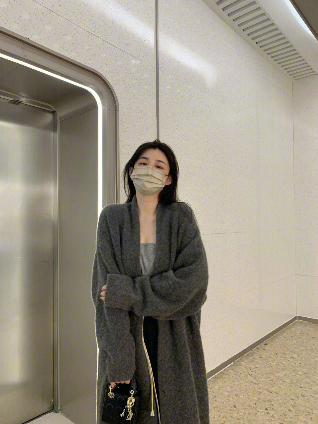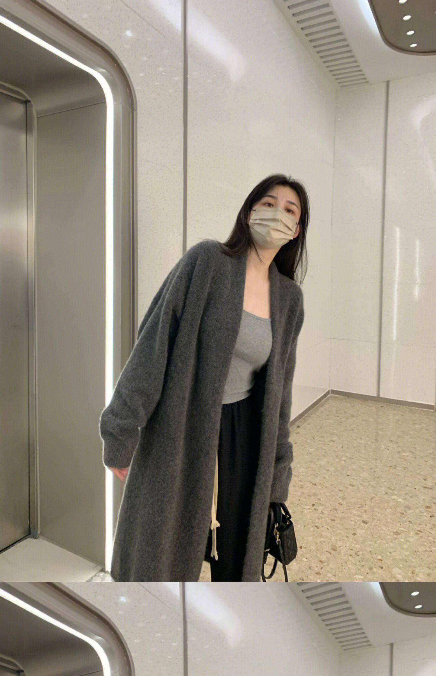灰色中長款過膝毛衣外套女春秋冬冬季慵懶風加厚羊絨針織開衫大衣