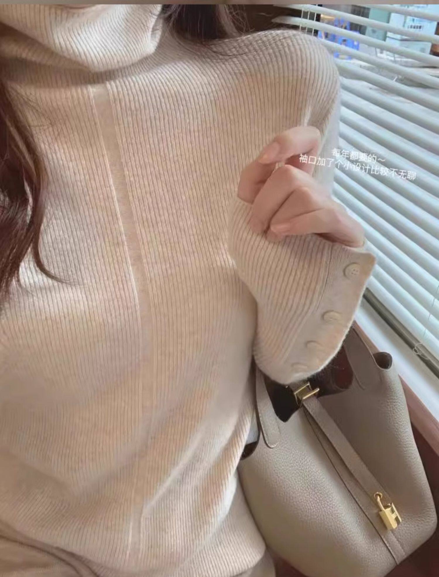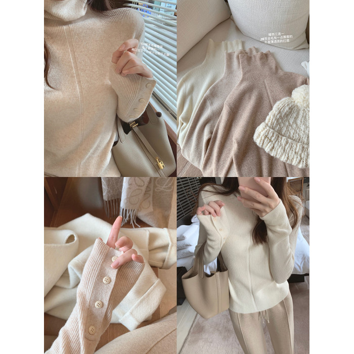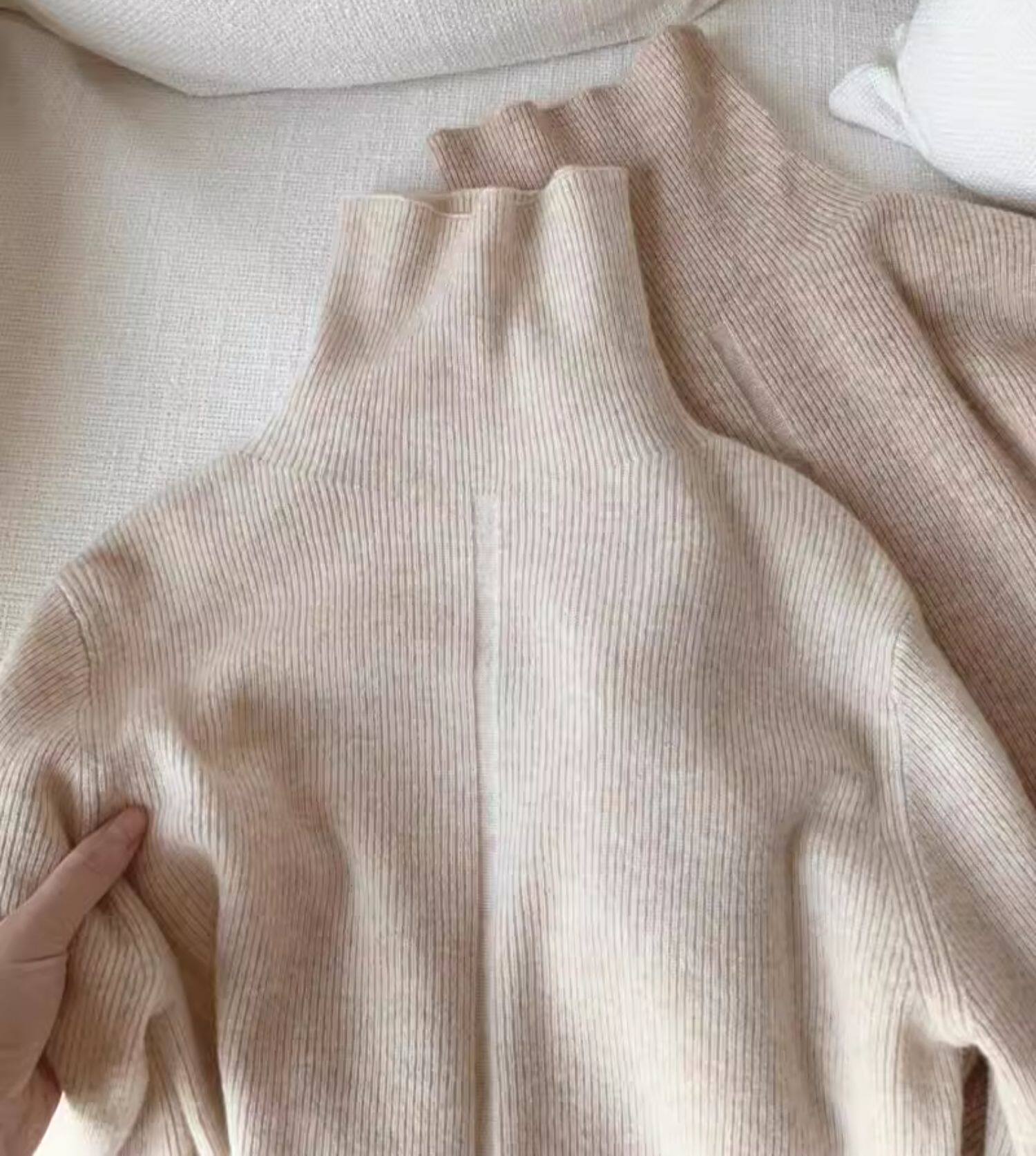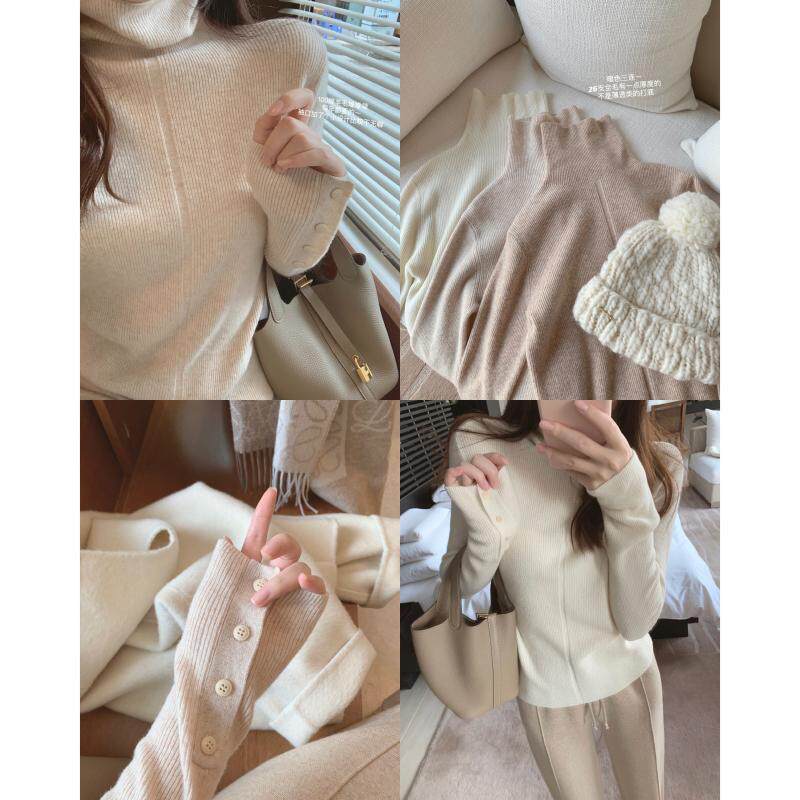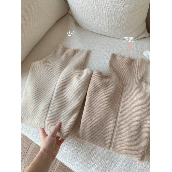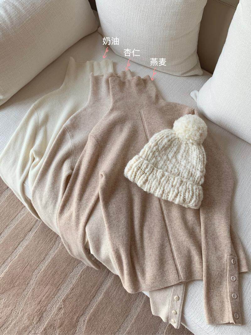 燕麥色高領毛衣女秋冬軟糯內搭高級感歐貨修身針織打底衫秋冬外穿