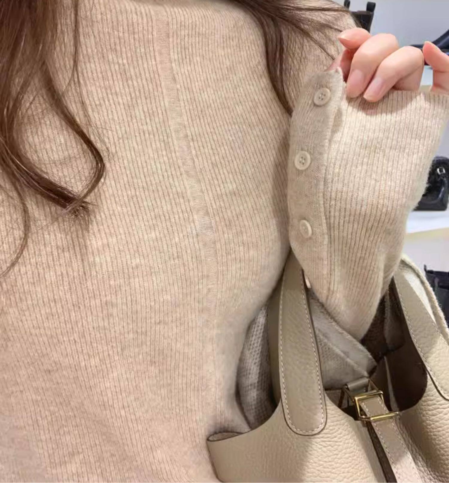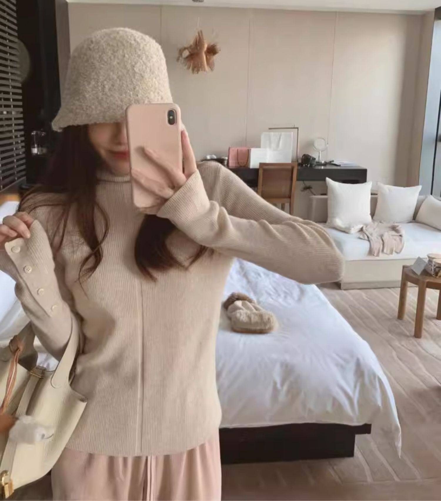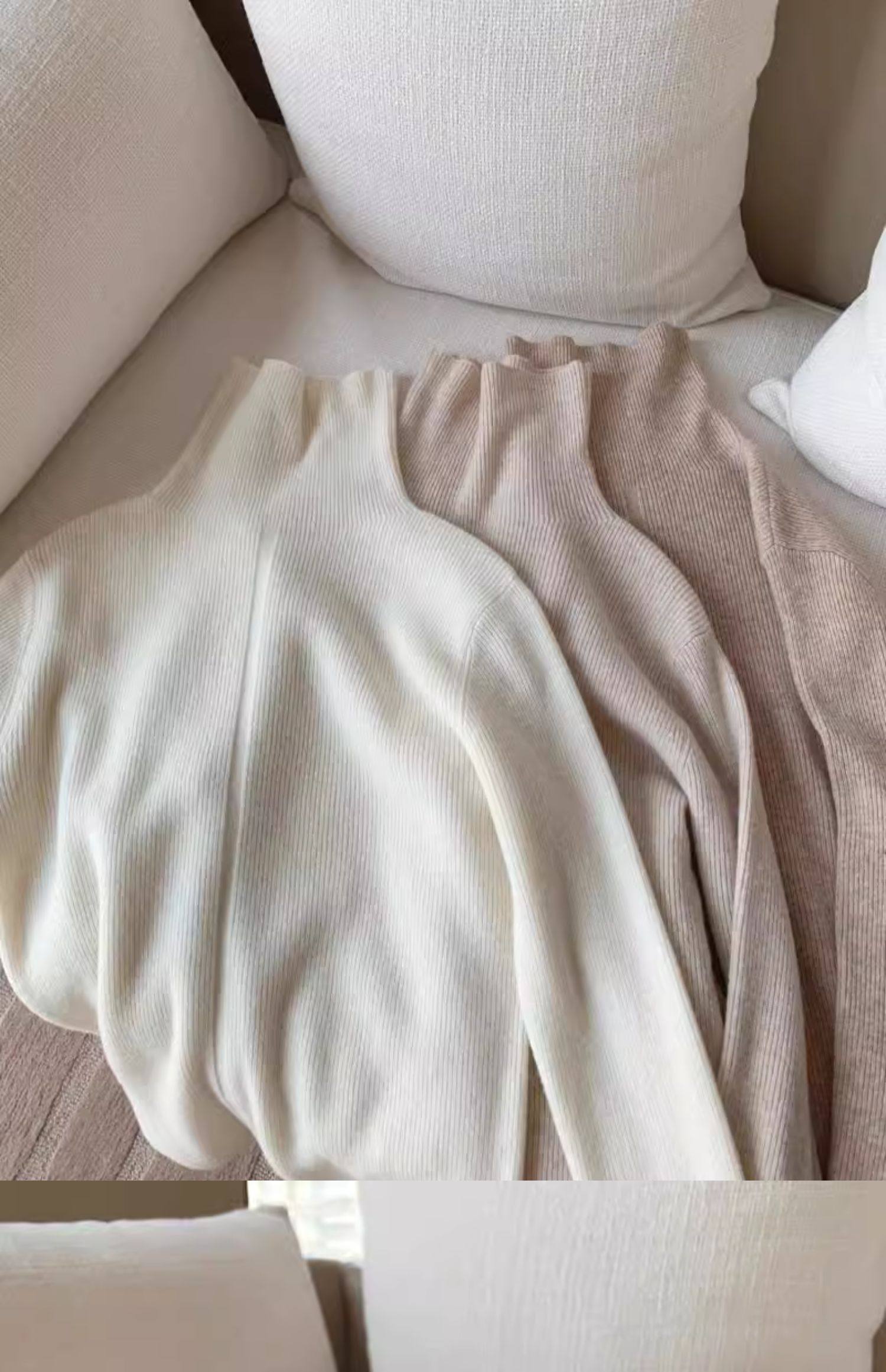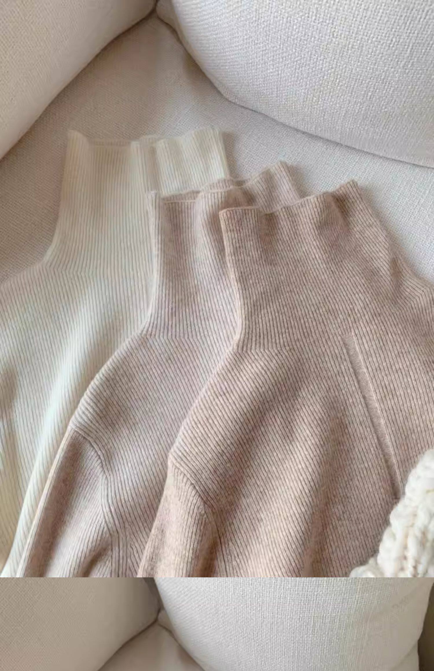 燕麥色高領毛衣女秋冬軟糯內搭高級感歐貨修身針織打底衫秋冬外穿