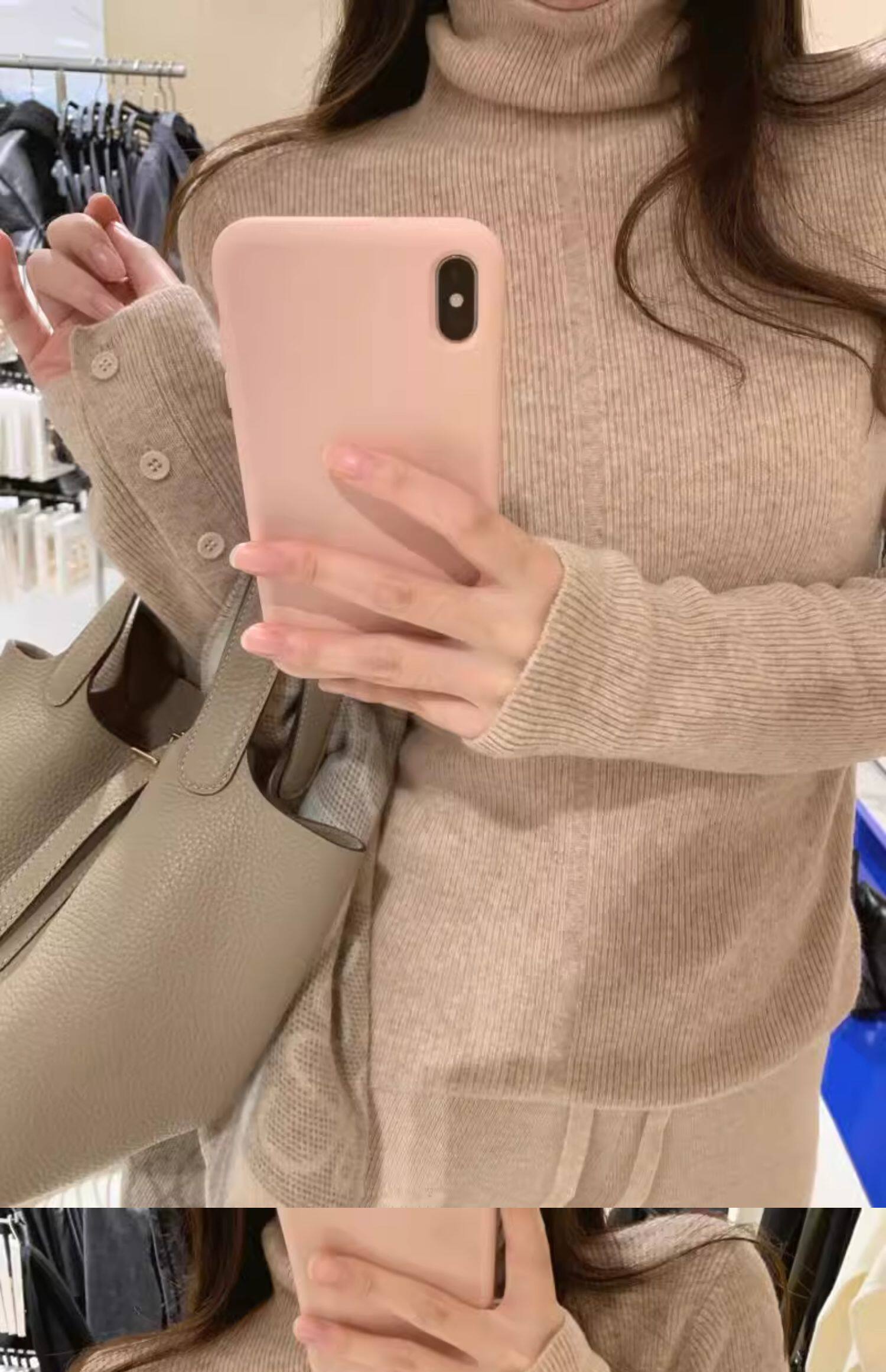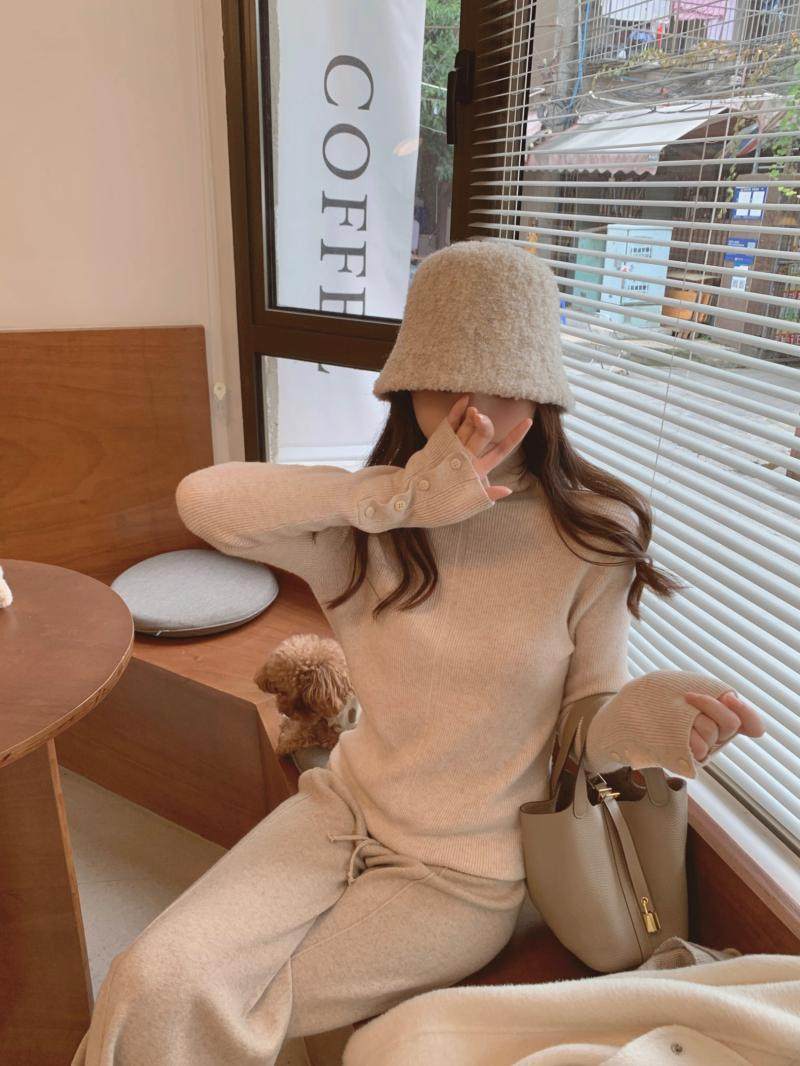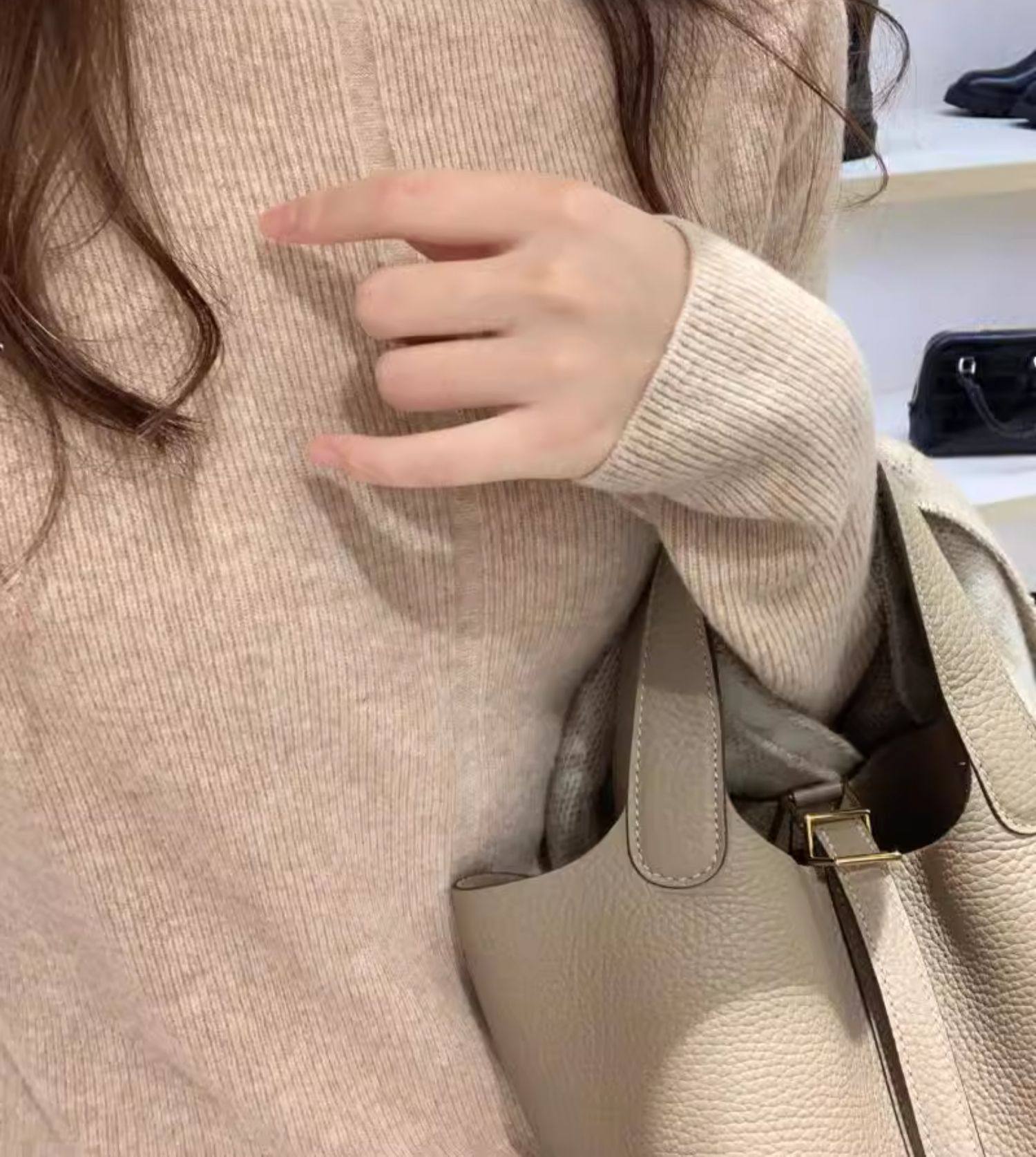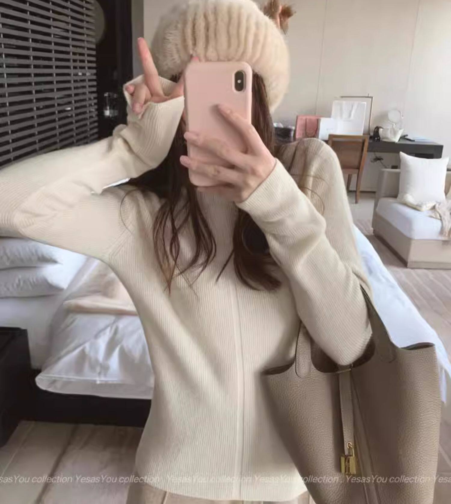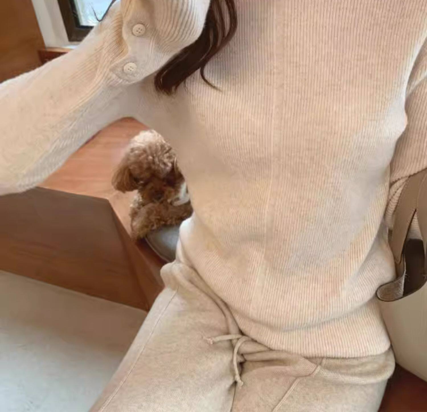 燕麥色高領毛衣女秋冬軟糯內搭高級感歐貨修身針織打底衫秋冬外穿