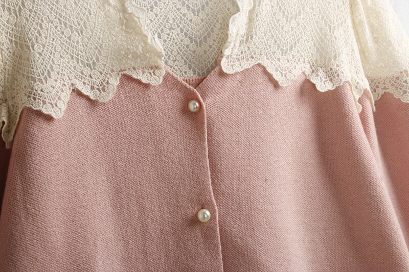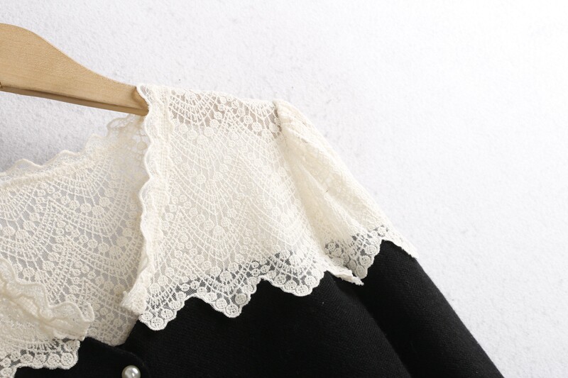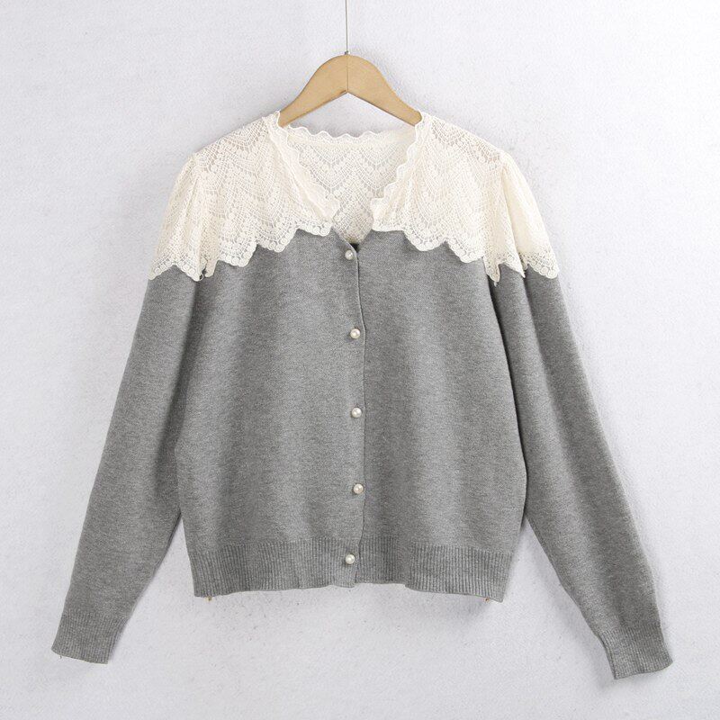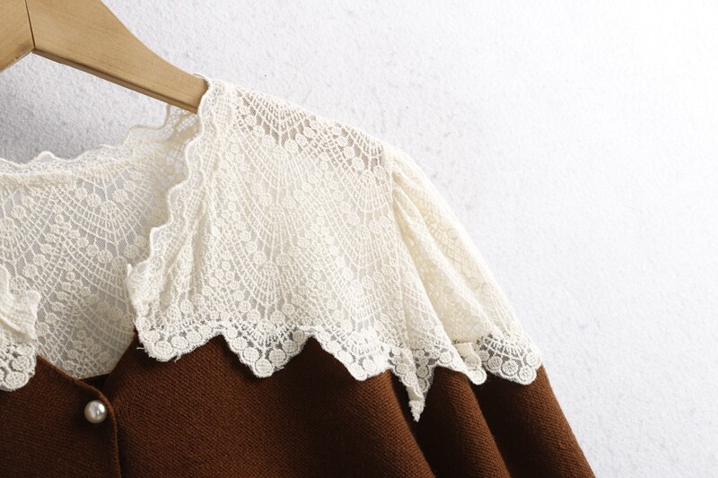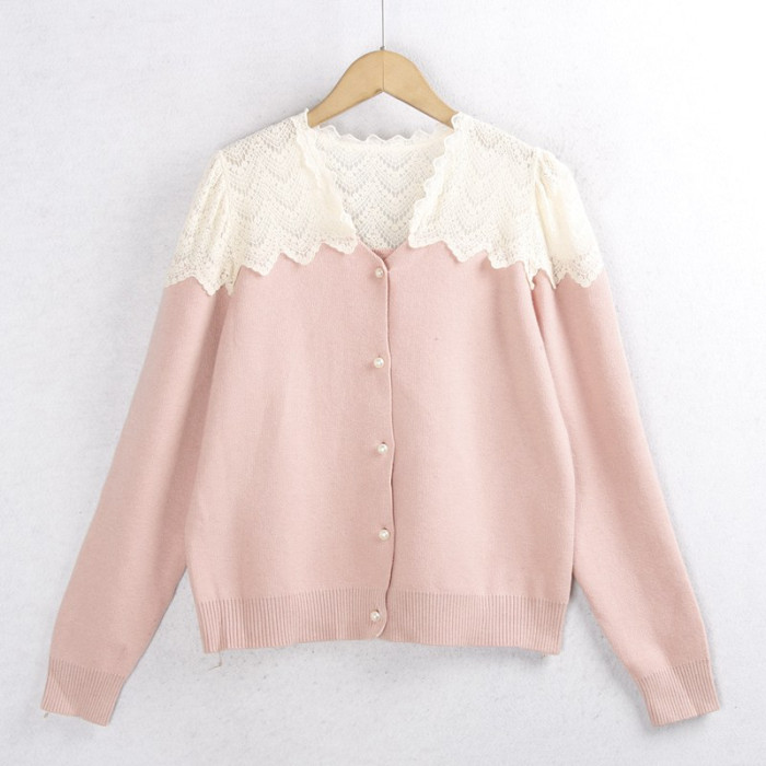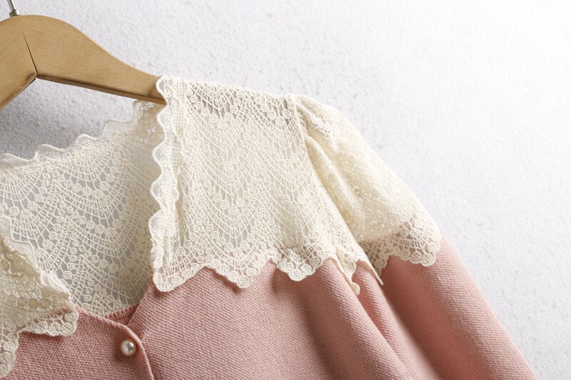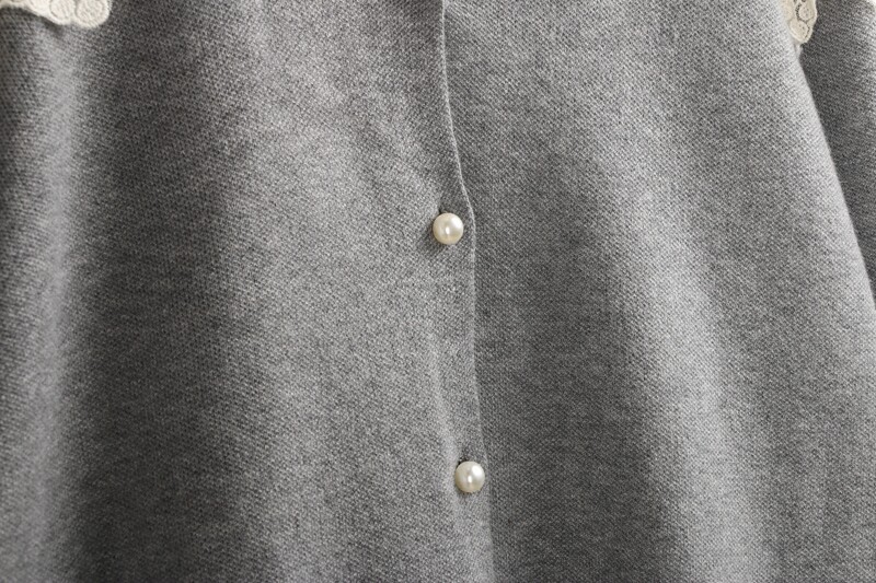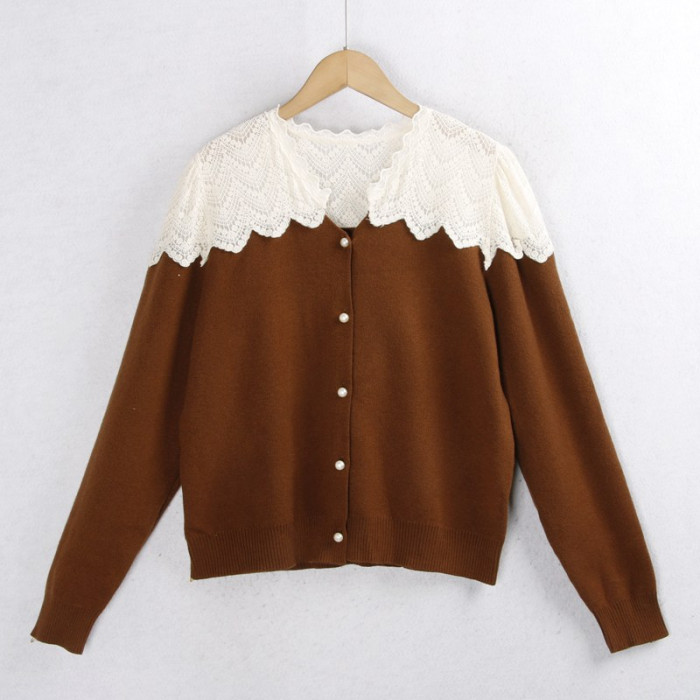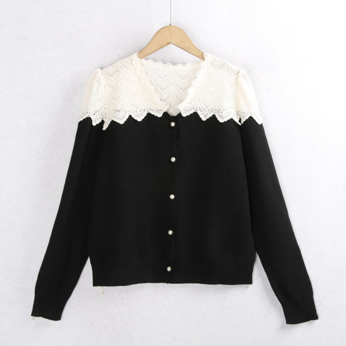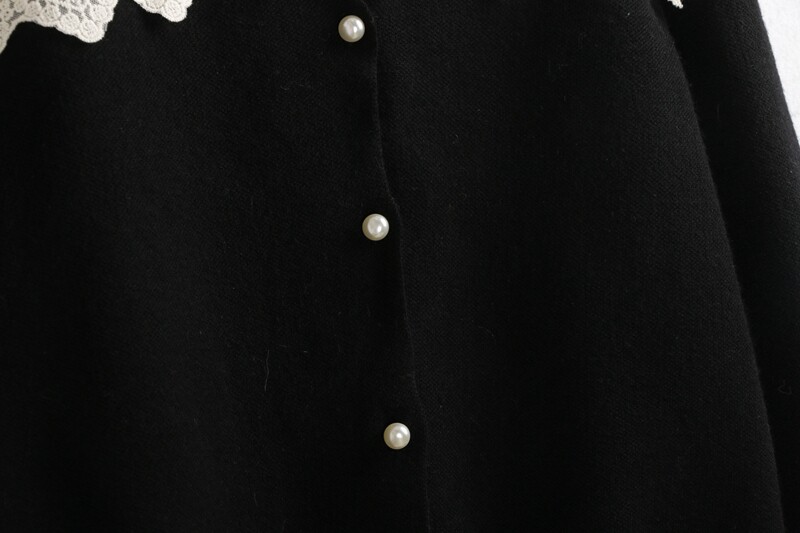 623蕾絲毛衣開衫 秋冬花邊領時尚珍珠釦百搭長袖針織毛線衣女