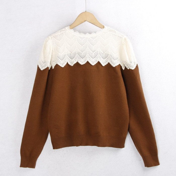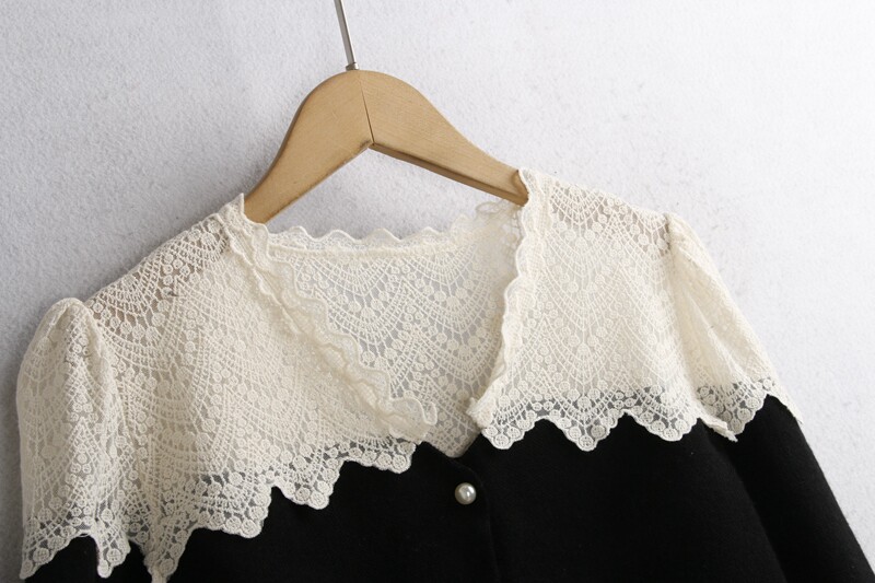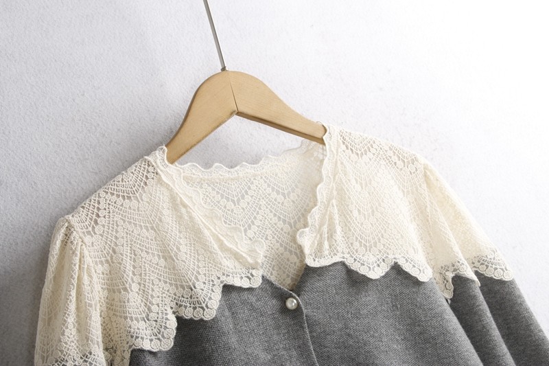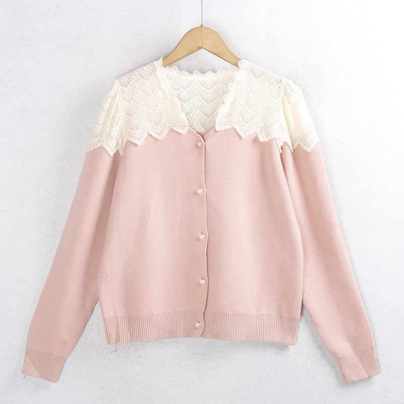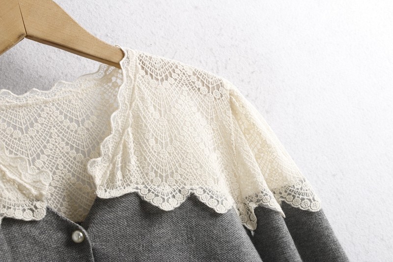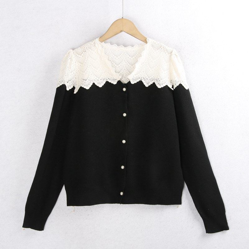 彈性:微彈力 版型寬松 蕾絲花邊毛衣開衫