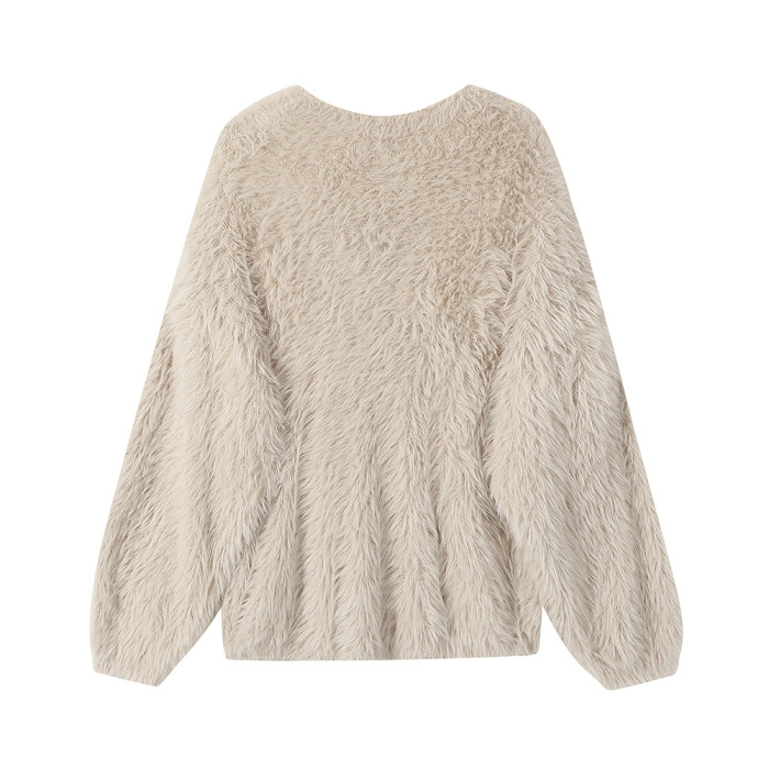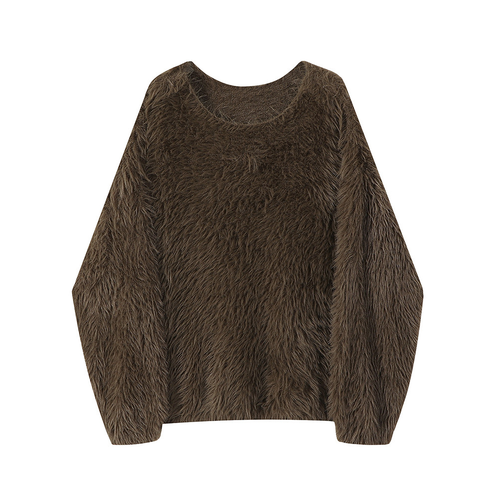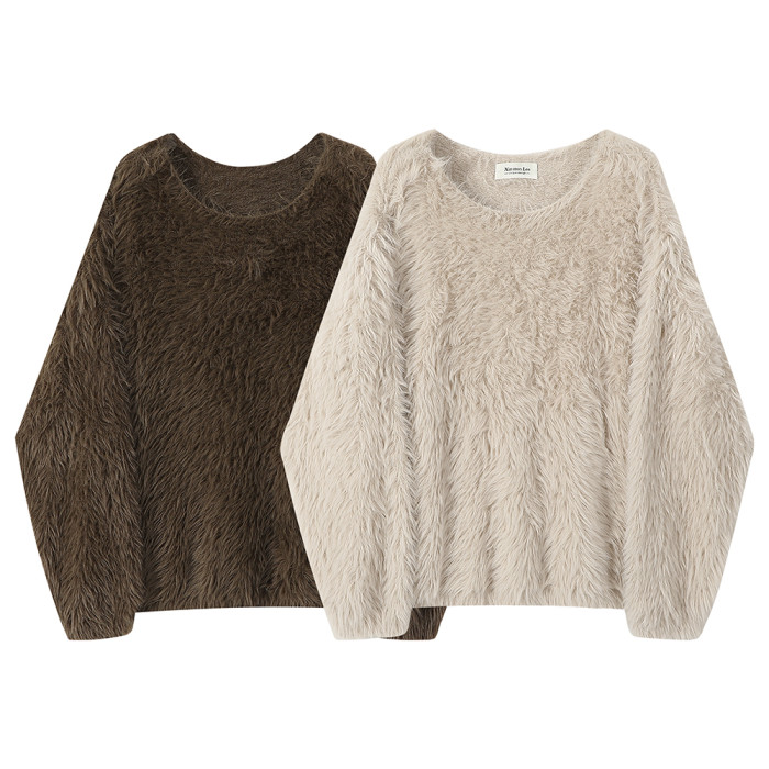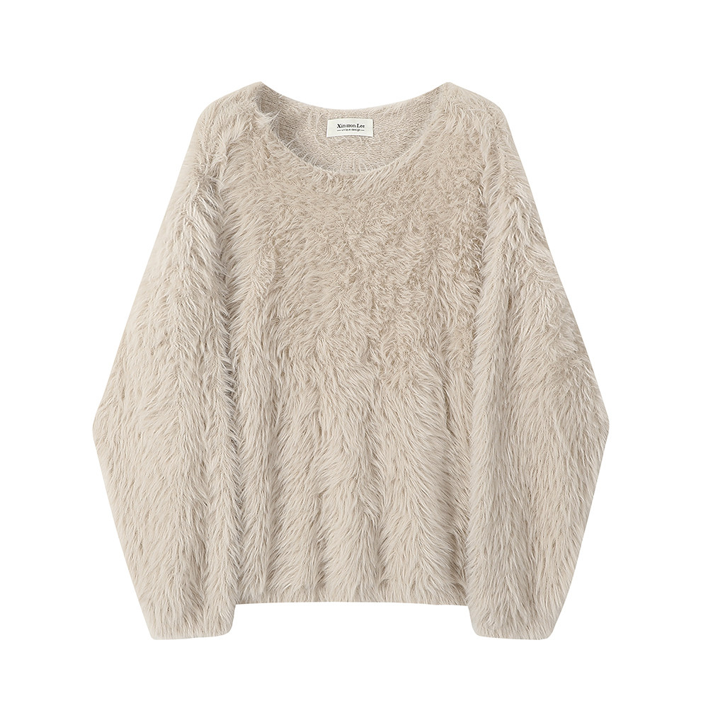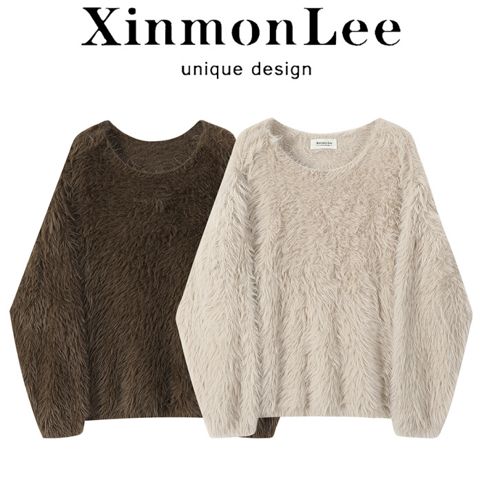 XinmonLee慵嬾風氣質甜美水貂毛毛衣2025新款秋冬季休閒寬鬆上衣