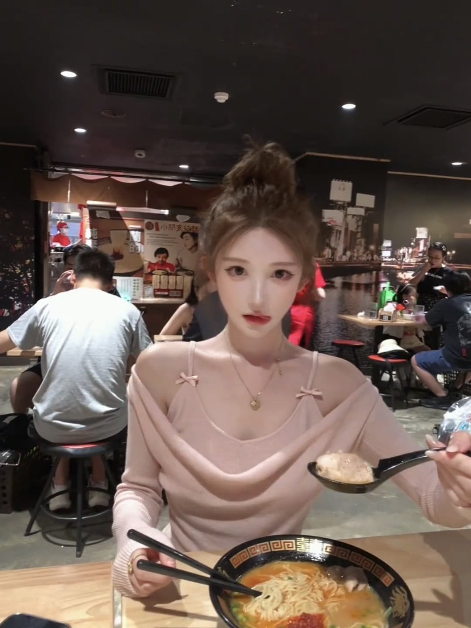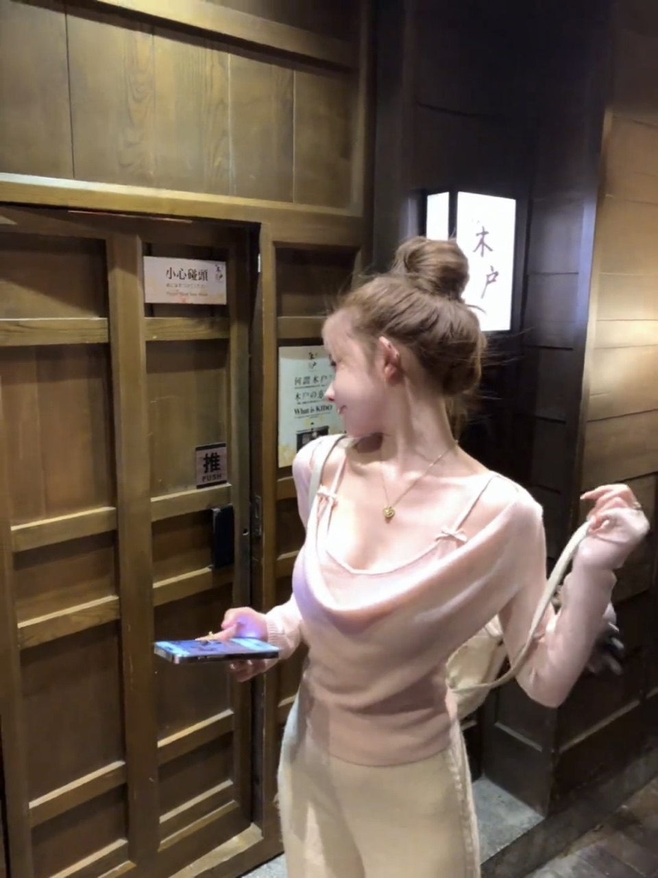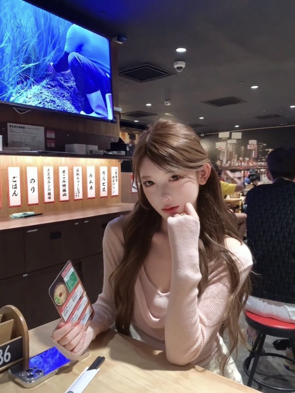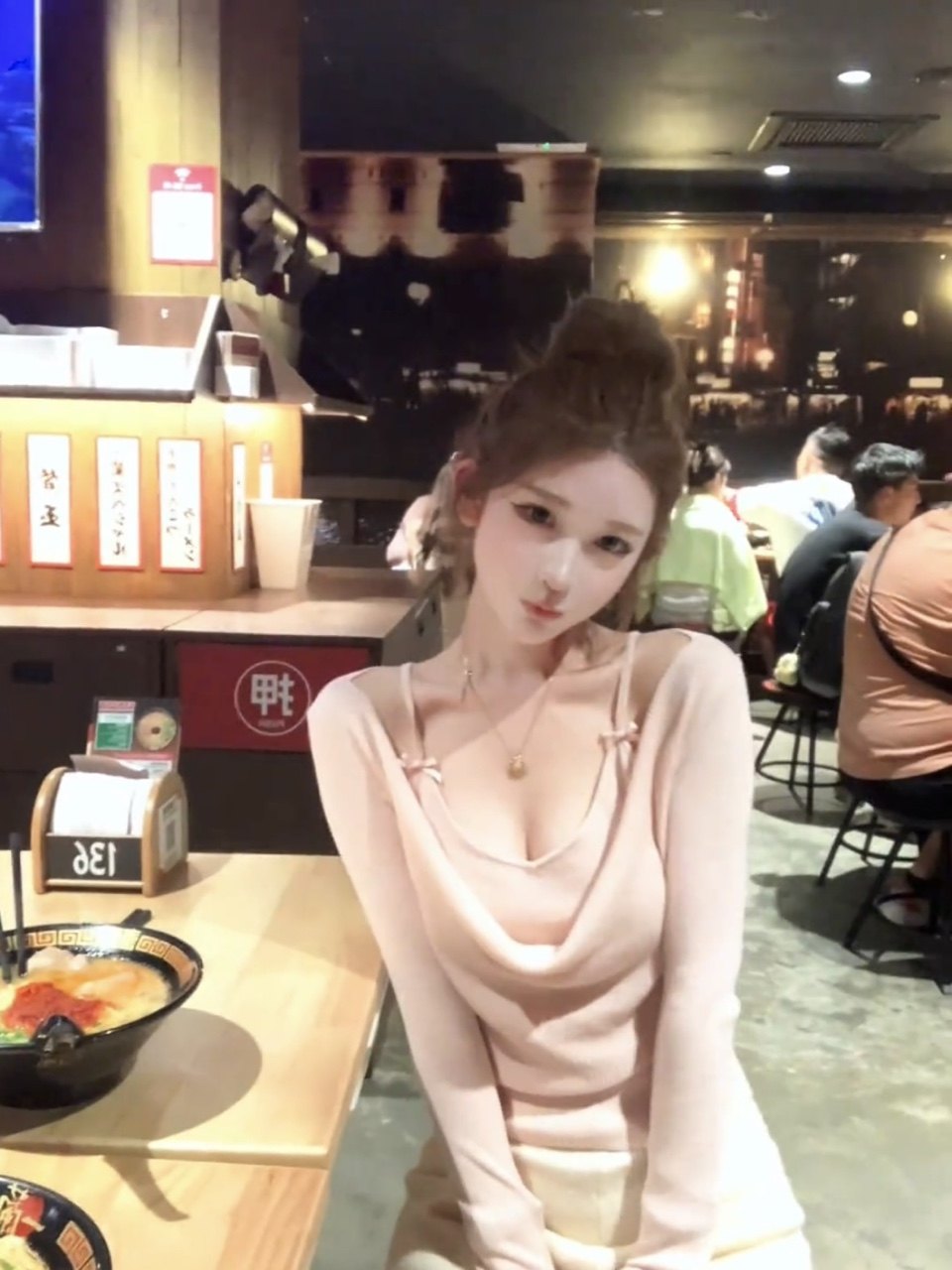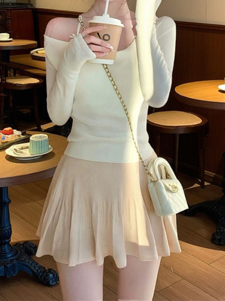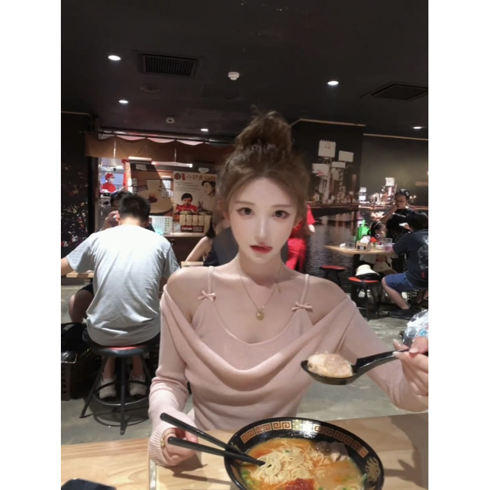 氣質粉色假兩件蕩領長袖針織t恤女秋冬季純欲修身絕美超好看上衣
