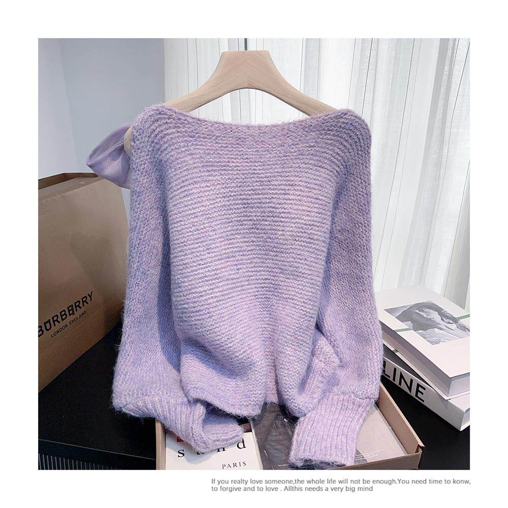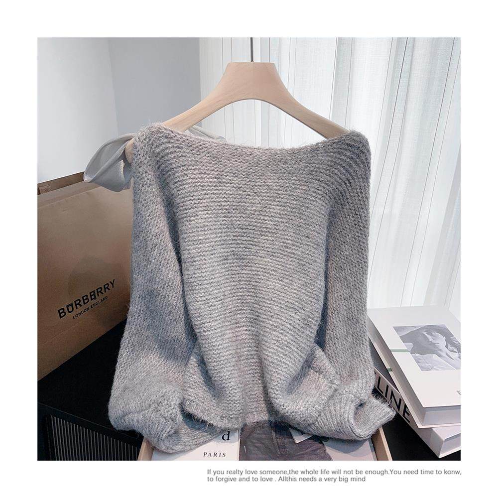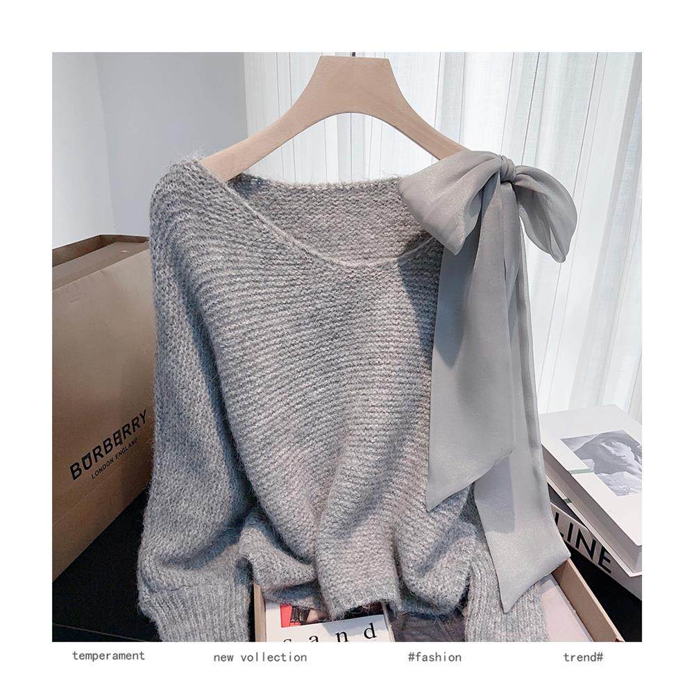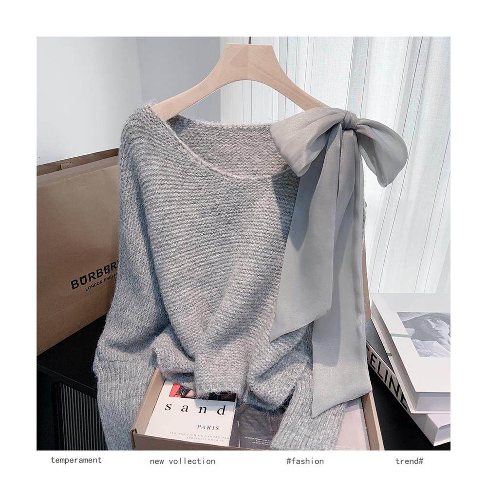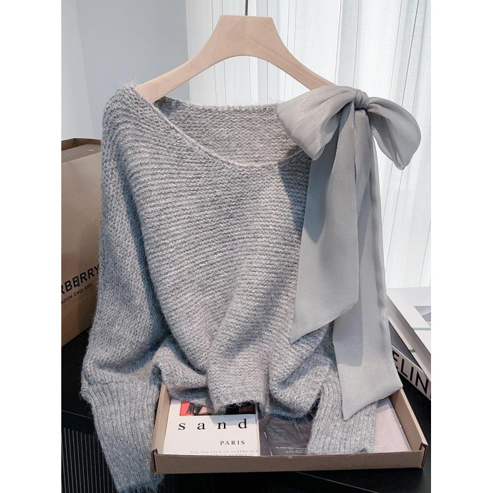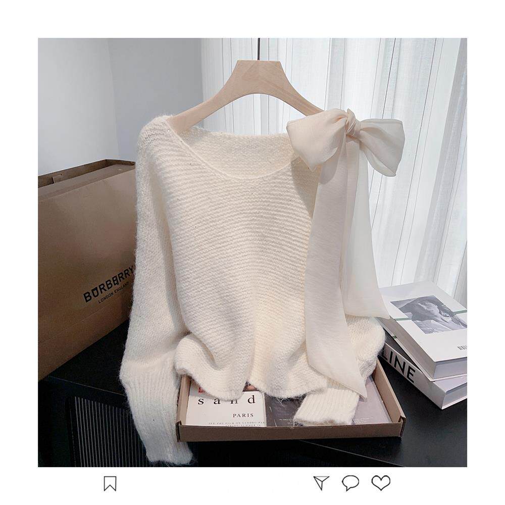 法式甜美蝴蝶結設計感蝙蝠袖毛衣秋冬新款軟糯寬鬆短款漂亮上衣女
