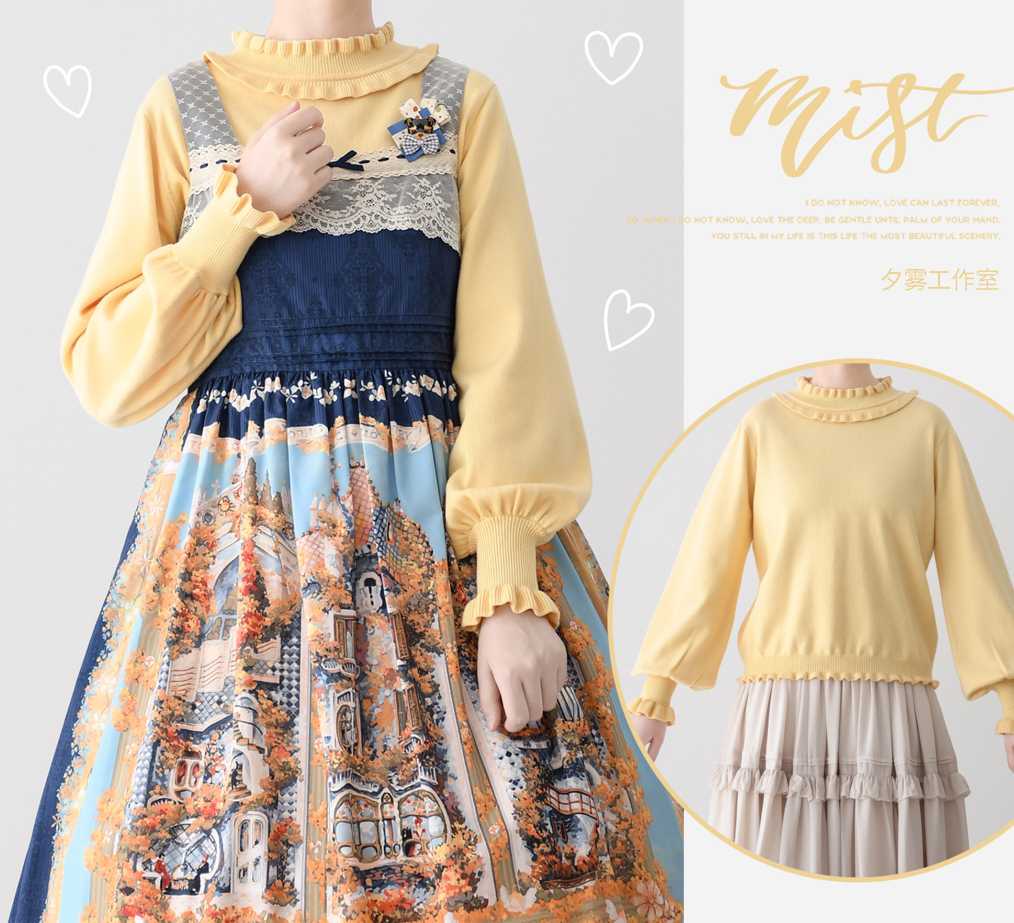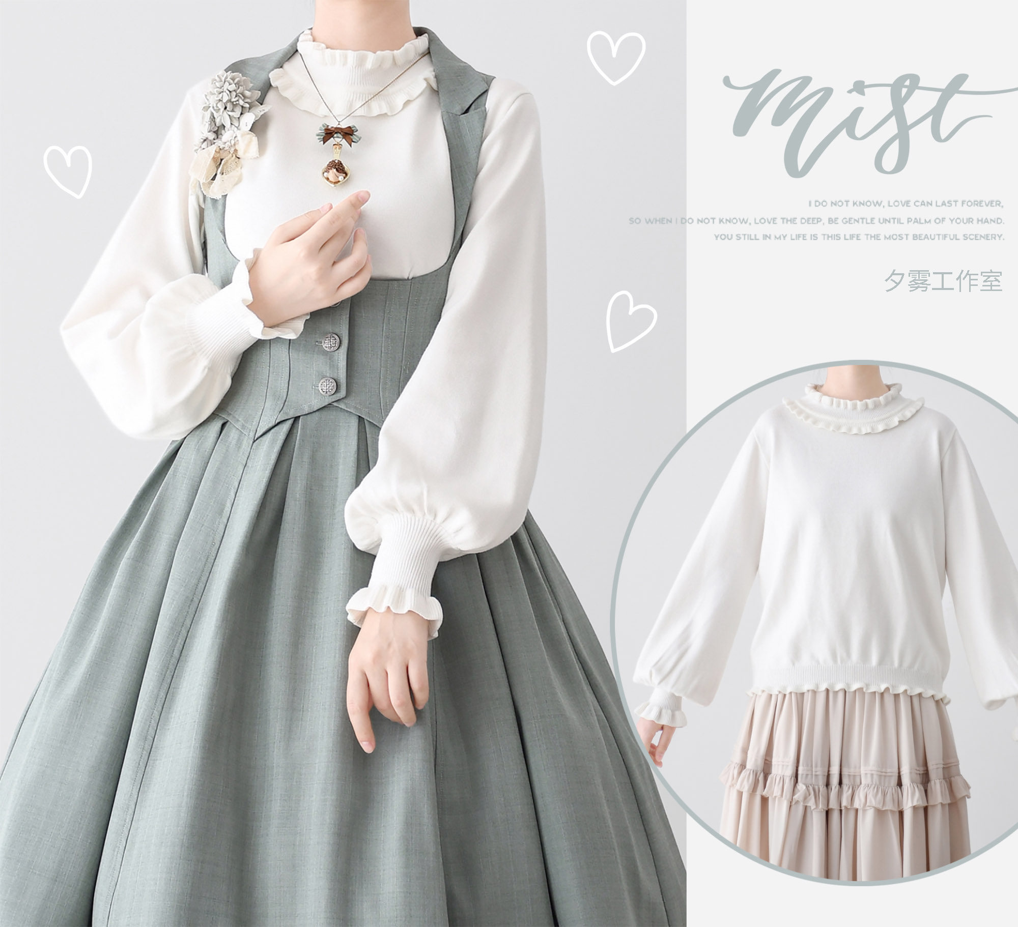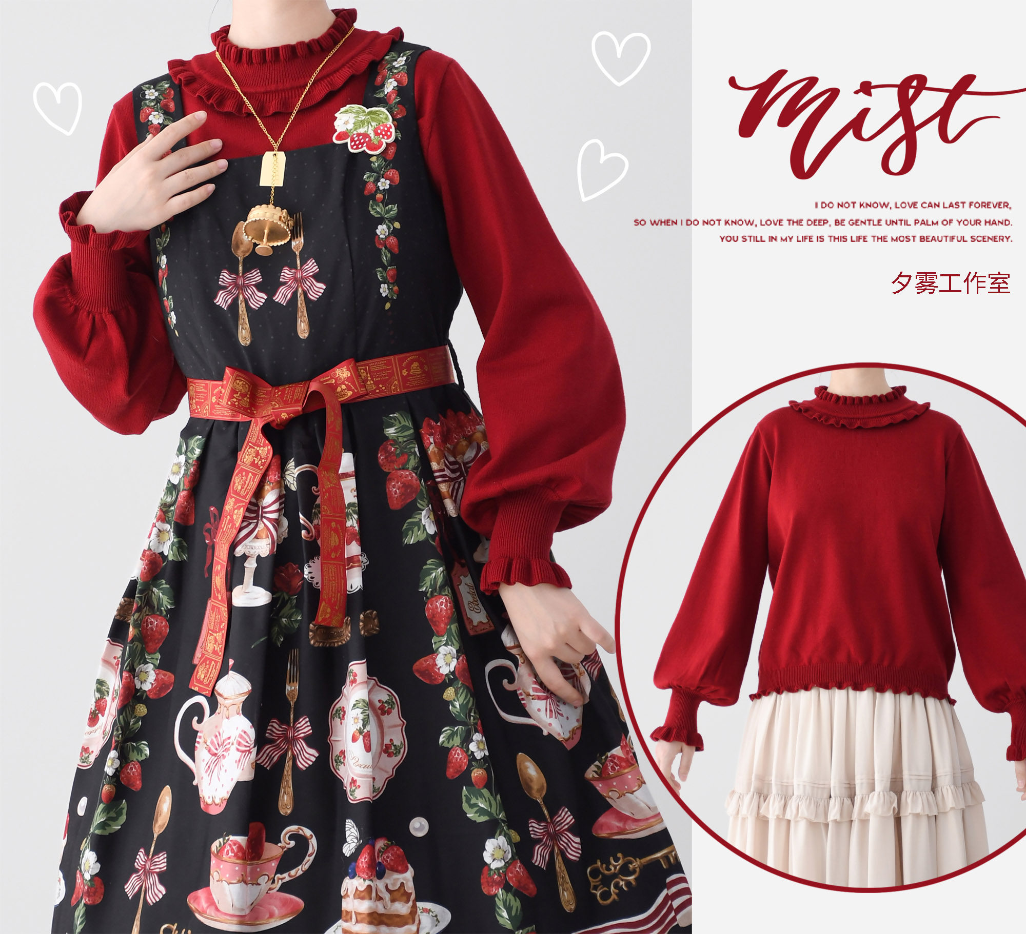 lolita毛衣內搭高領打底針織衫保暖上泡泡袖內搭洛麗塔日系軟妹