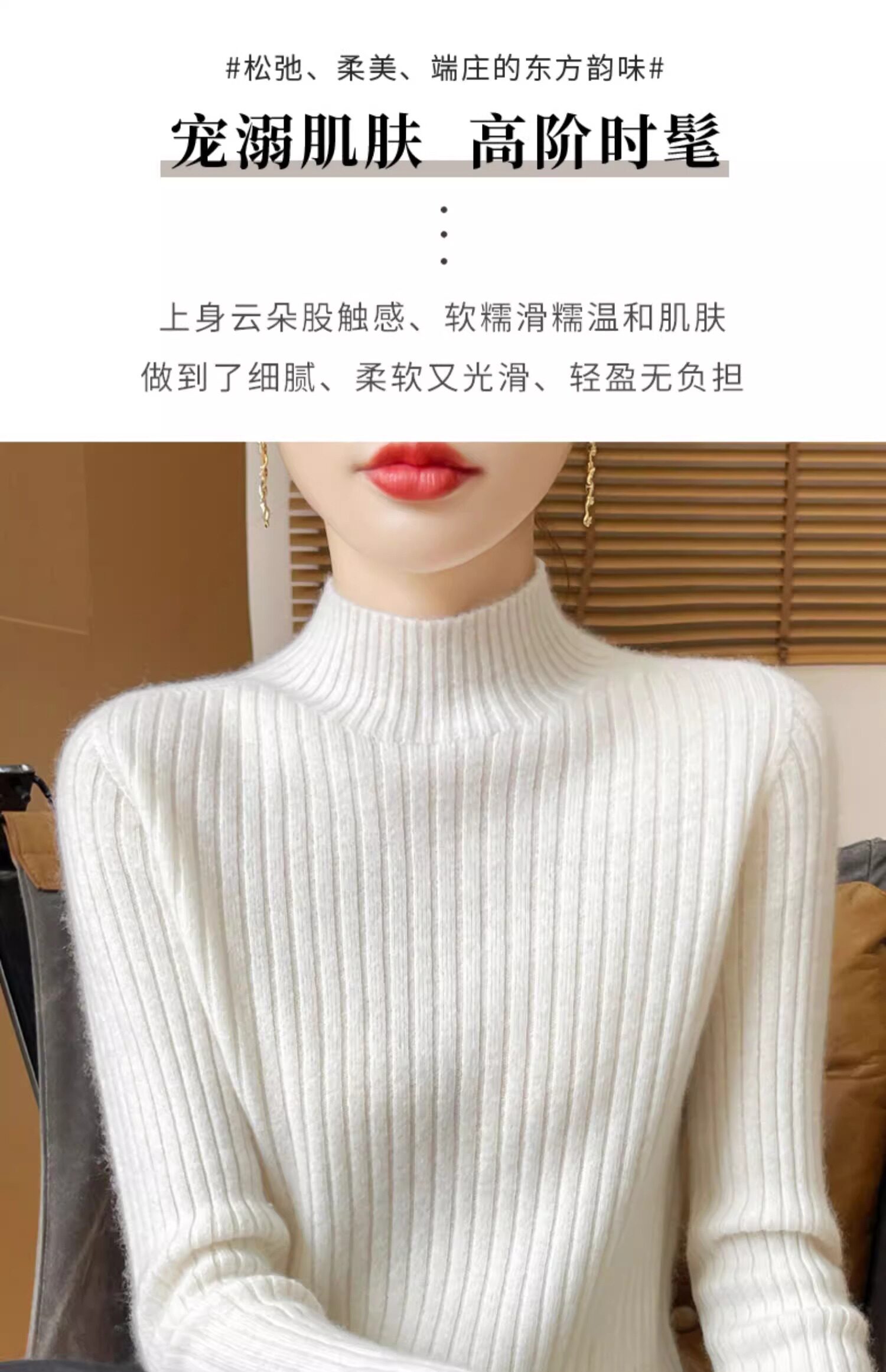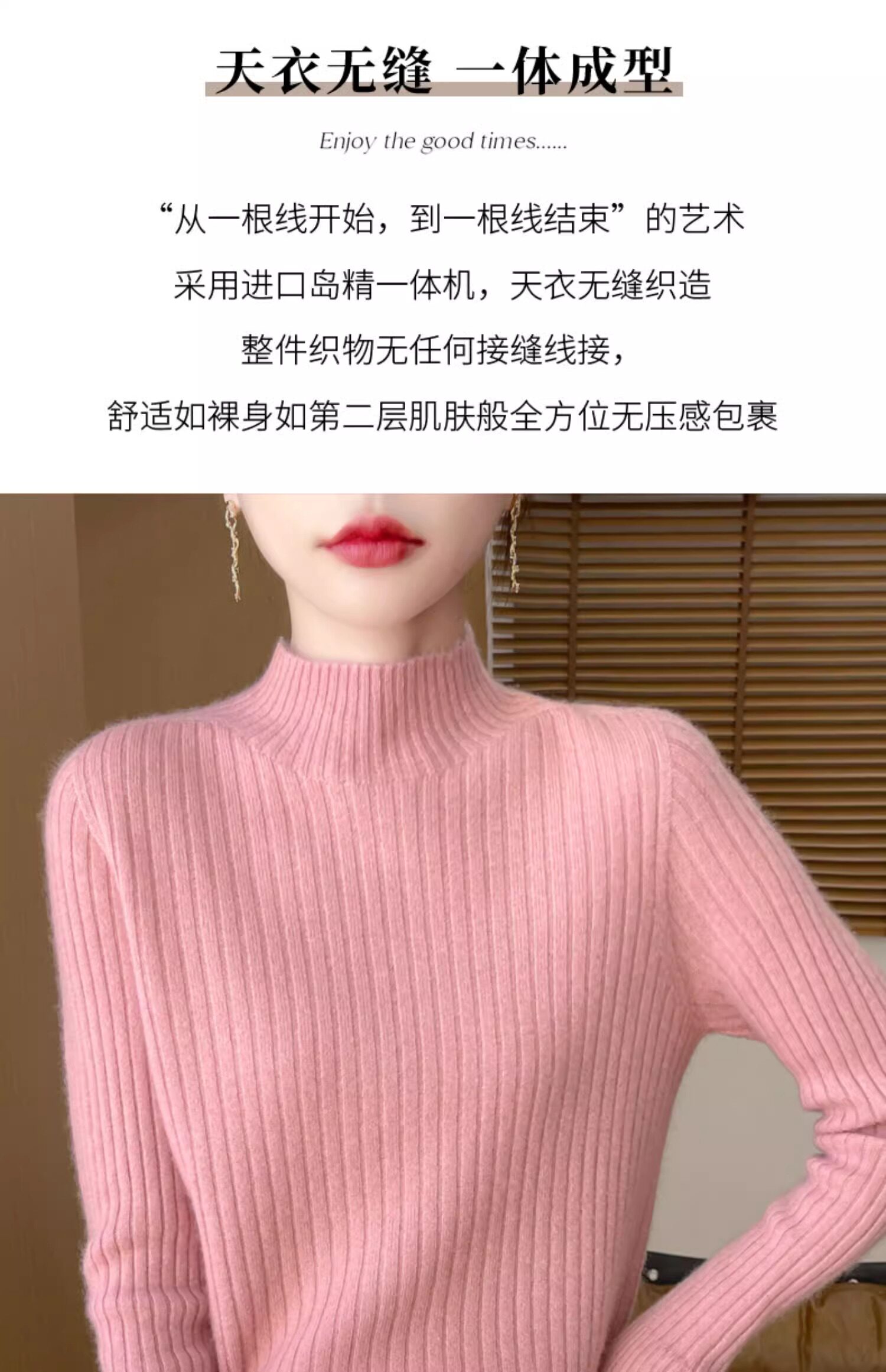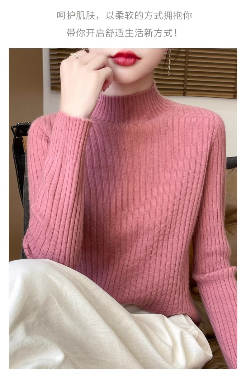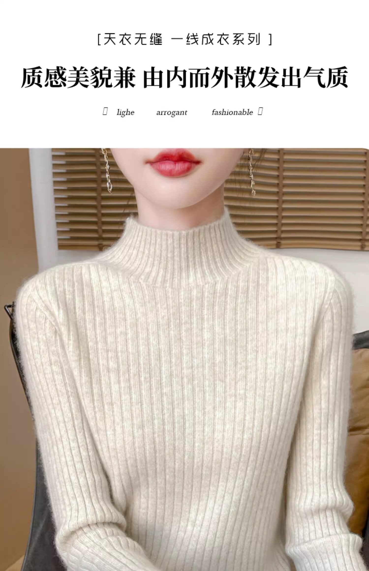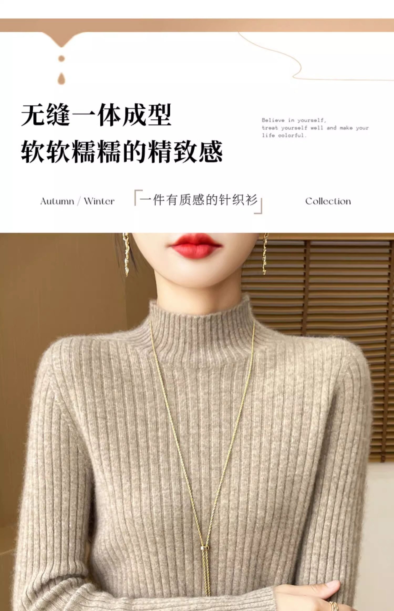 軟糯精緻感無縫半高領毛衣女秋冬內搭加厚保暖修身顯瘦內搭打底衫