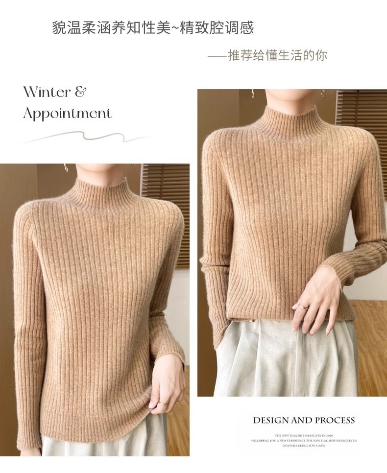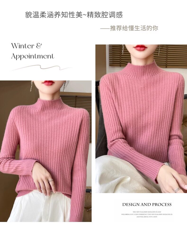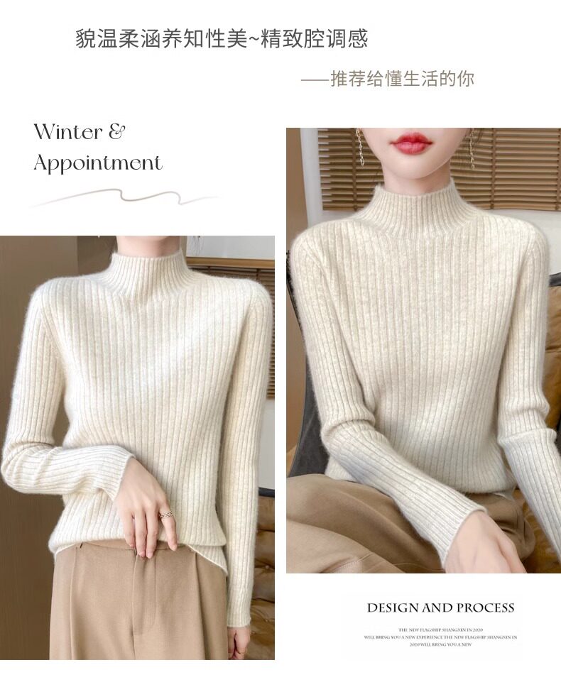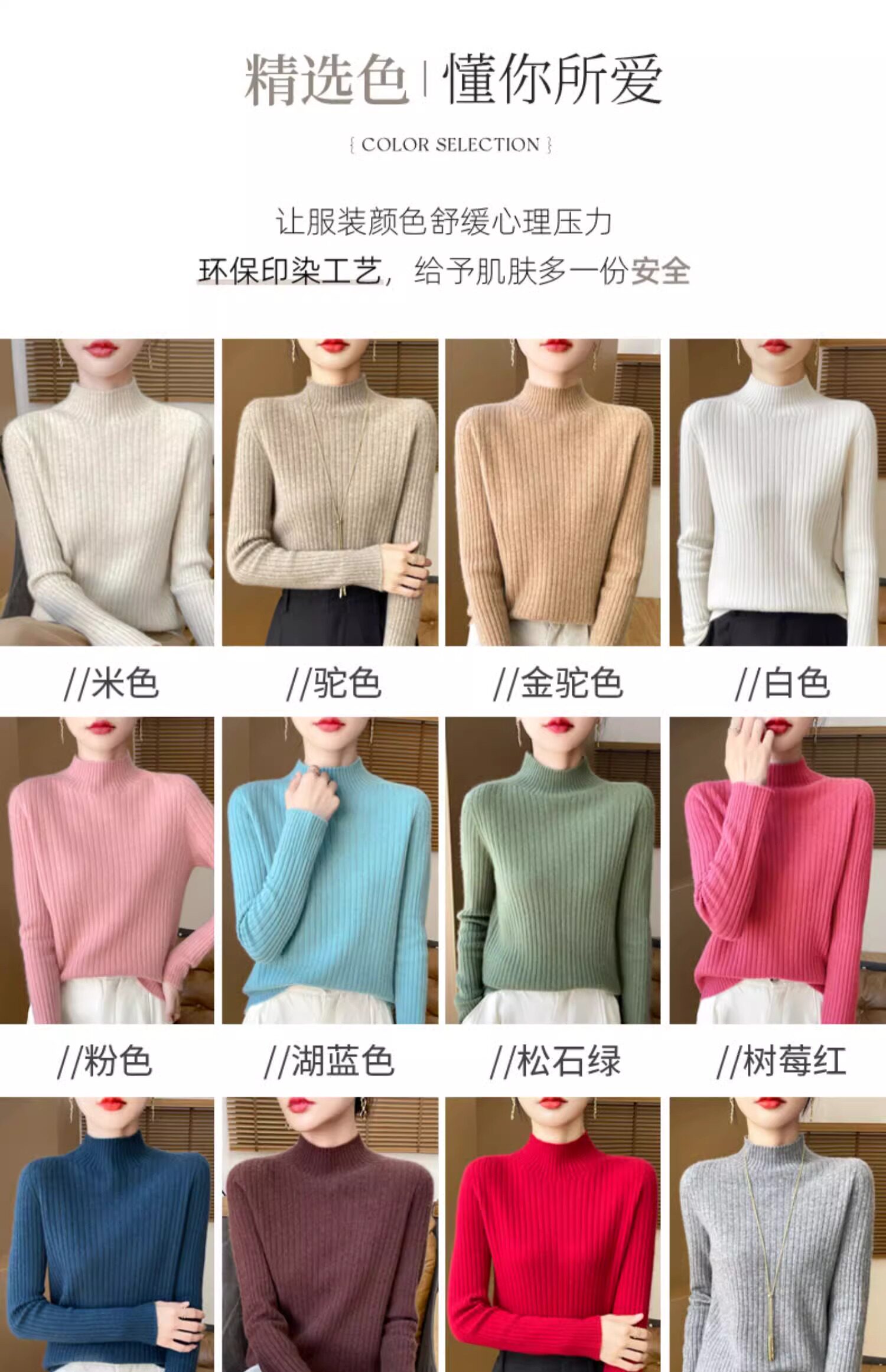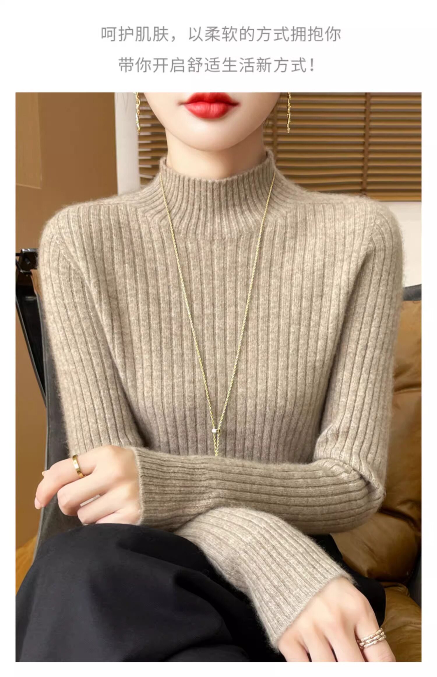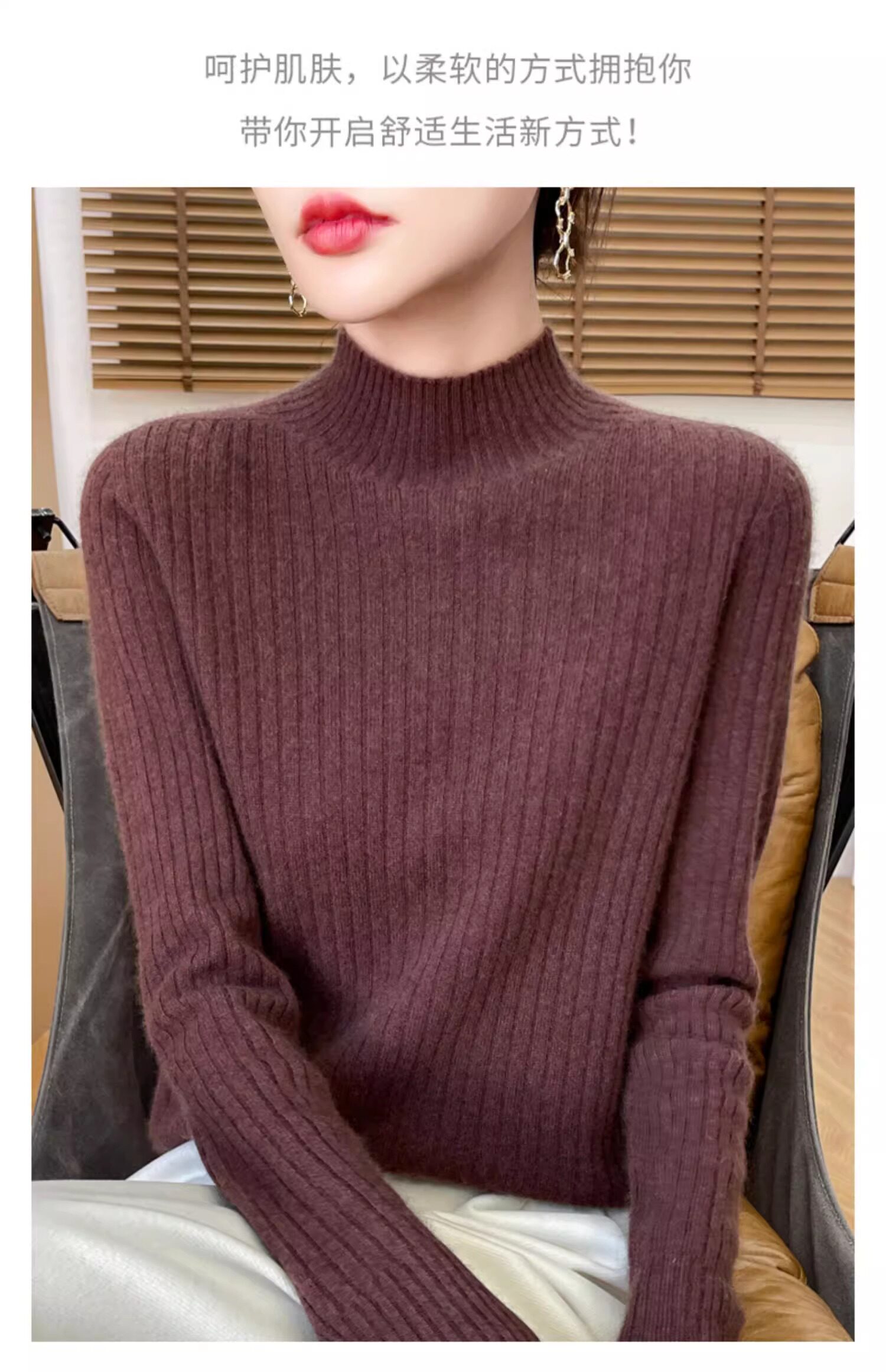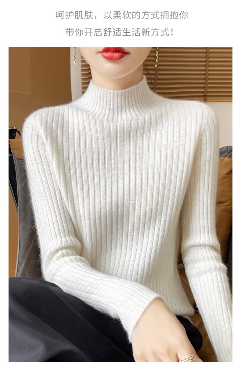 軟糯精緻感無縫半高領毛衣女秋冬內搭加厚保暖修身顯瘦內搭打底衫