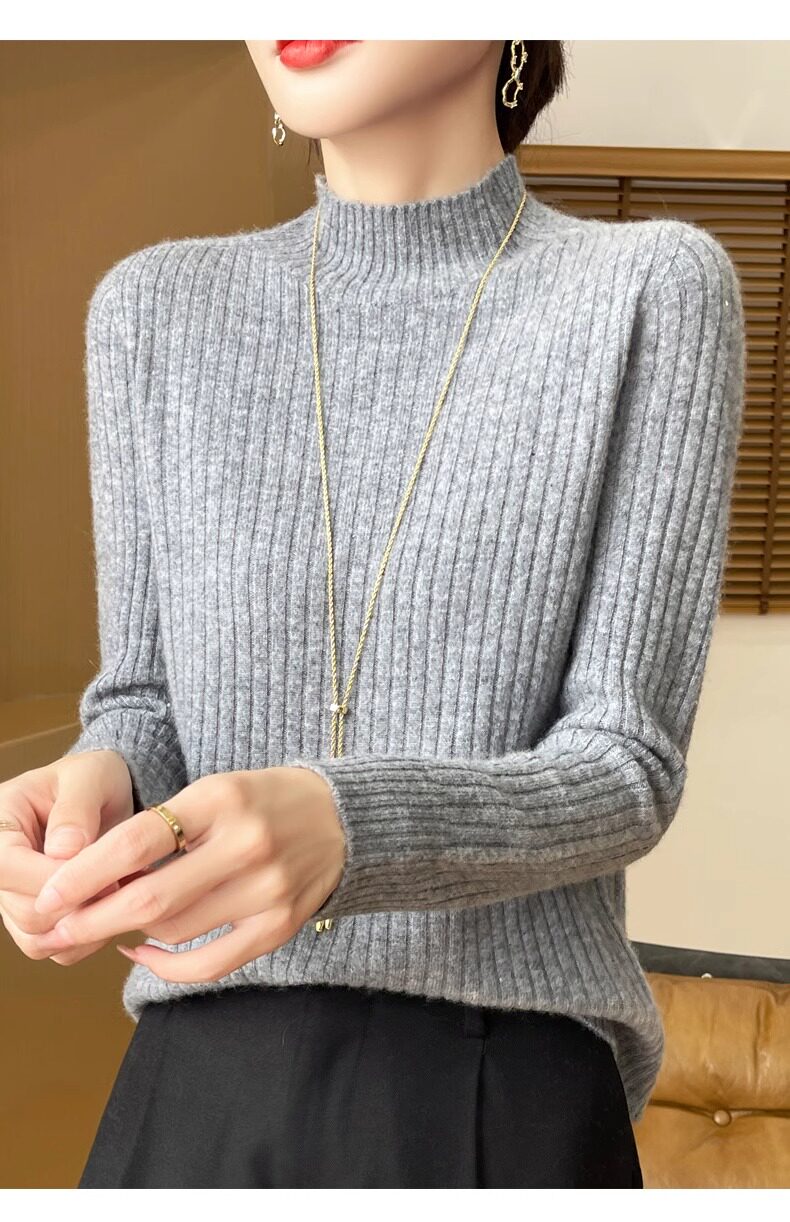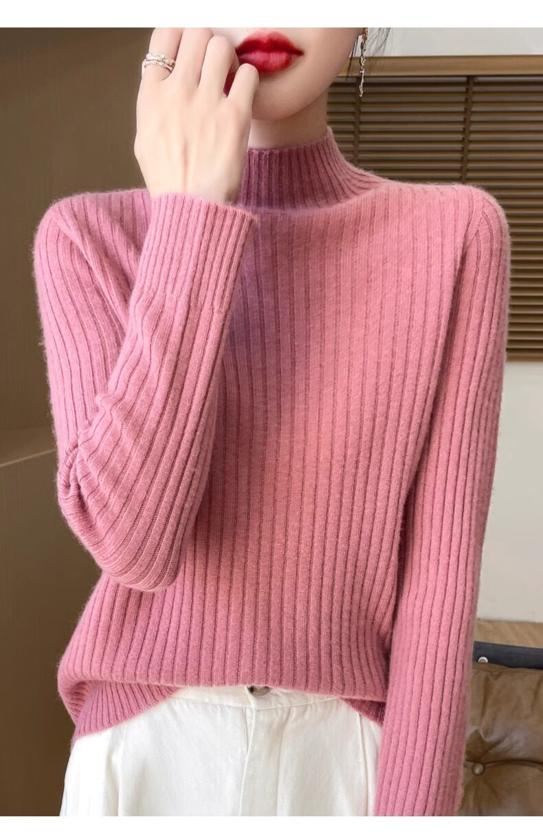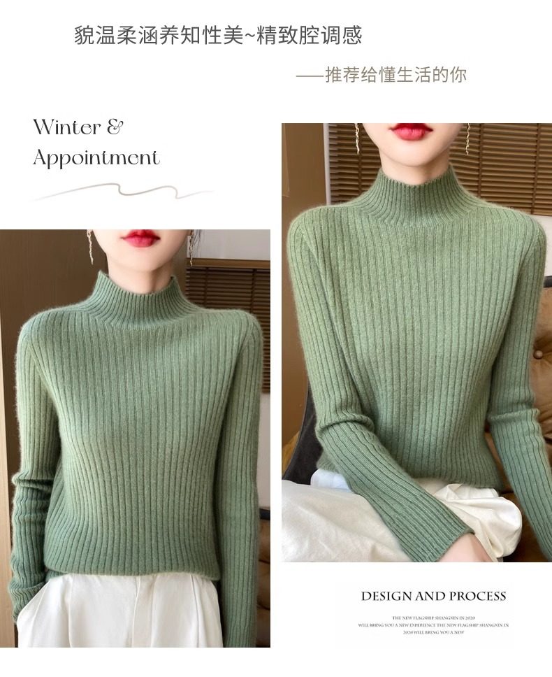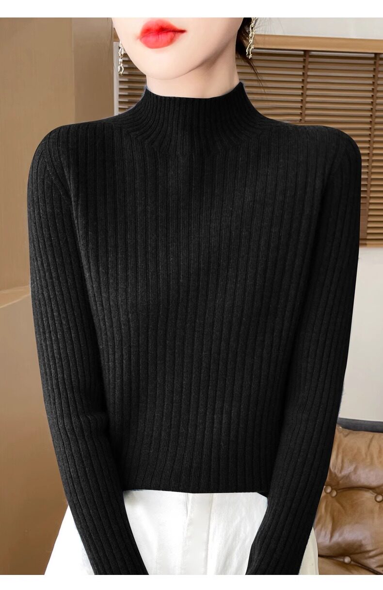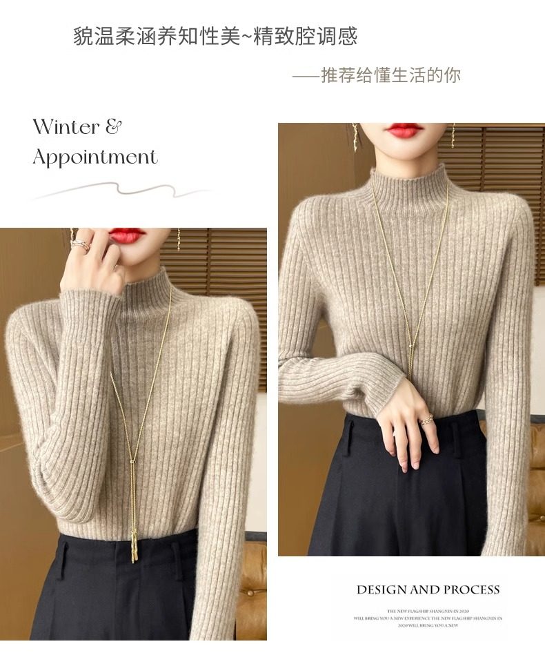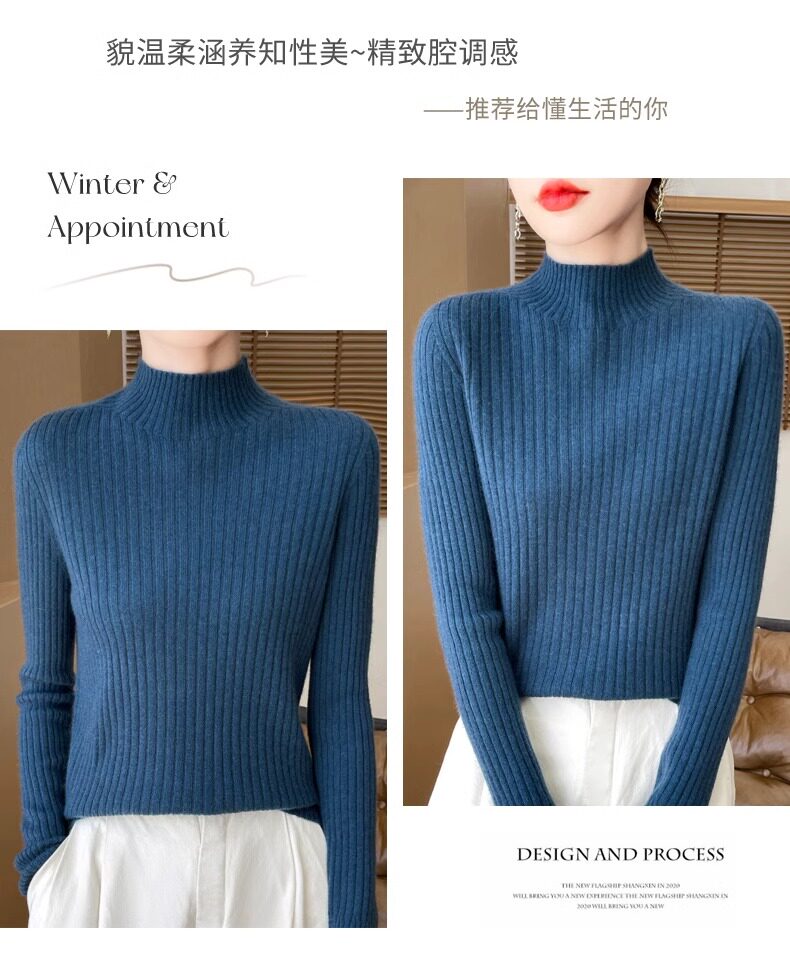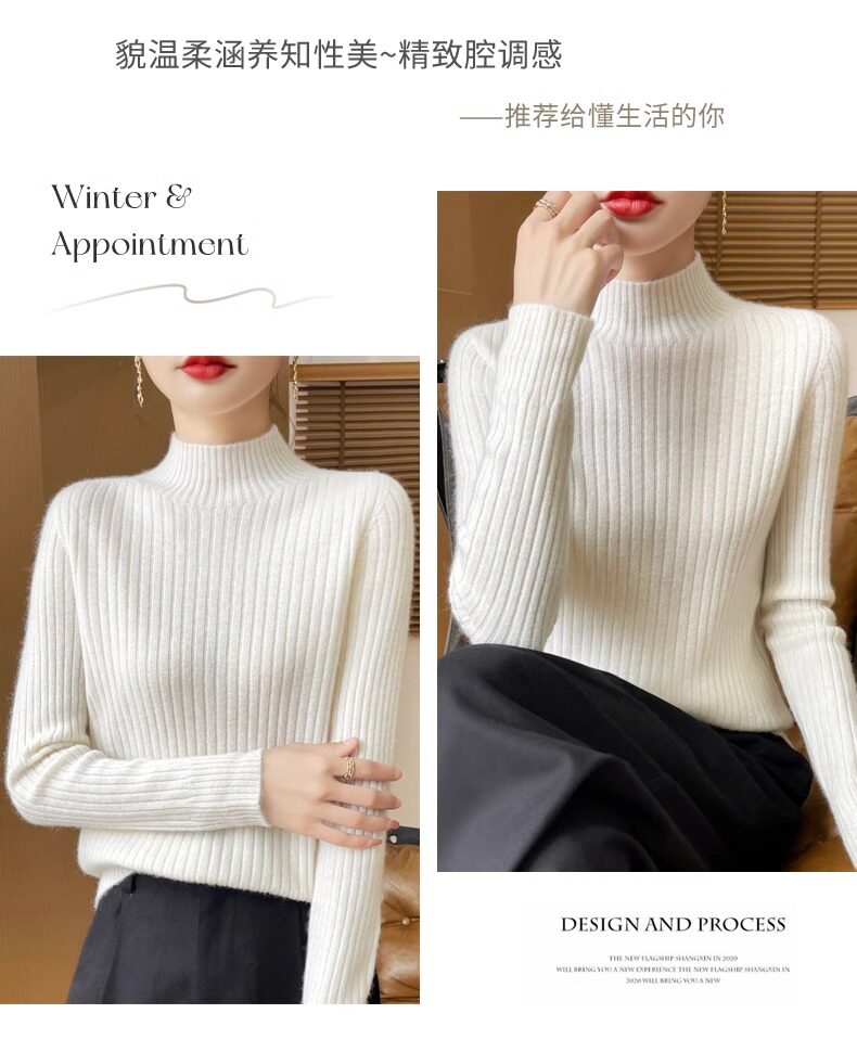 軟糯精緻感無縫半高領毛衣女秋冬內搭加厚保暖修身顯瘦內搭打底衫