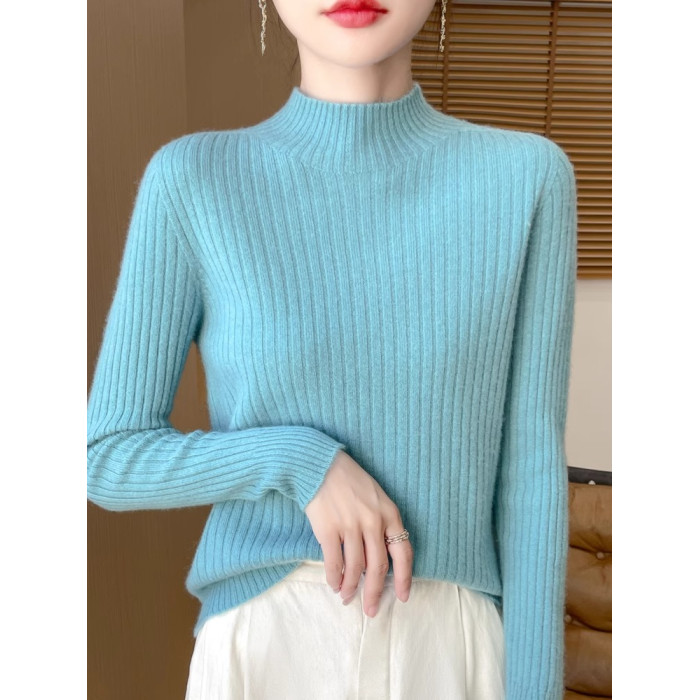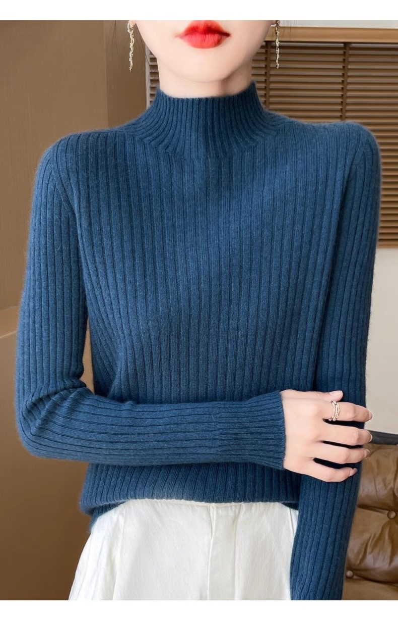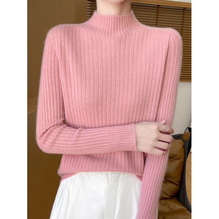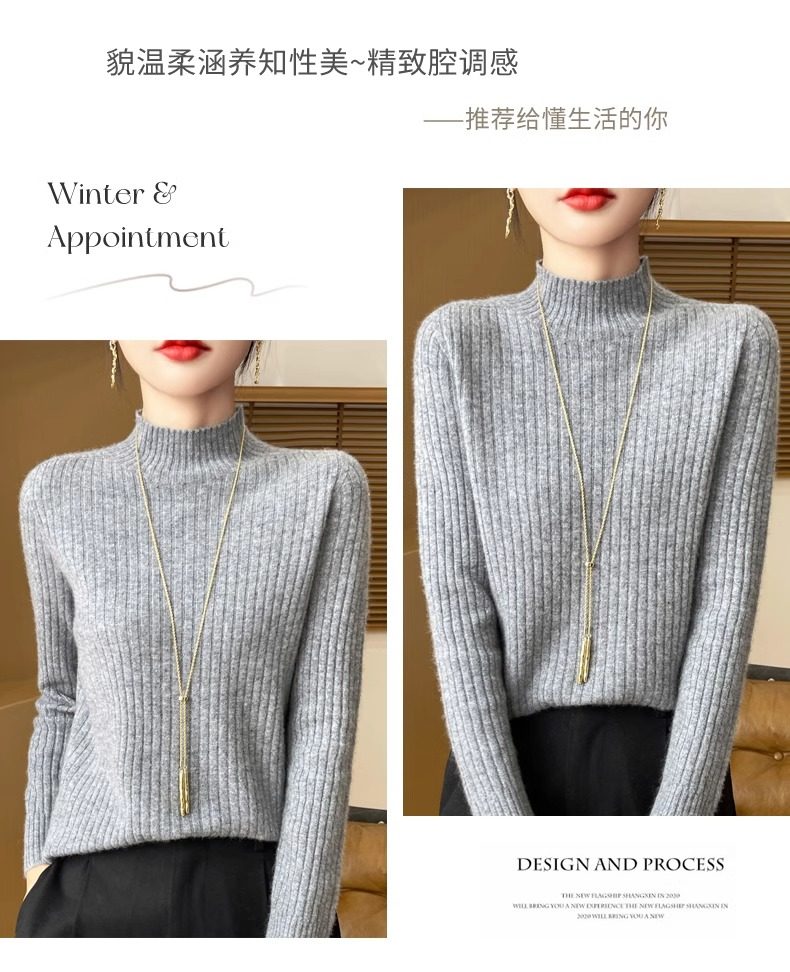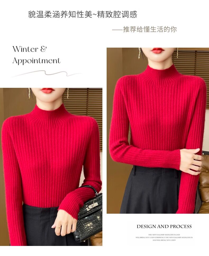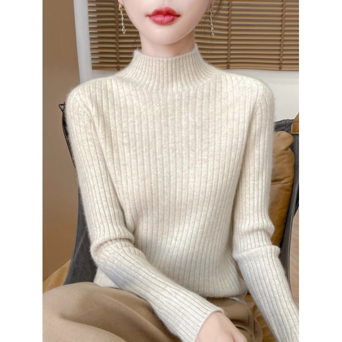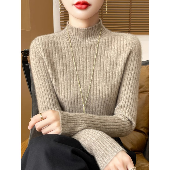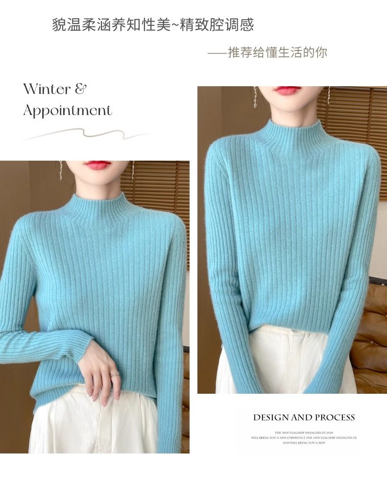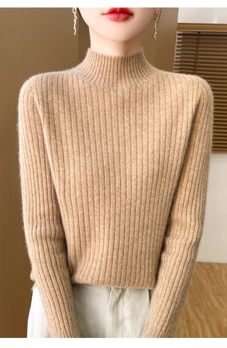 軟糯精緻感無縫半高領毛衣女秋冬內搭加厚保暖修身顯瘦內搭打底衫