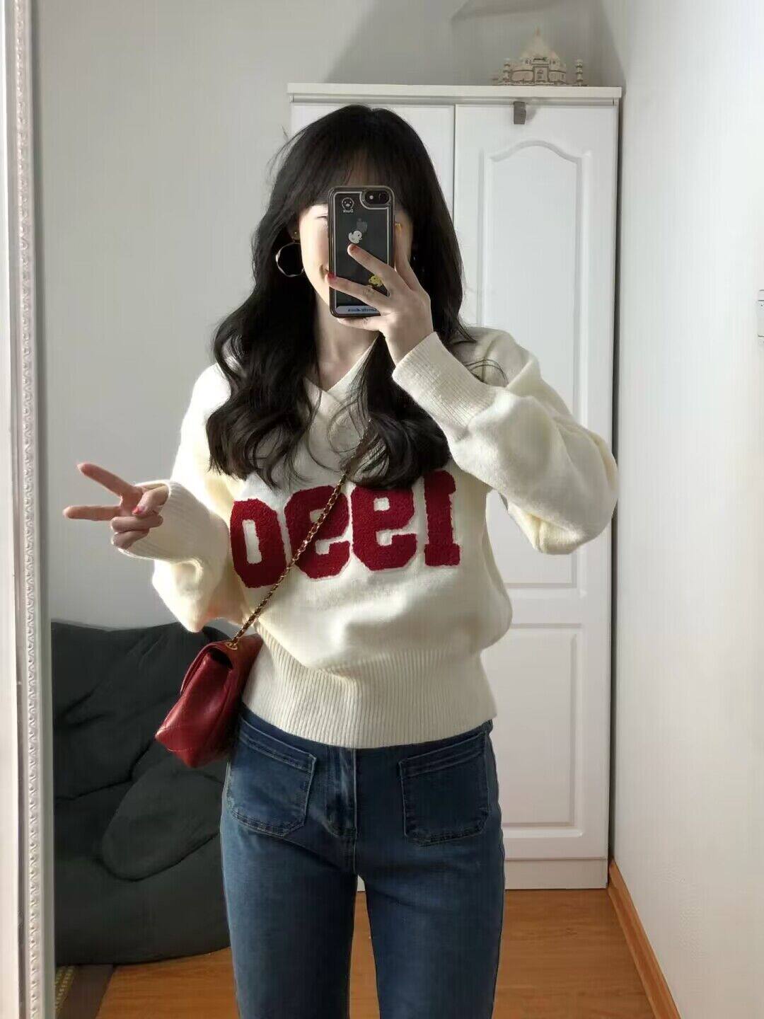 復古V領毛衣女秋裝2025新款設計感小衆慵懶風寬松百搭短款針織衫