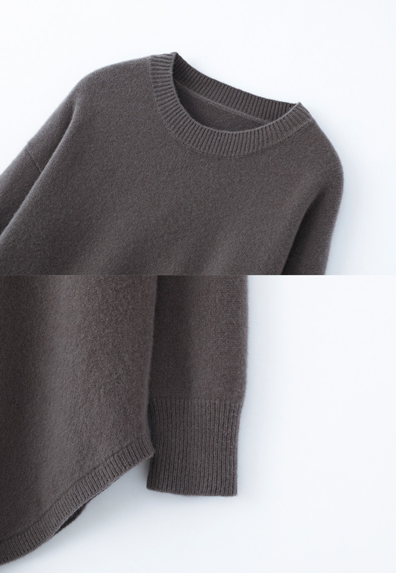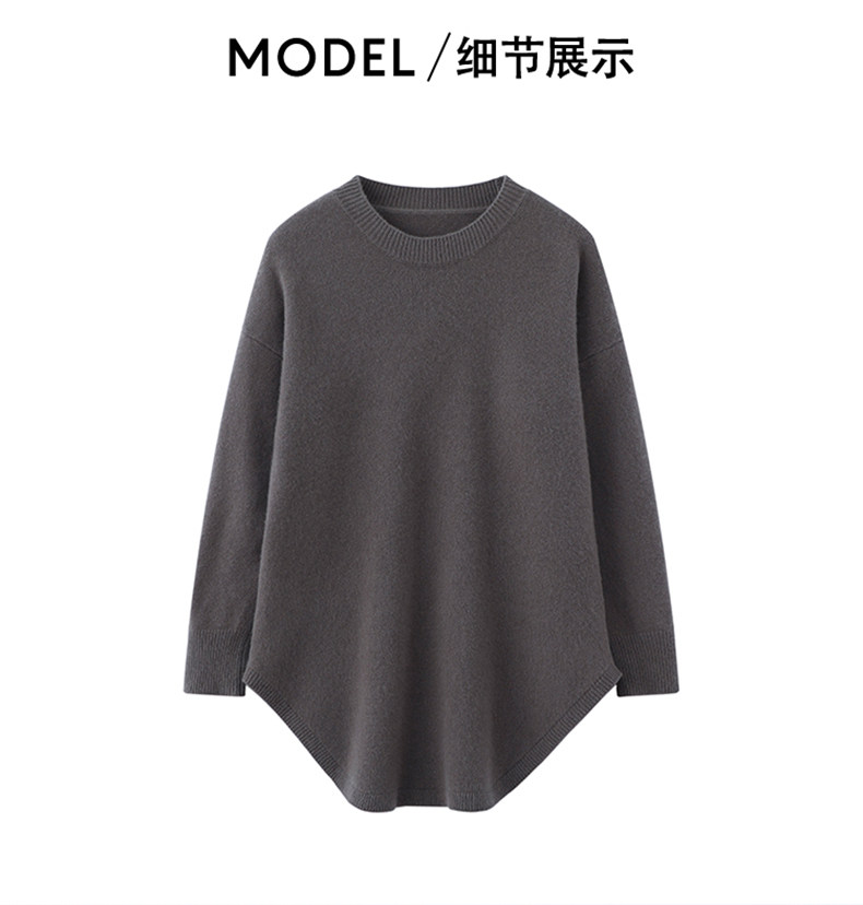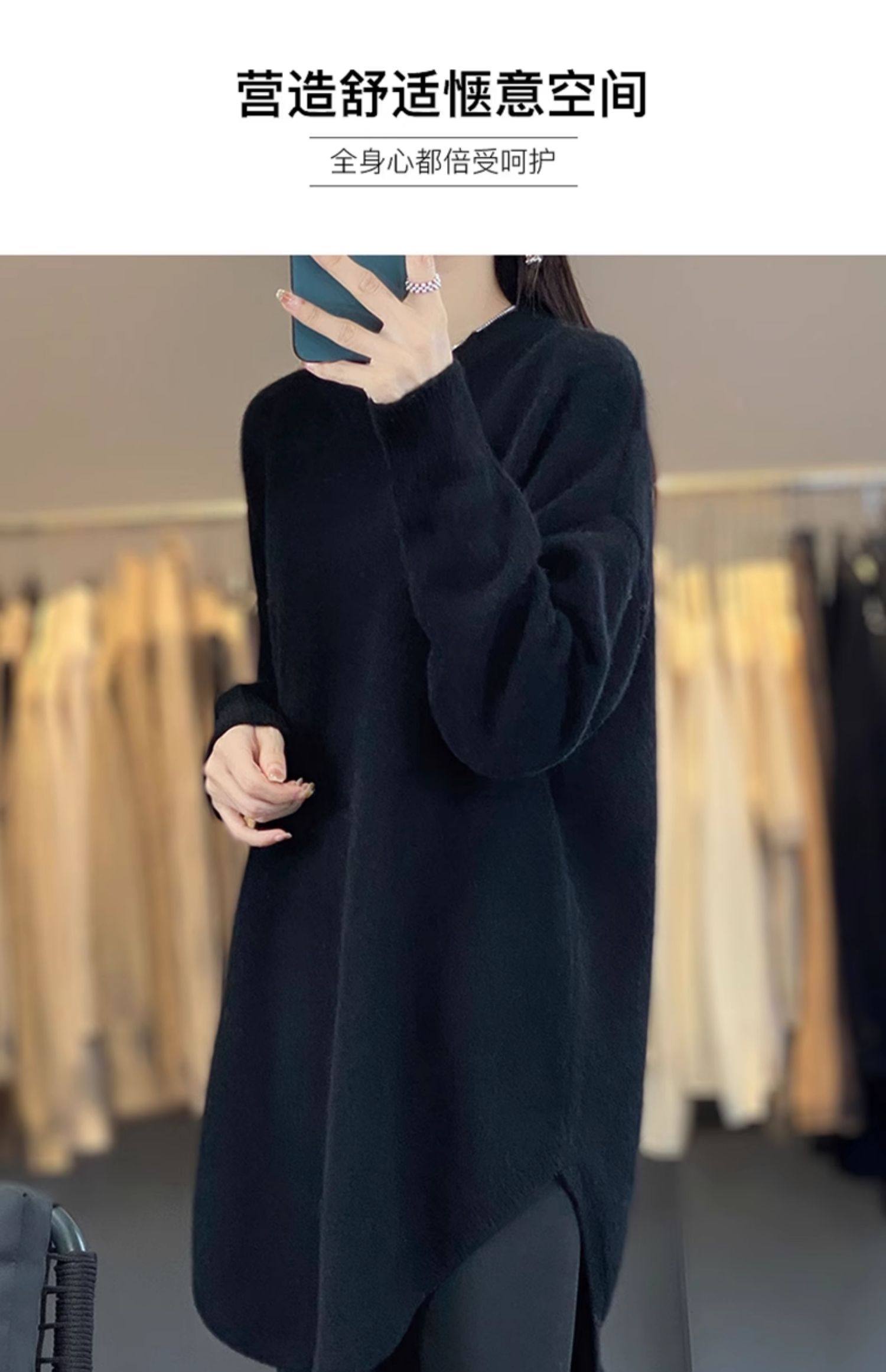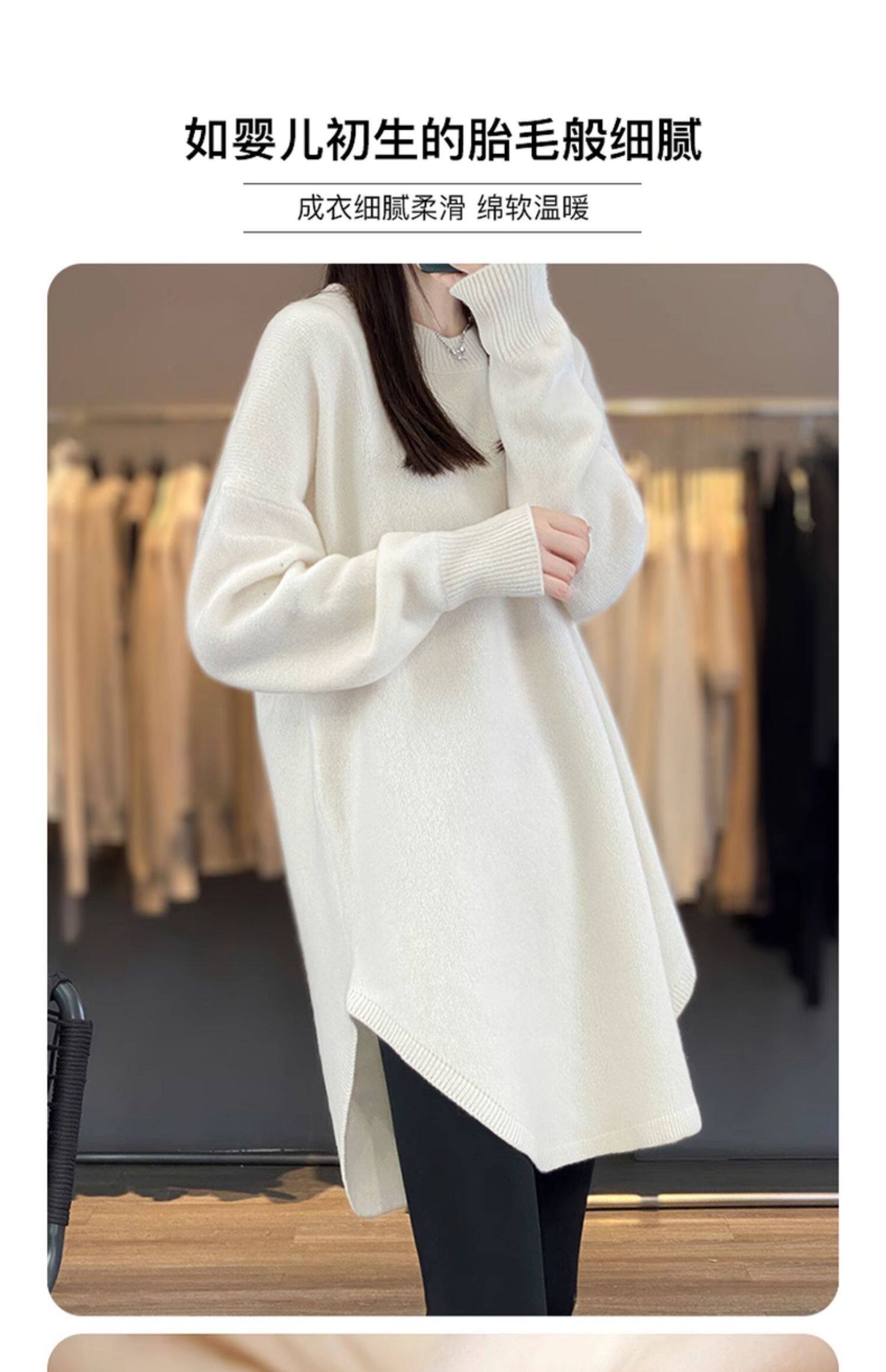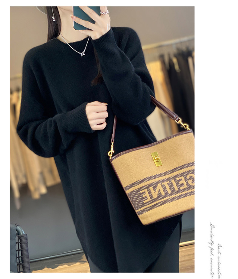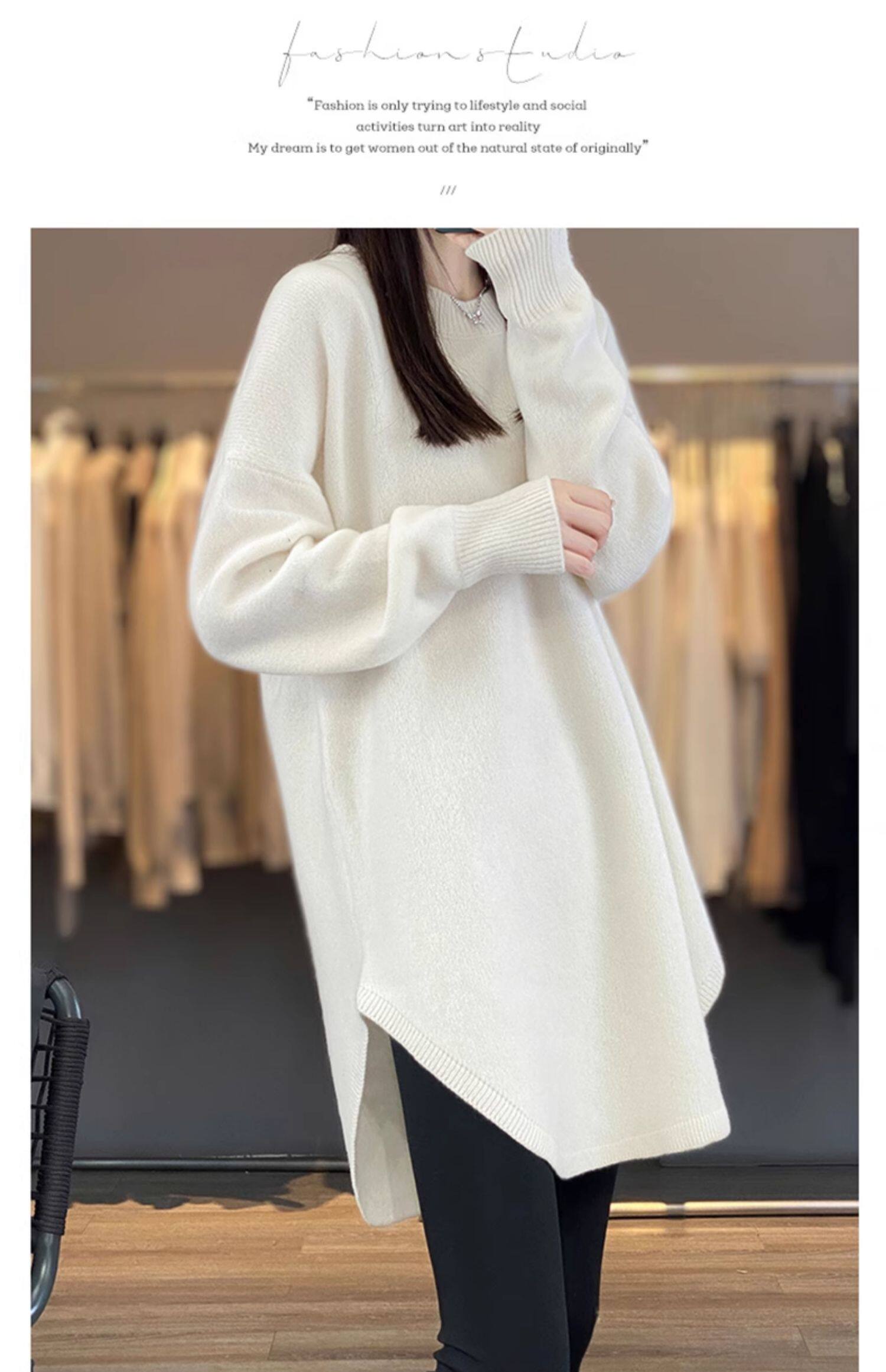 秋冬圓領中長款圓弧毛衣女寬松大碼慵懶風加厚休閒針織打底衫上衣