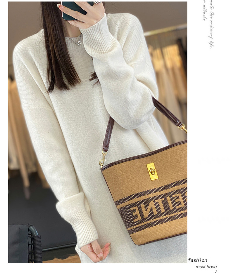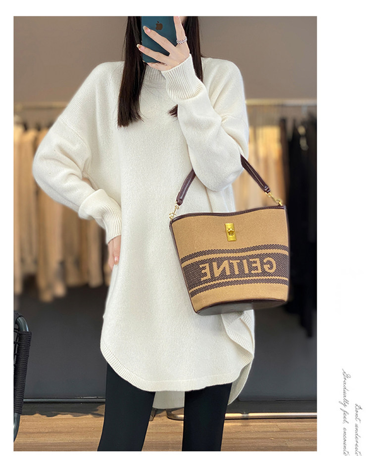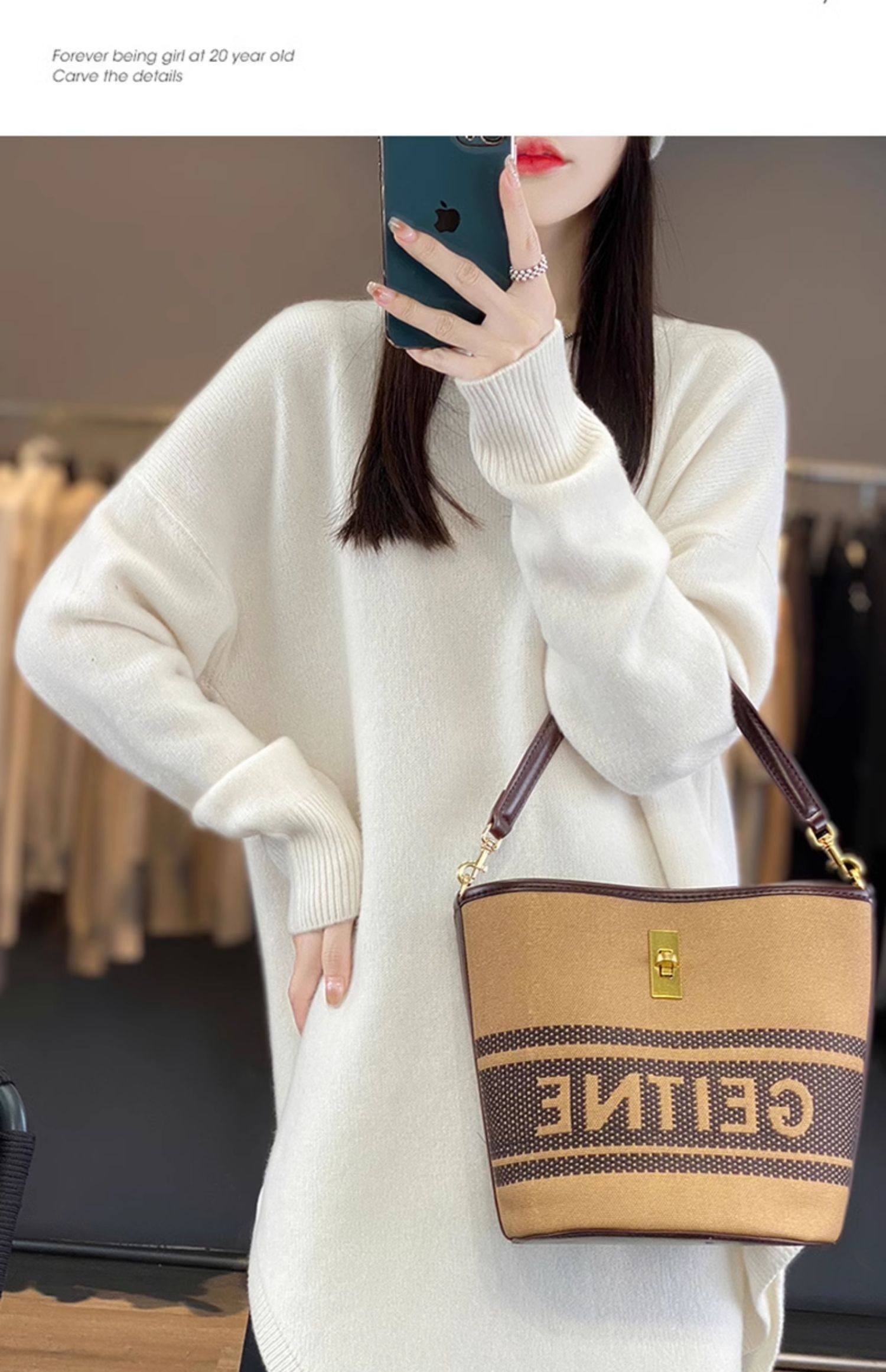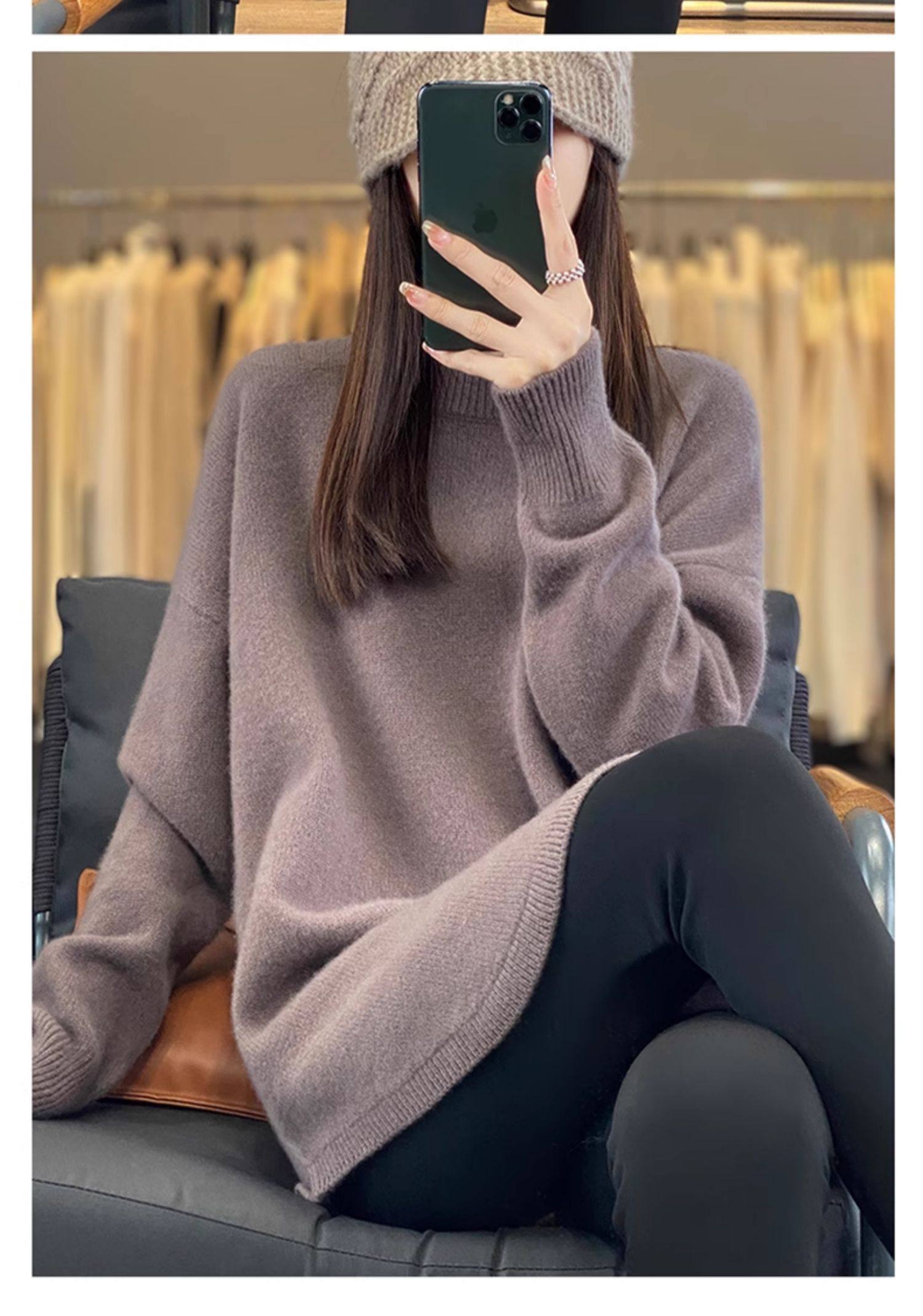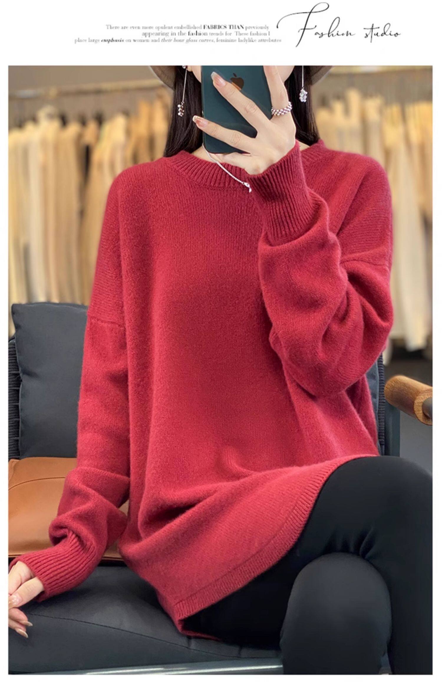 秋冬圓領中長款圓弧毛衣女寬松大碼慵懶風加厚休閒針織打底衫上衣