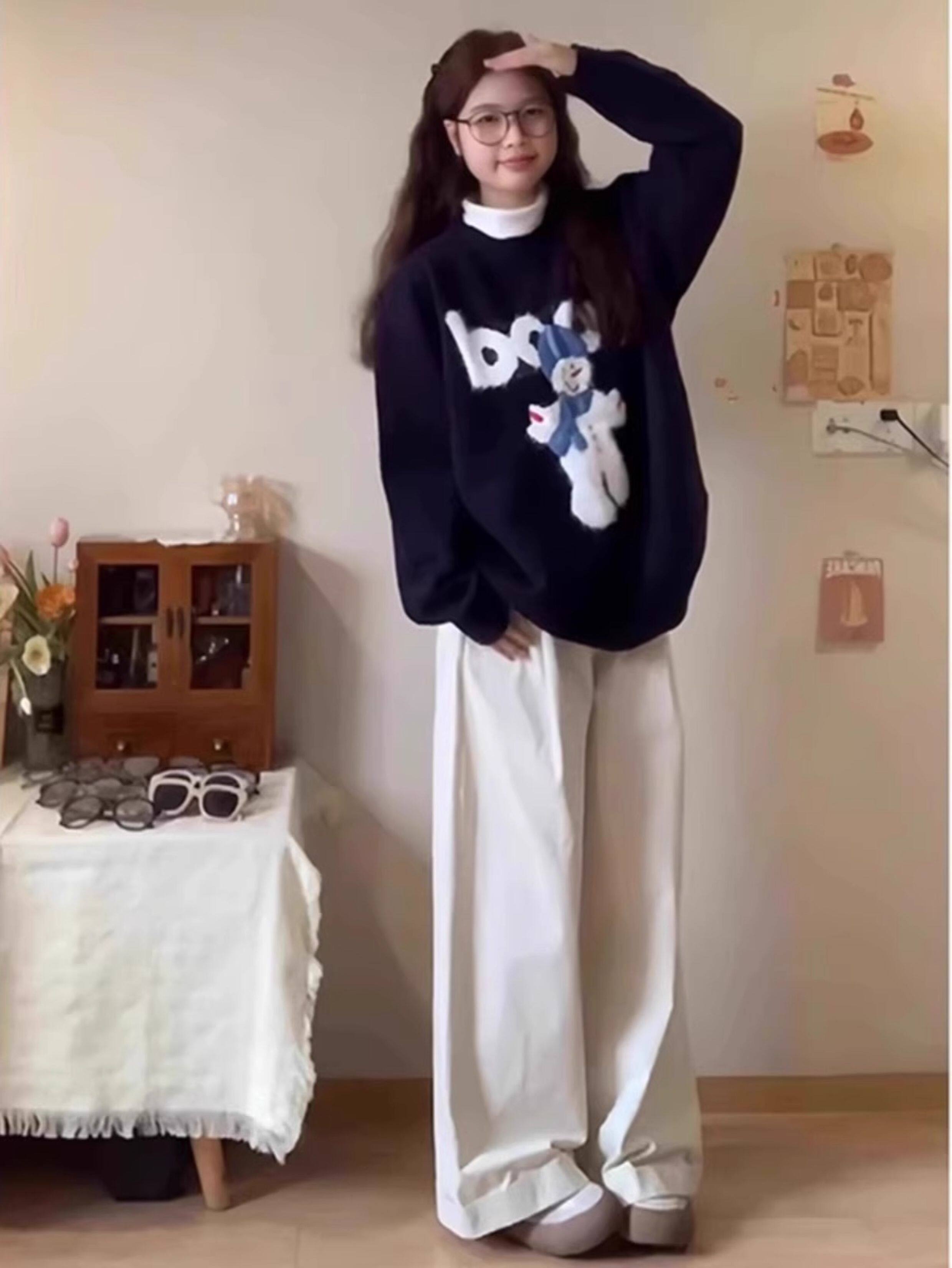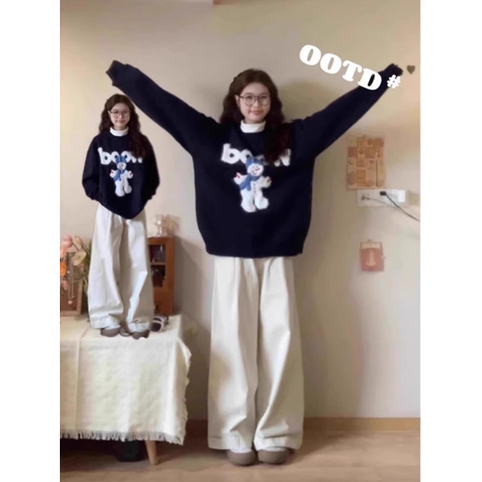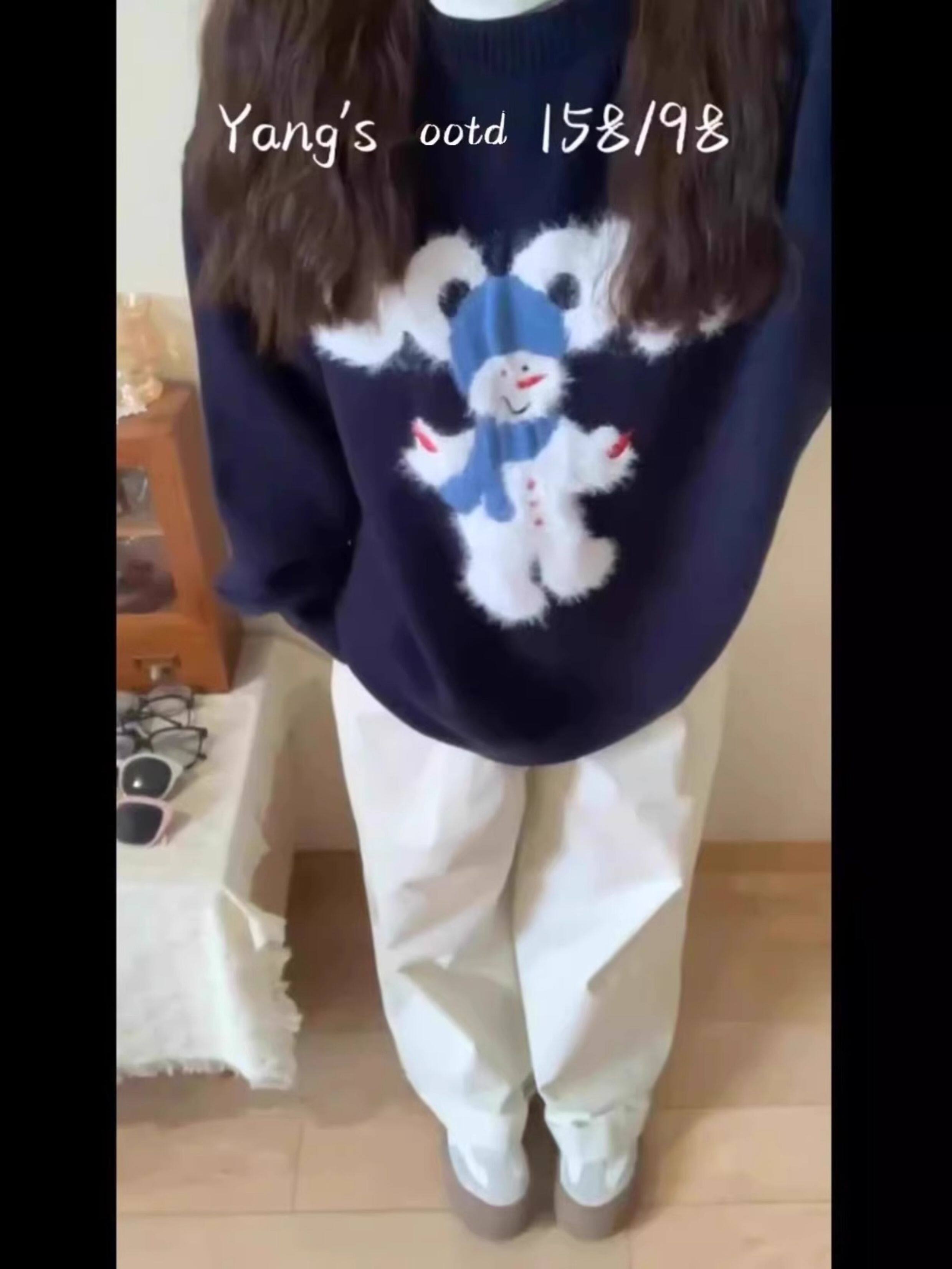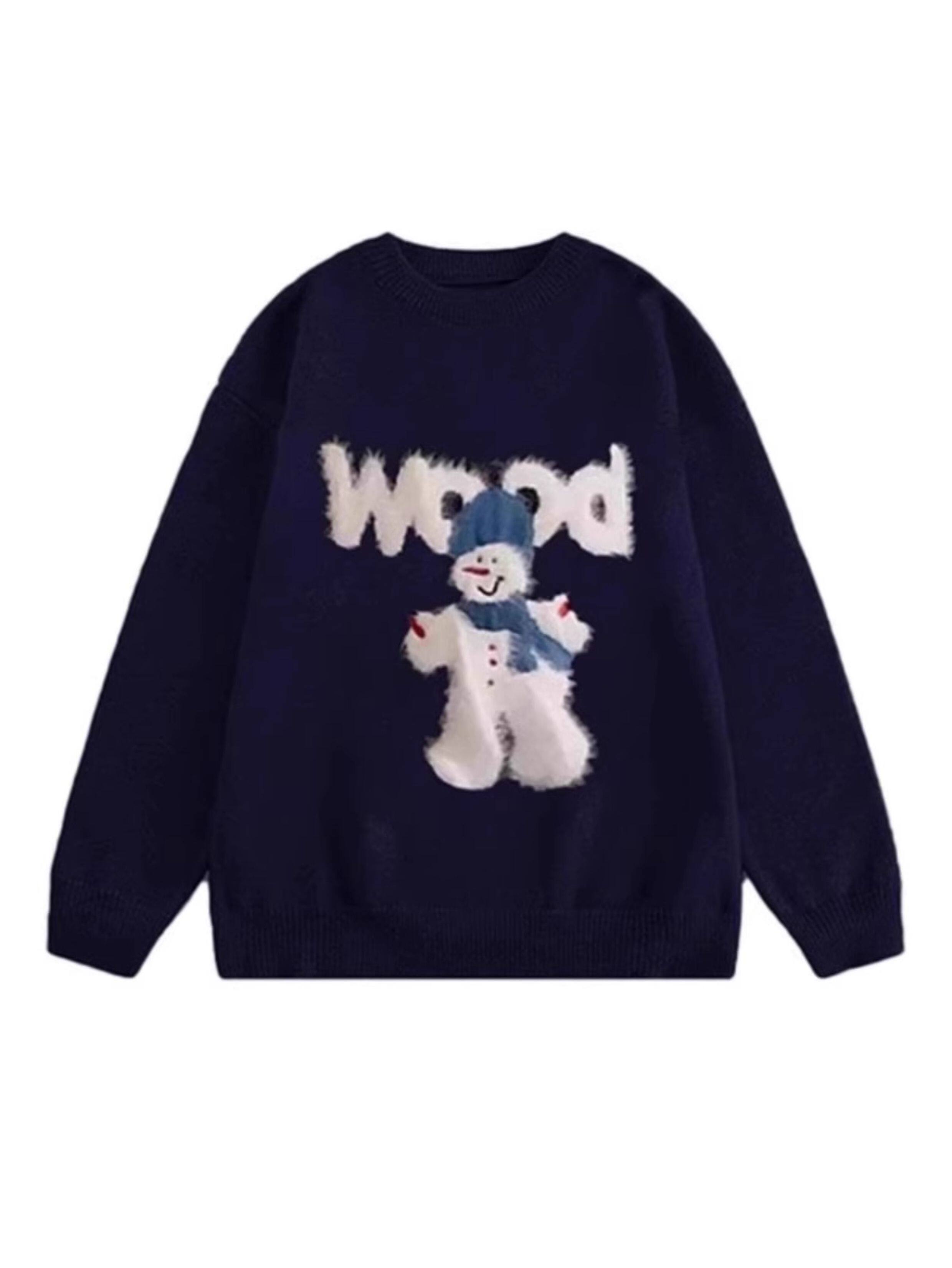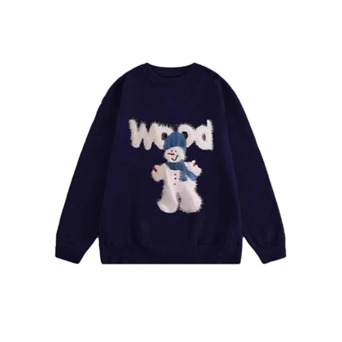 秋冬氛圍感穿搭卡通雪人毛衣女寬松加厚設計感慵懶風軟糯針織上衣