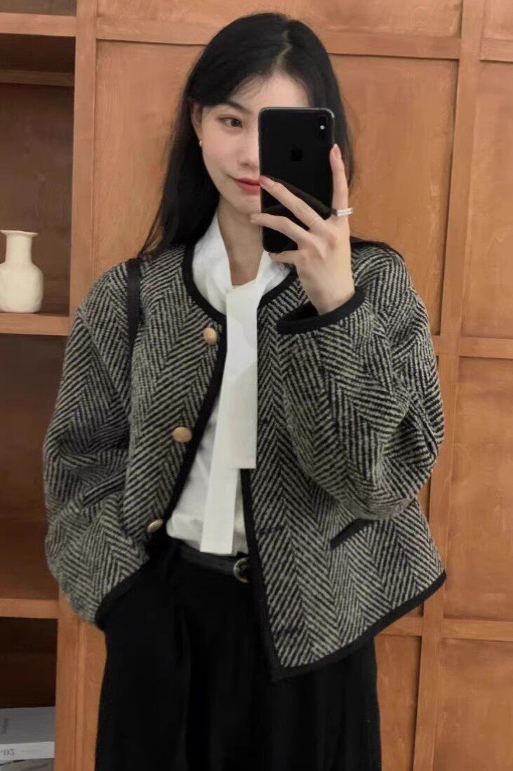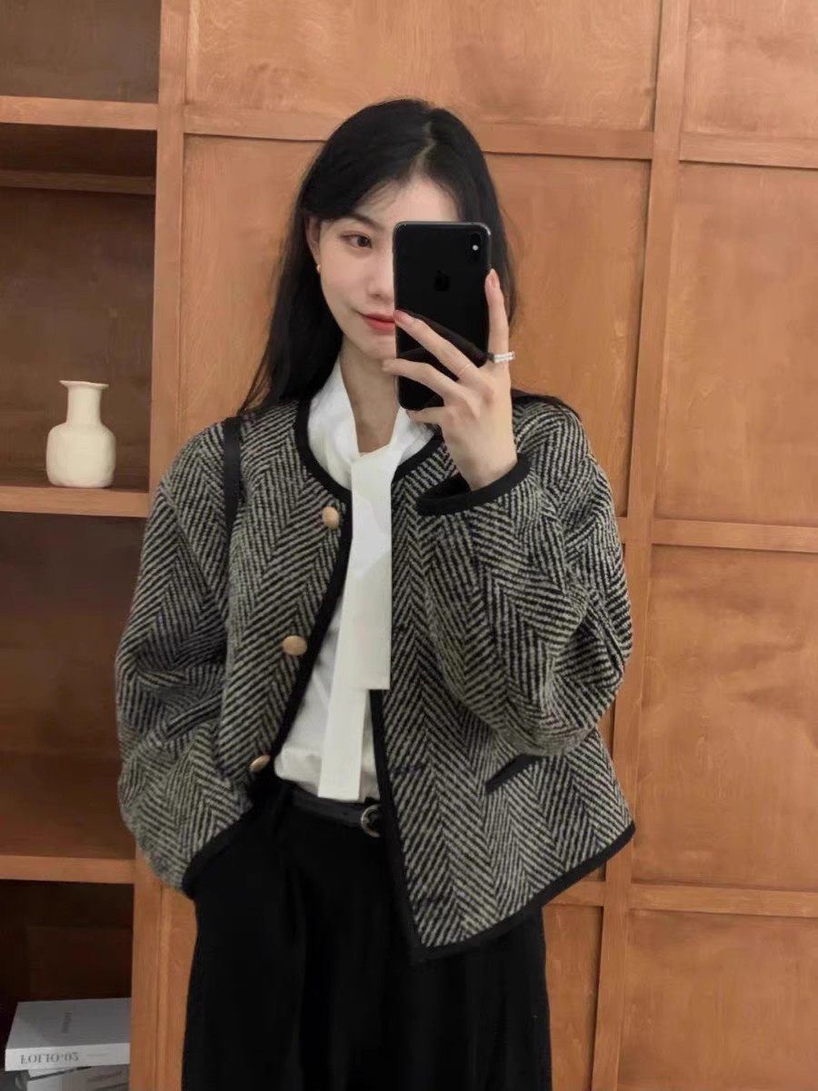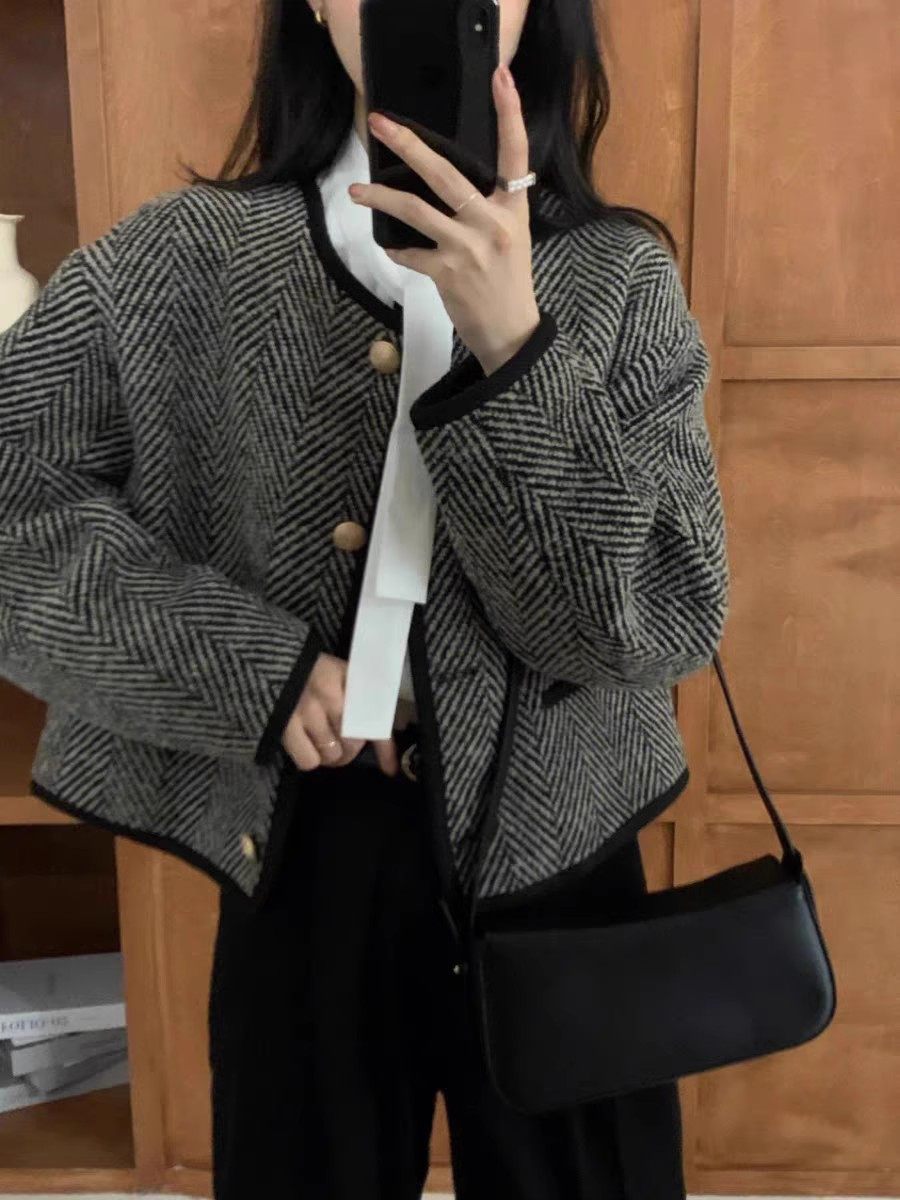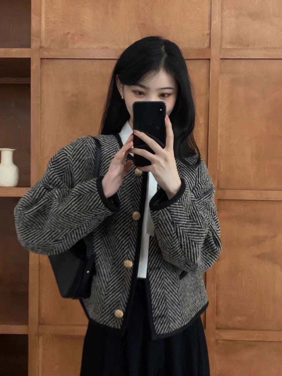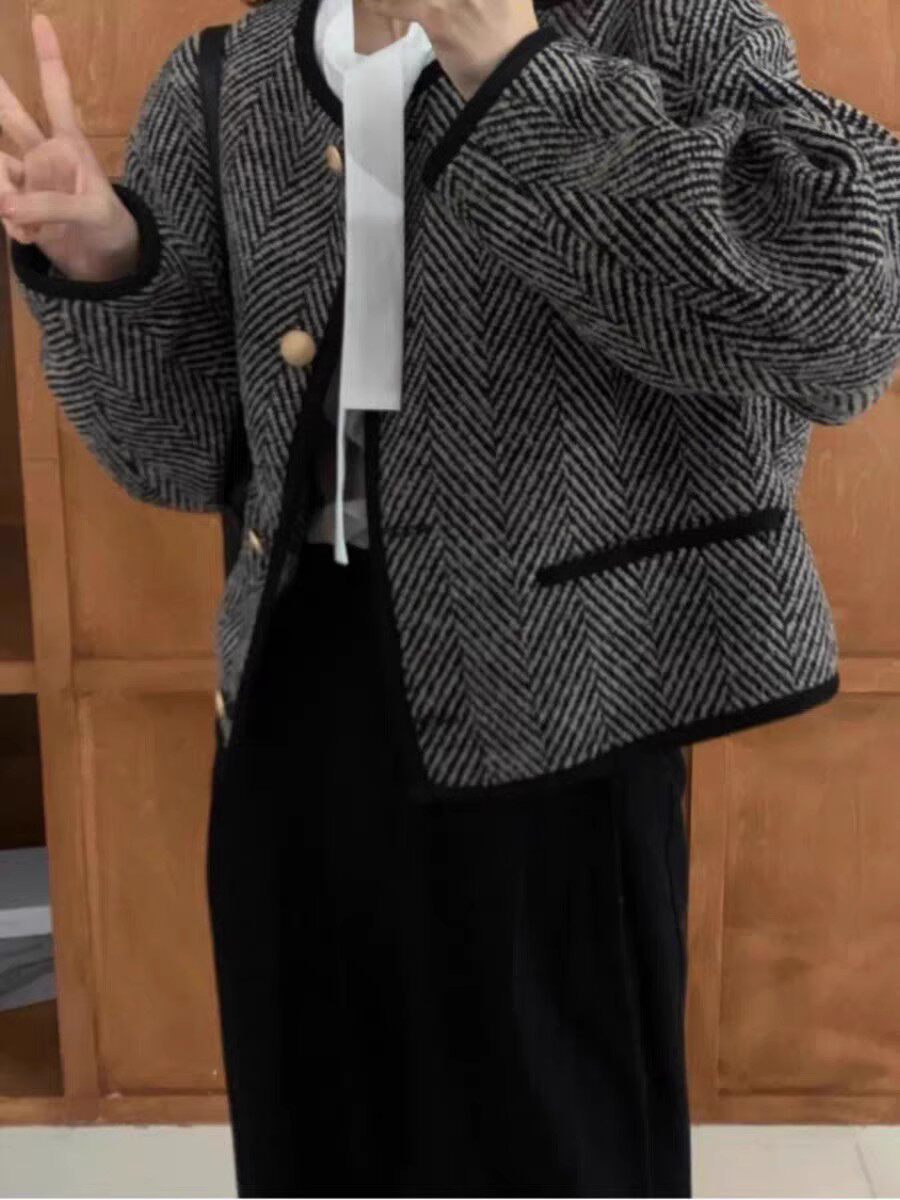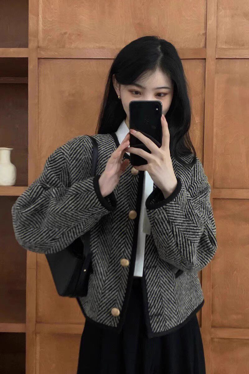 仿水貂絨小香風復古秋冬新款高級感女士針織開衫上衣毛衣加厚外套