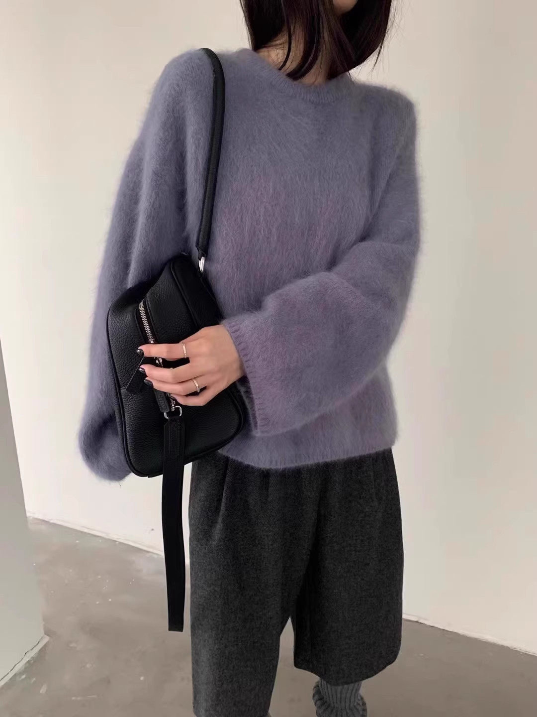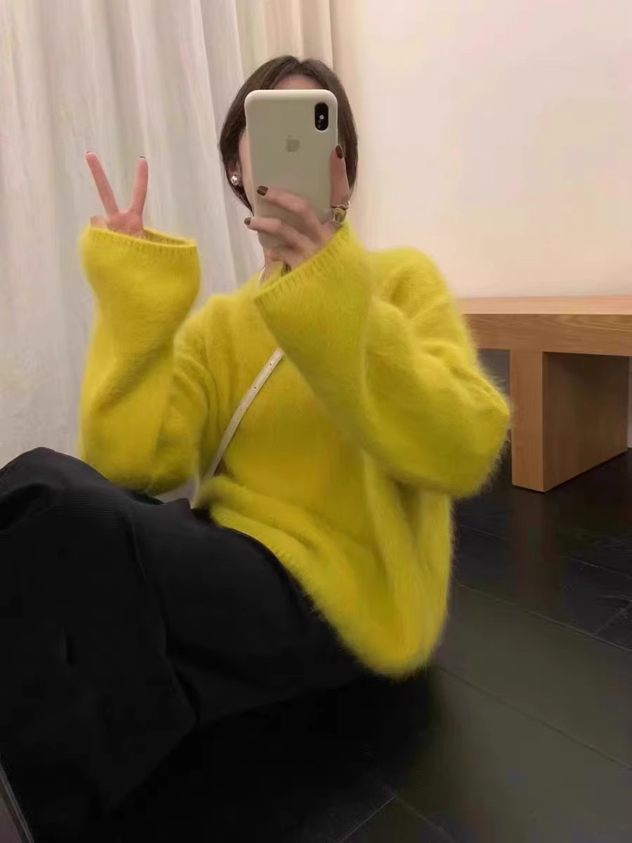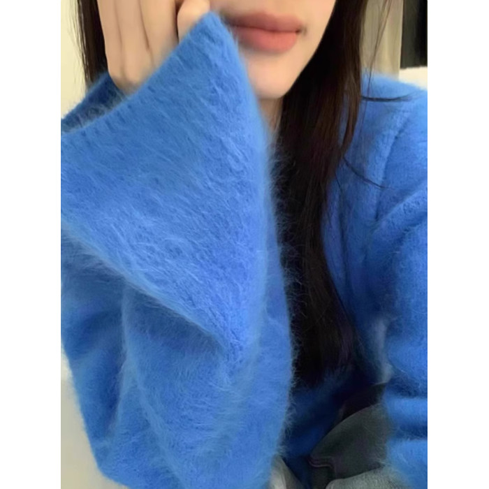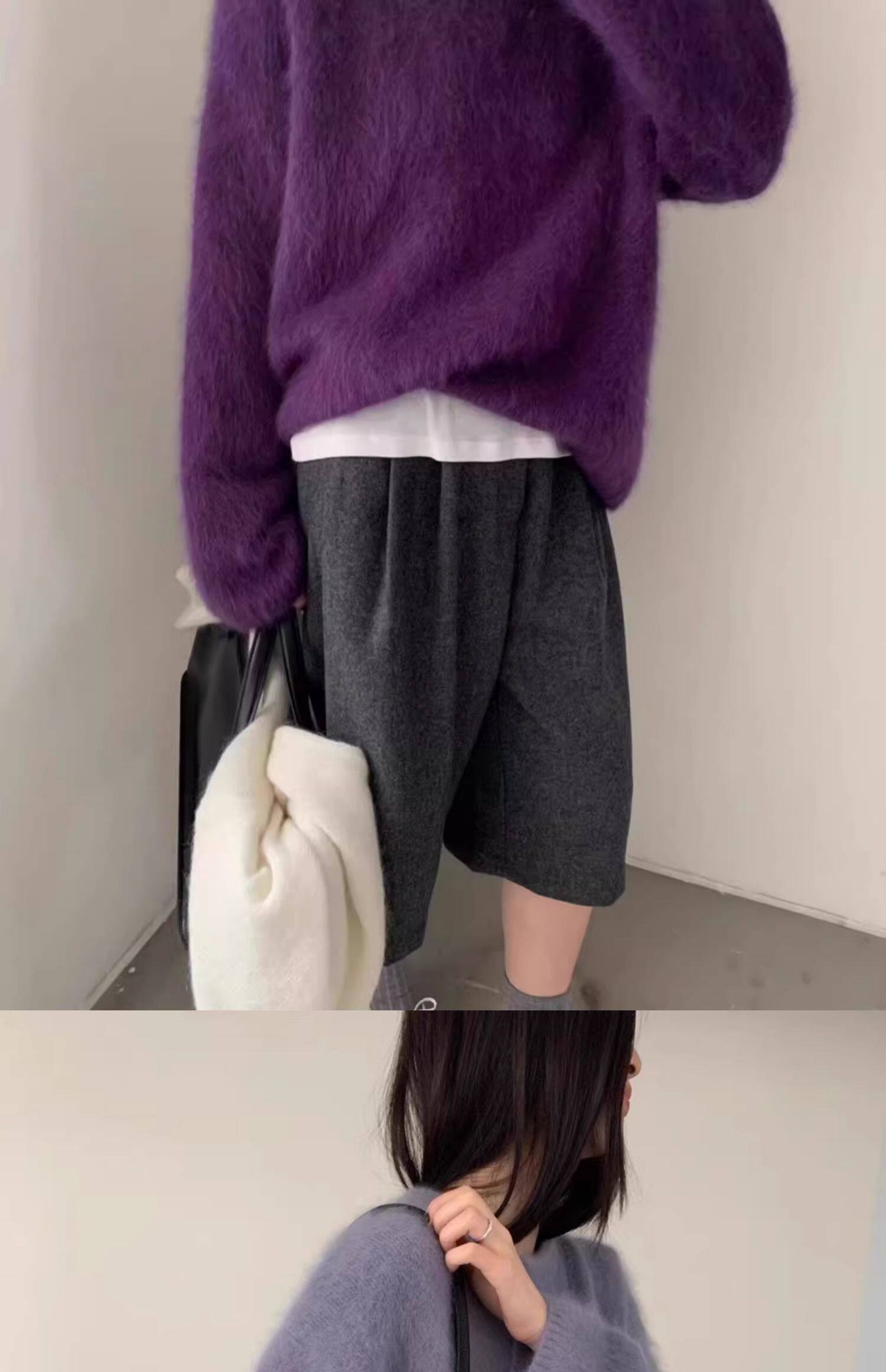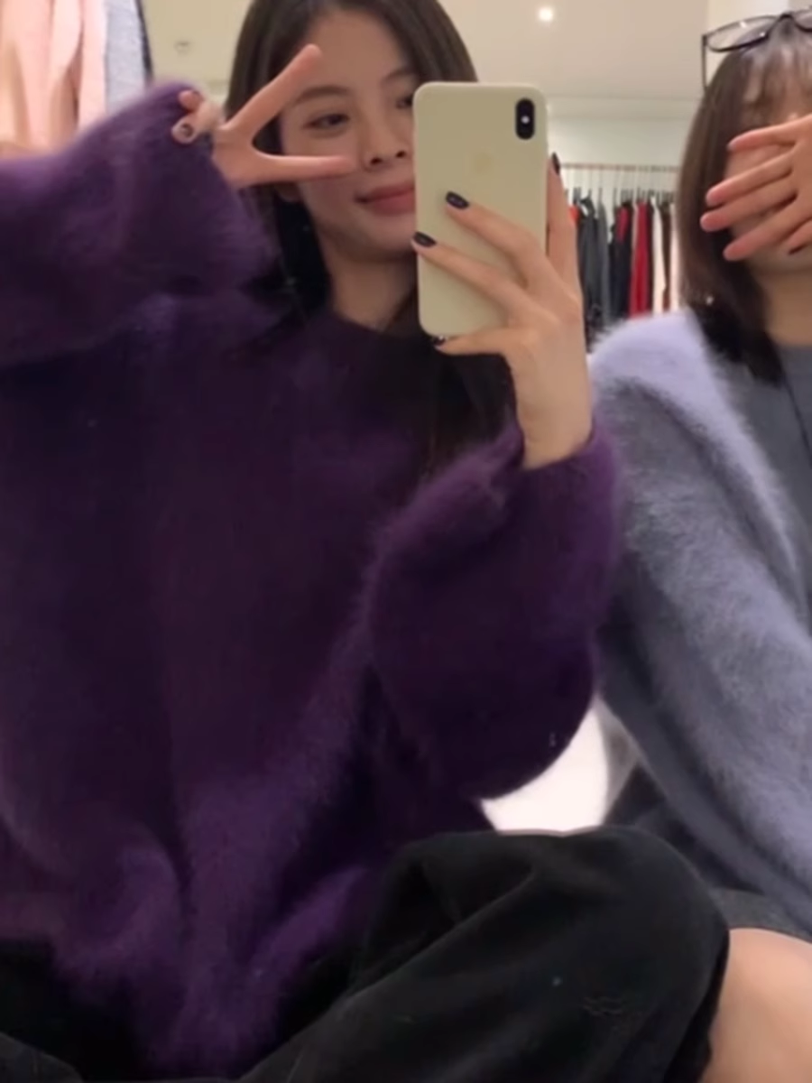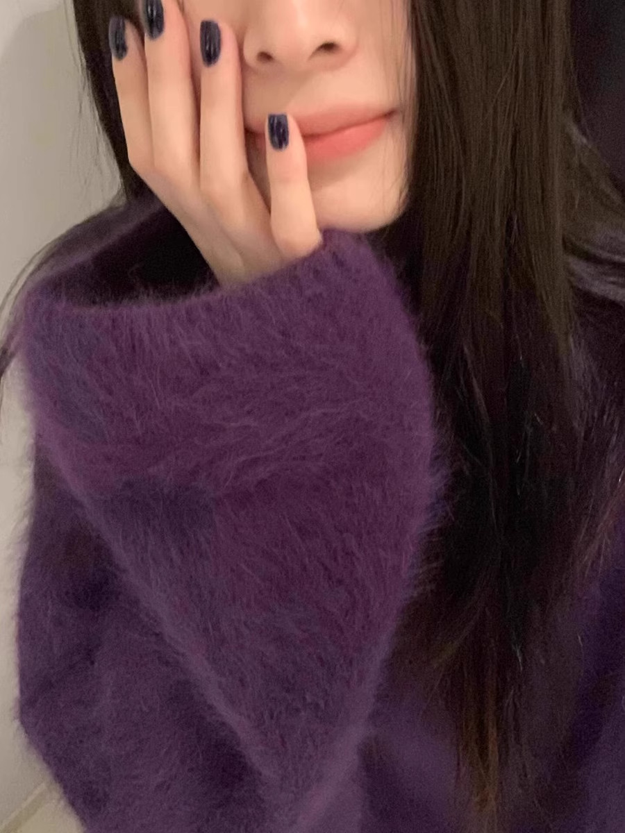 軟糯奶fufu紫色仿水貂絨毛衣女秋冬慵懶高級感套頭針織衫寬松上衣