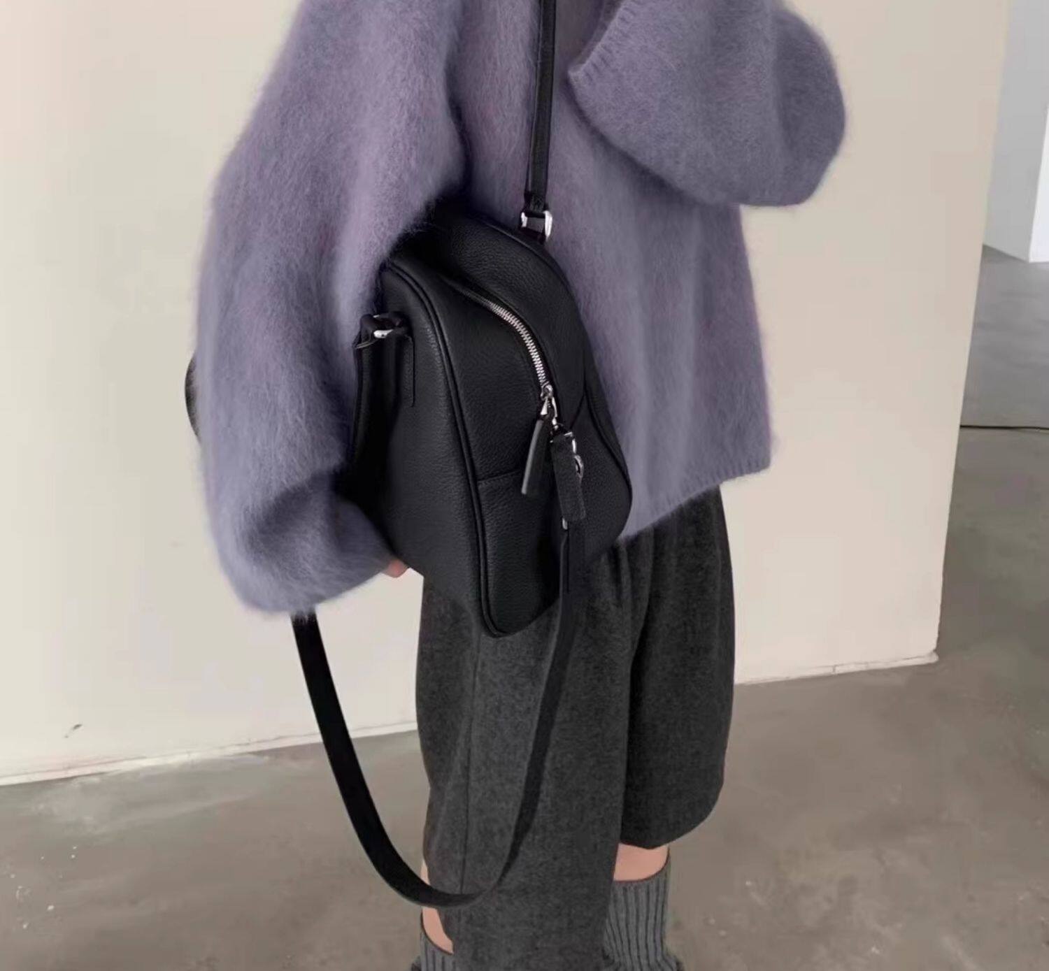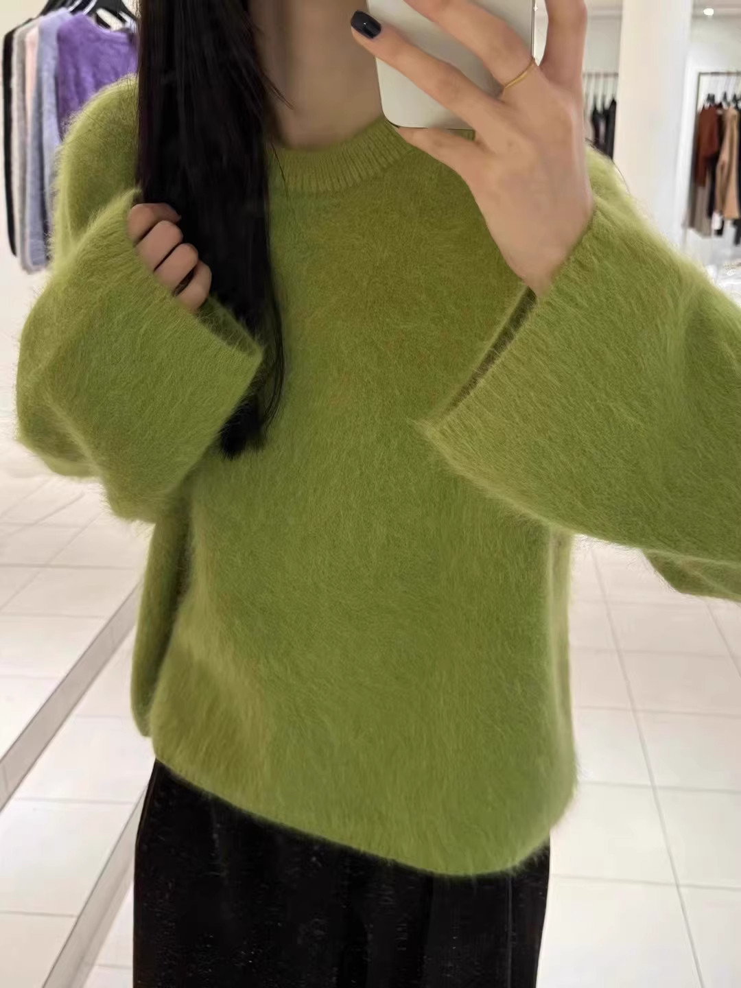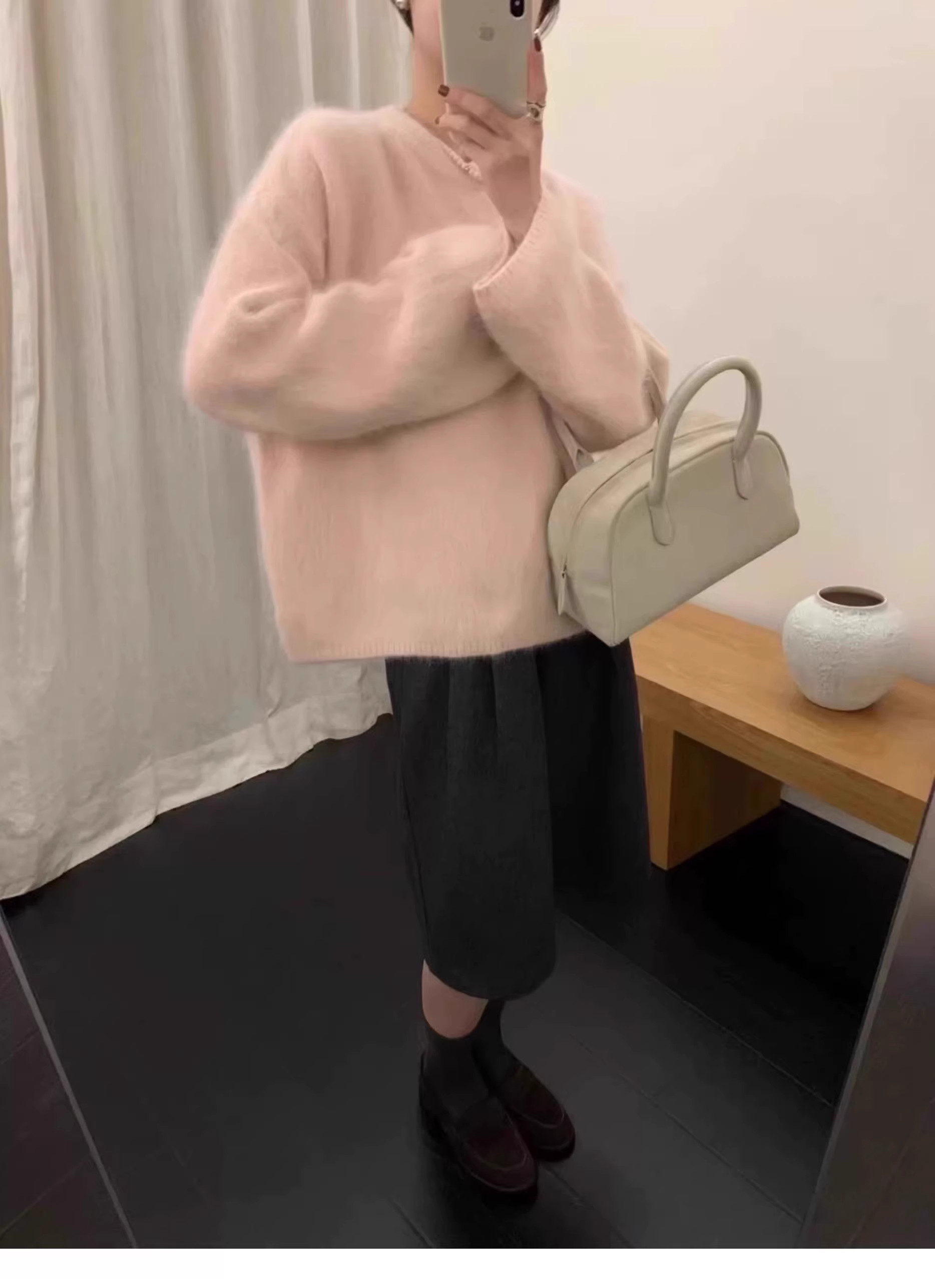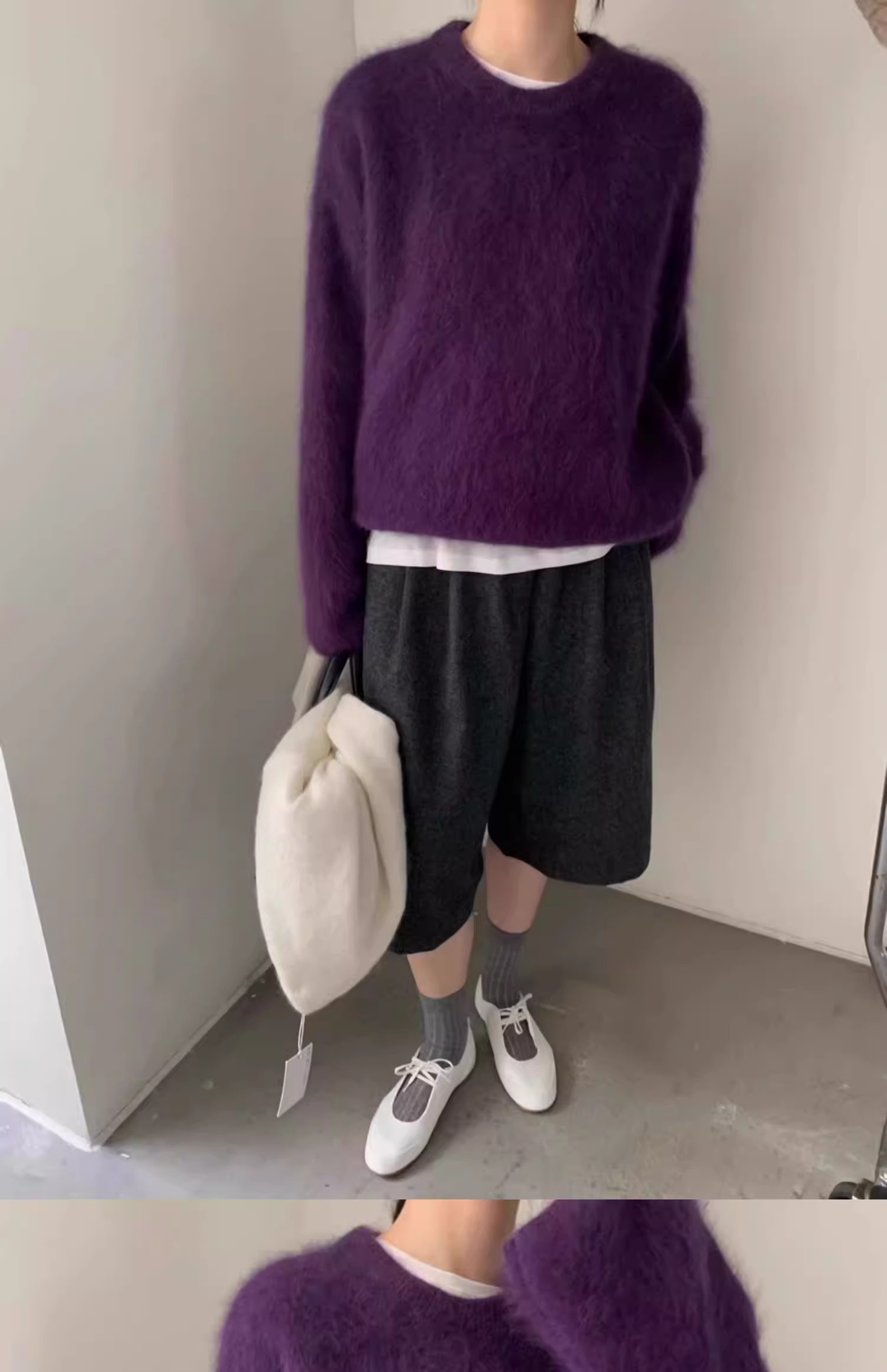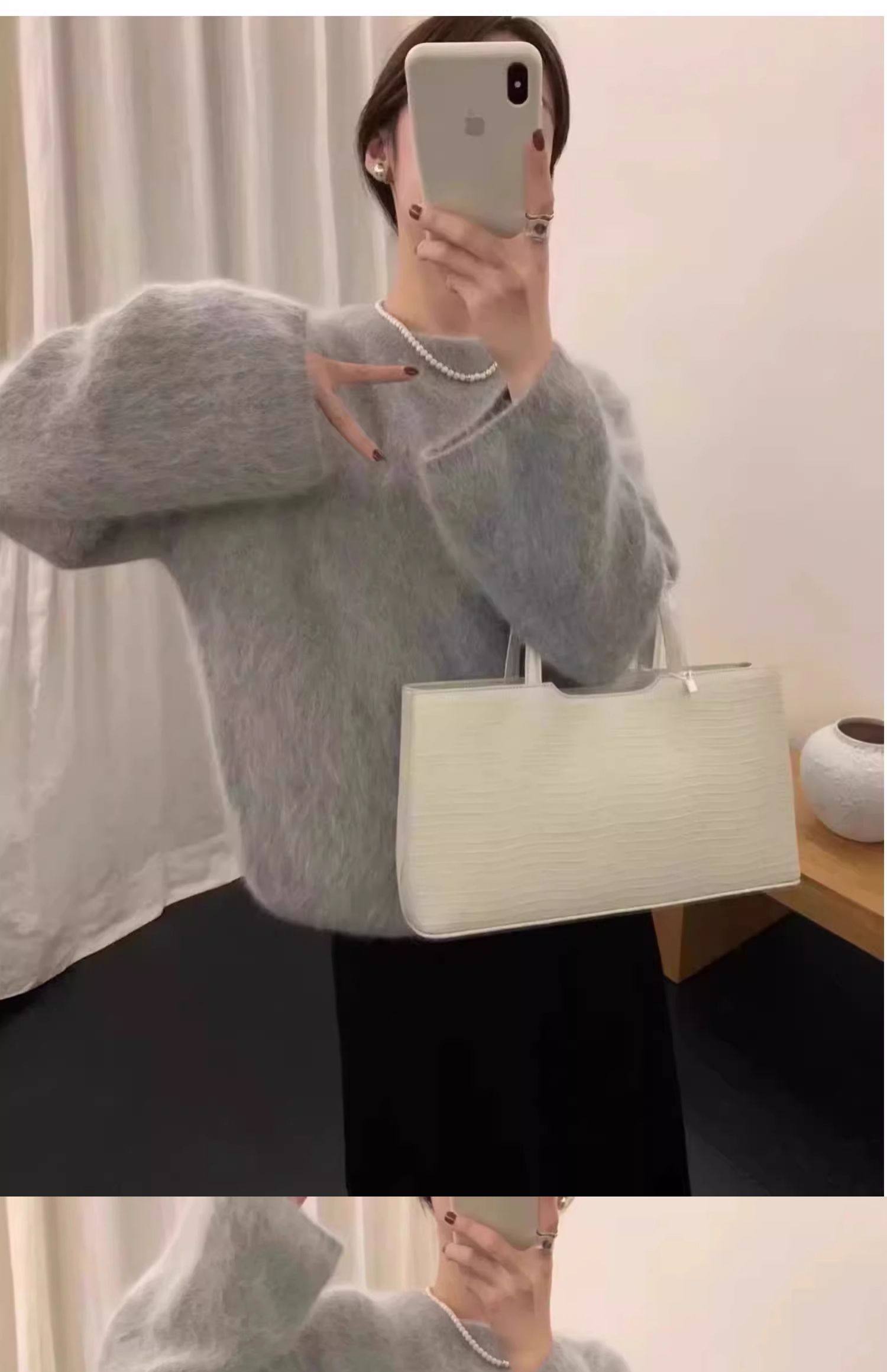軟糯奶fufu紫色仿水貂絨毛衣女秋冬慵懶高級感套頭針織衫寬松上衣
