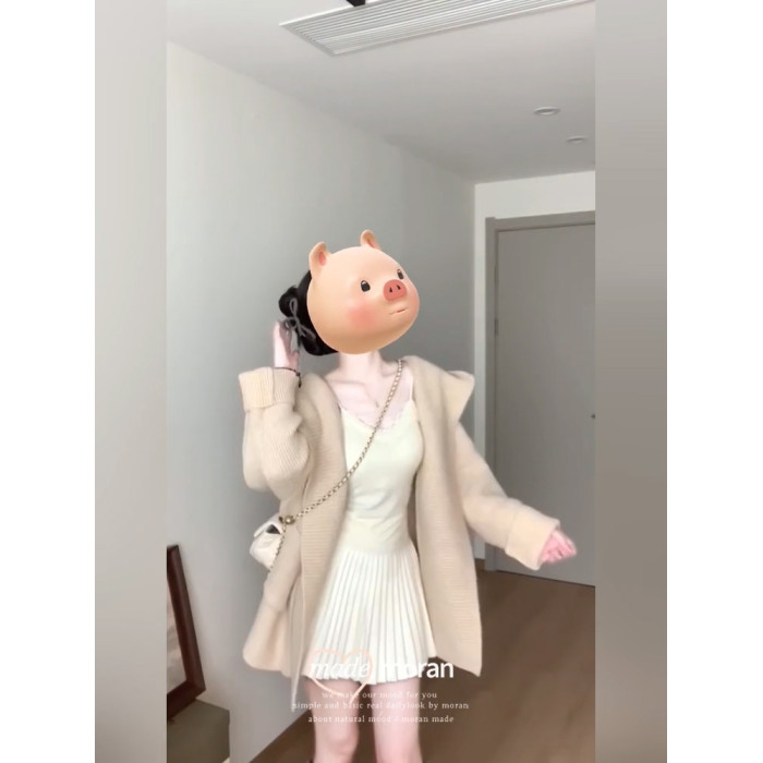 韓系復古慵懶風寬松連帽針織開衫保暖溫柔風氣質毛衣厚外套上衣女