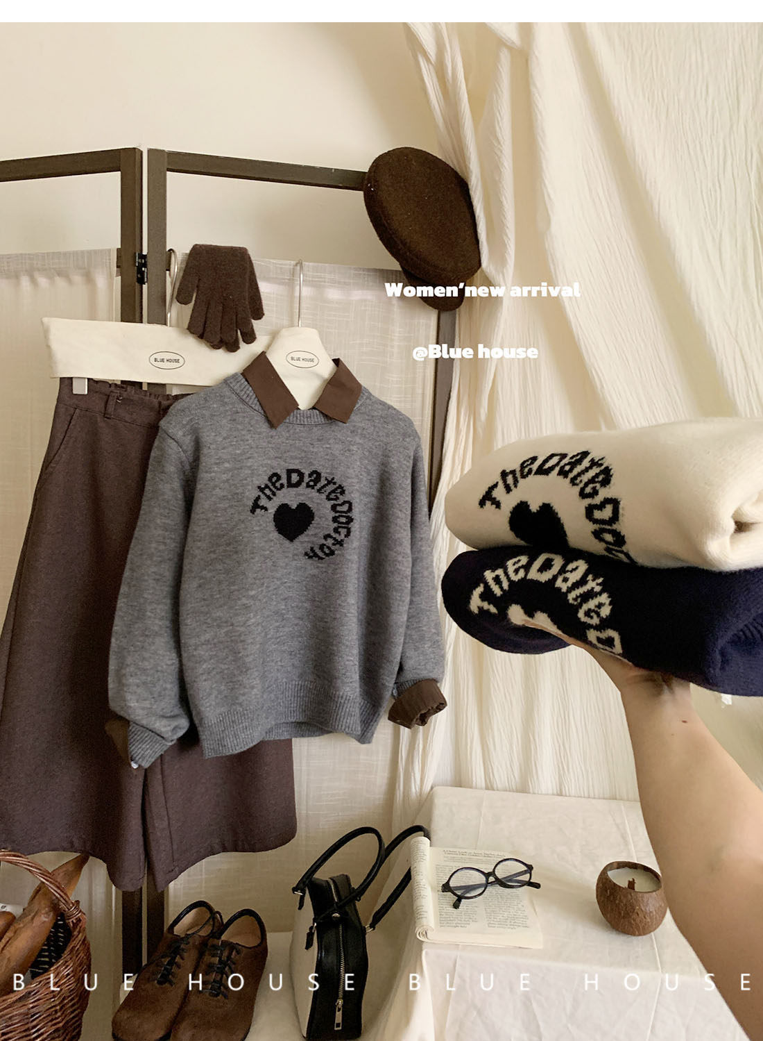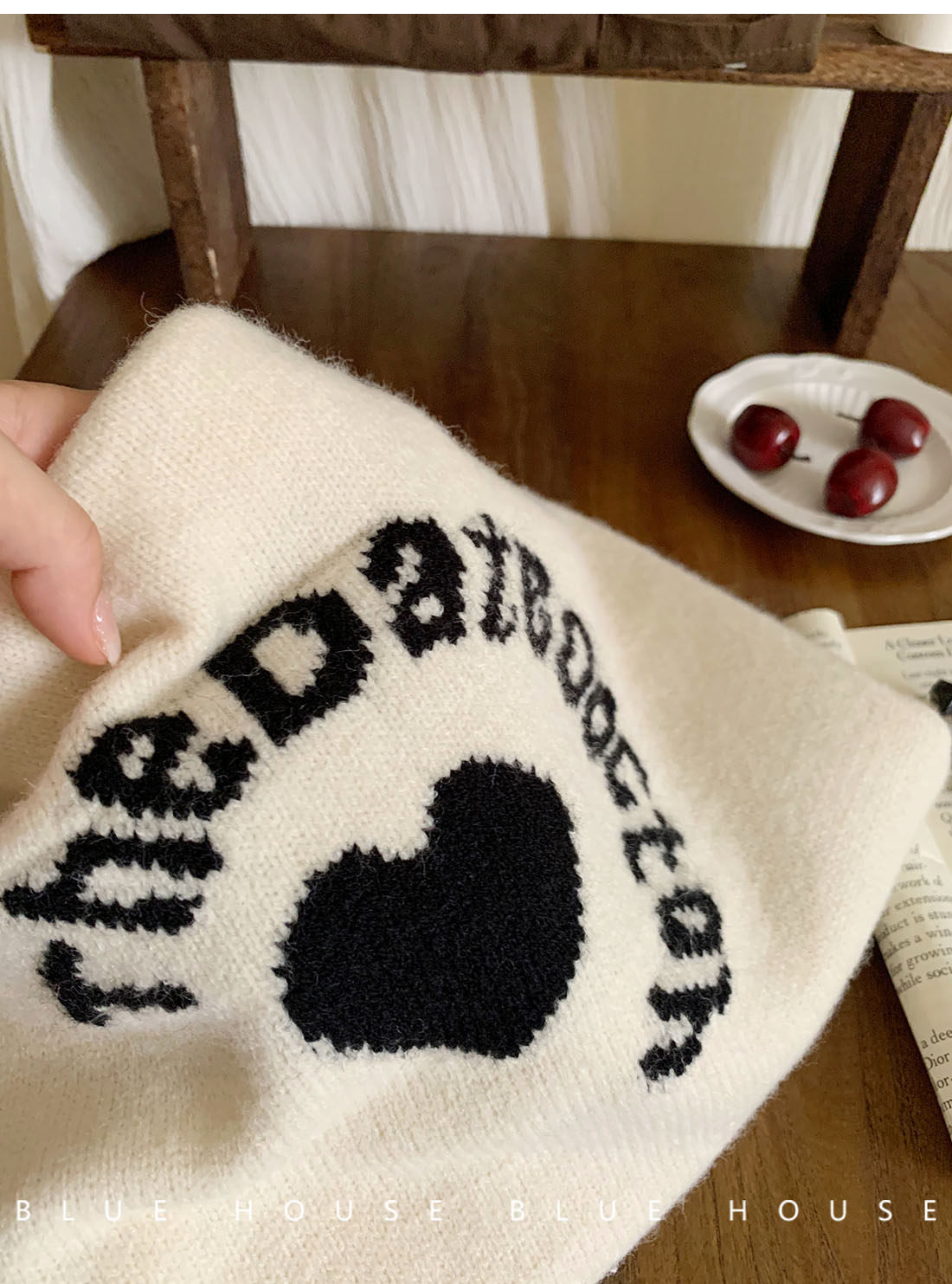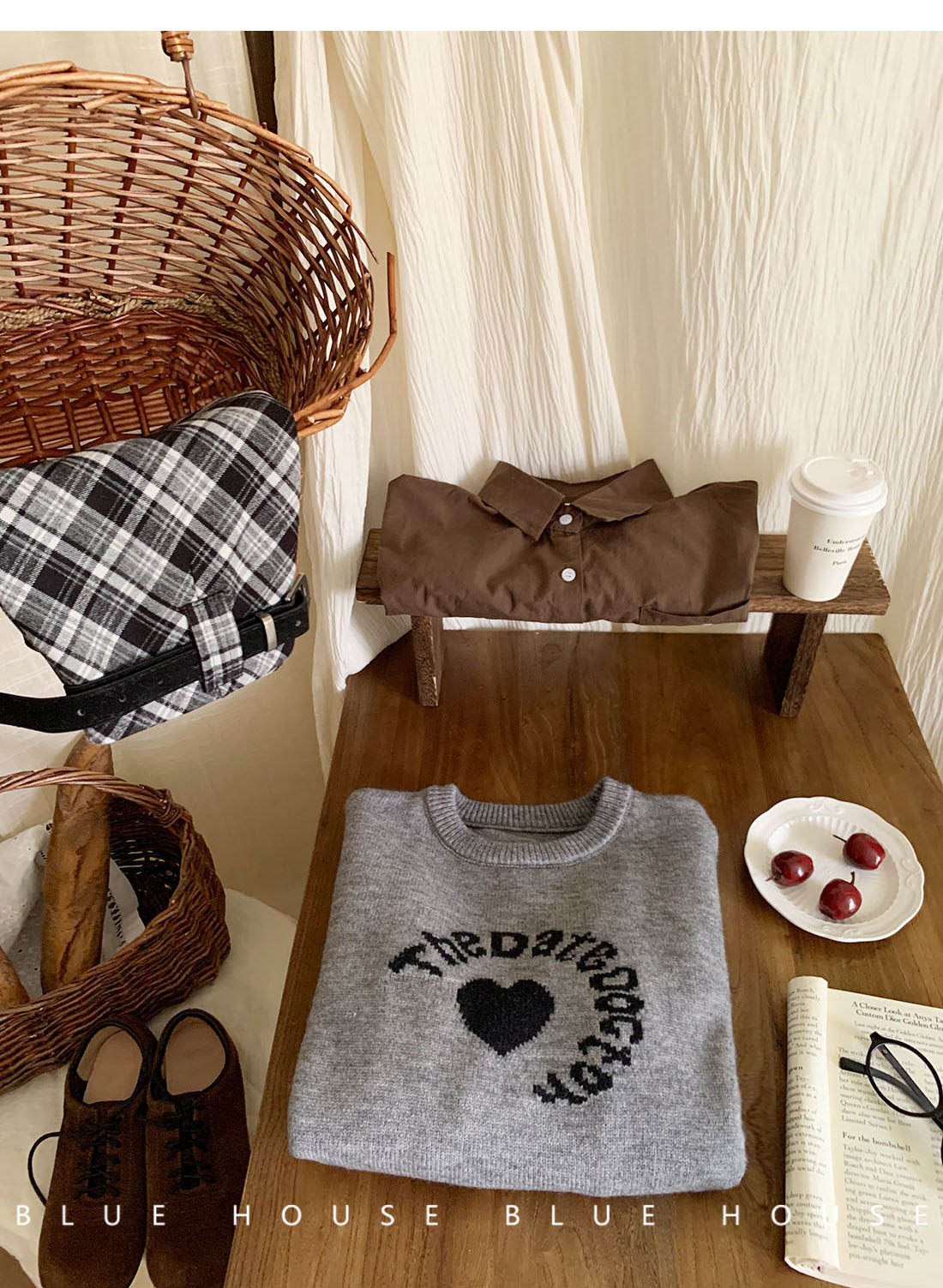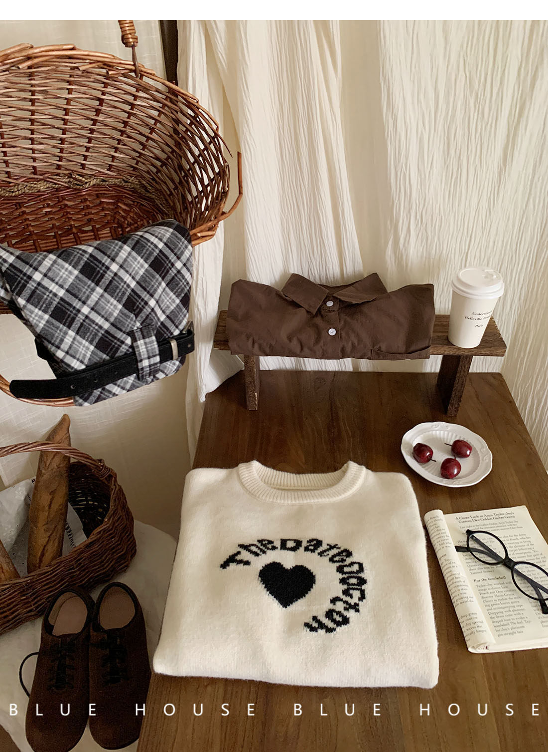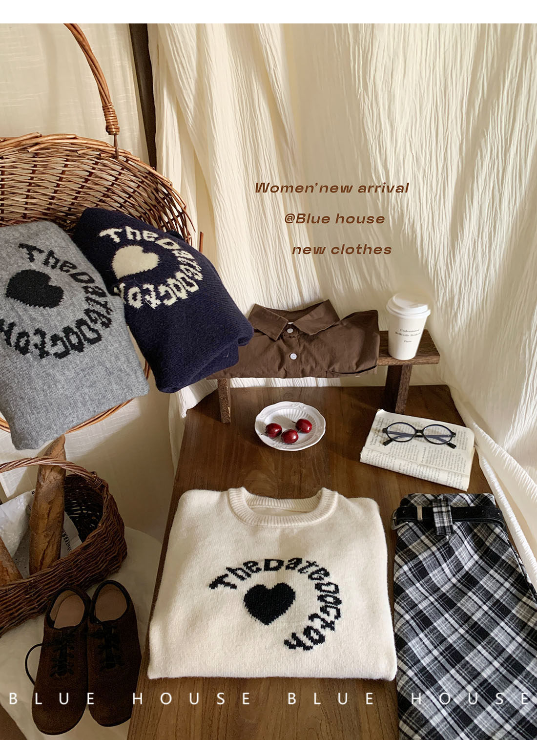 韓系簡約愛心字母提花針織上衣女秋冬季復古寬松外穿內搭套頭毛衣
